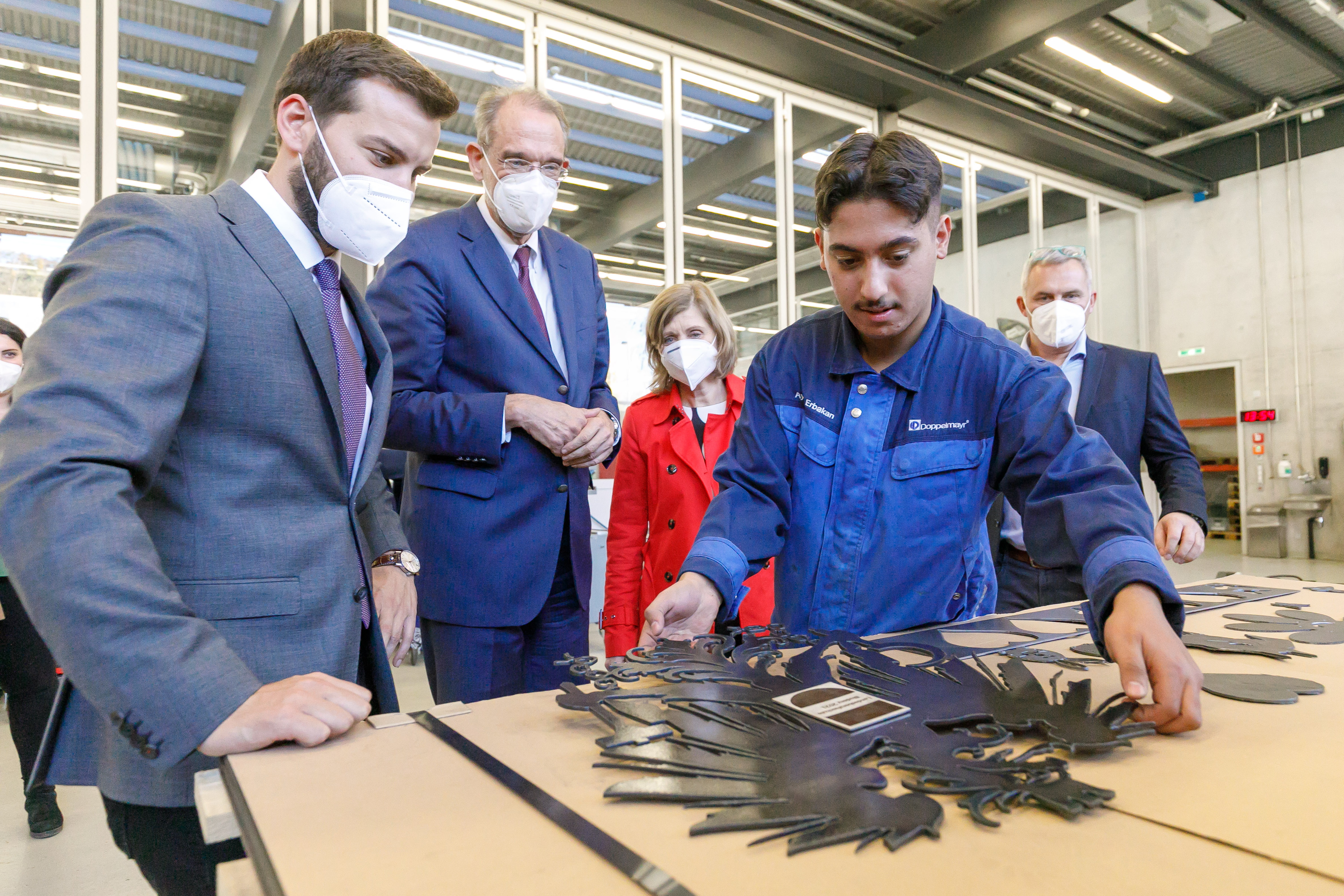 Bludenz (VLK) – Die Lehrlingsausbildung hat in Vorarlberg enormen Stellenwert, da gut ausgebildete Fachkräfte maßgeblich über den Erfolg des Wirtschaftsstandortes mitentscheiden. Von der hohen Ausbildungsqualität an der Landesberufsschule Bludenz haben sich am Donnerstag (28. Oktober 2021) Bildungsminister Heinz Faßmann und Landesstatthalterin Barbara Schöbi-Fink als ressortverantwortliche Bildungsreferentin gemeinsam ein Bild gemacht.