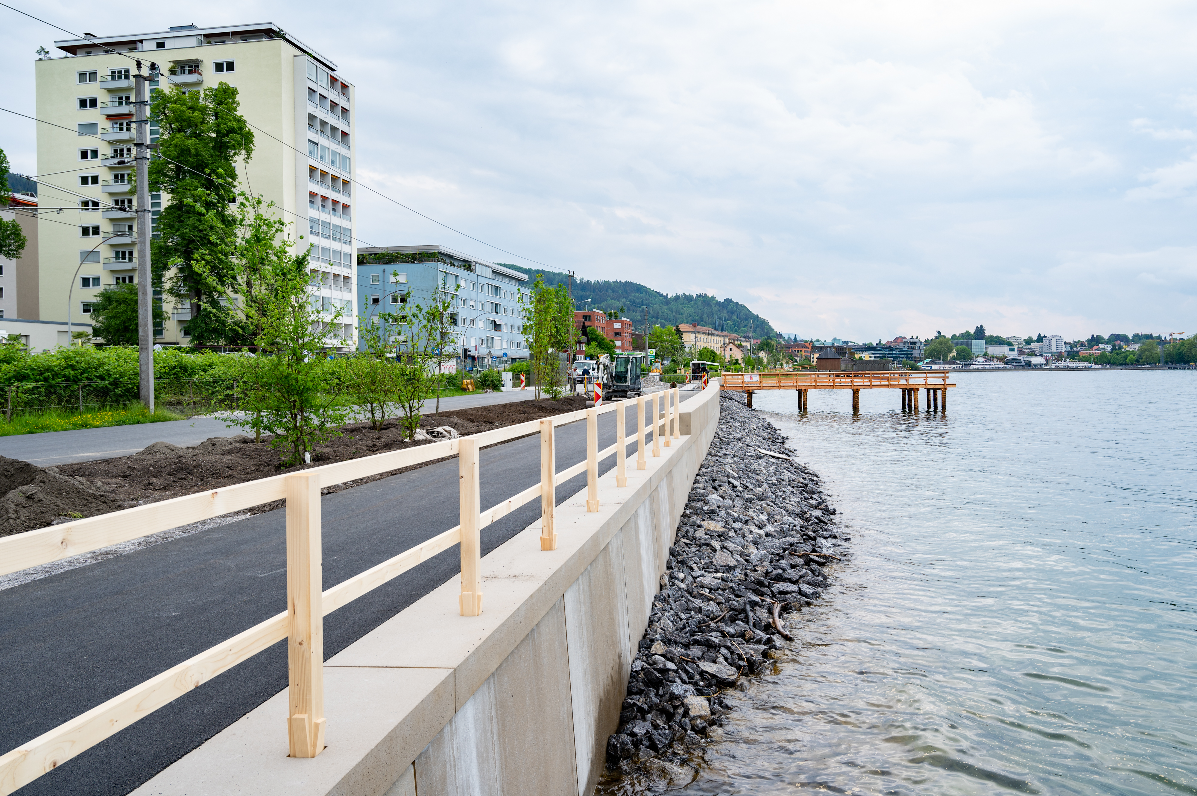 Dieses Wochenende (14./15. Mai) wird die Pipeline für die Bevölkerung geöffnet. „Rechtzeitig zur Eröffnung der Badesaison ist der Ausbau der Pipeline beendet und der Stadtstrand wird der Bevölkerung nun wieder zugänglich gemacht. Die Sanierung und Neugestaltung des Seeufers entspannt durch die Trennung von RadfahrerInnen und FußgängerInnen zum einen die Verkehrssituation und schafft zum anderen weitere Erholungsflächen für die BesucherInnen“, erklärte Bürgermeister Michael Ritsch. Im Herbst wird dann der finale Teilabschnitt bis zum Strandbad Lochau in Angriff genommen.