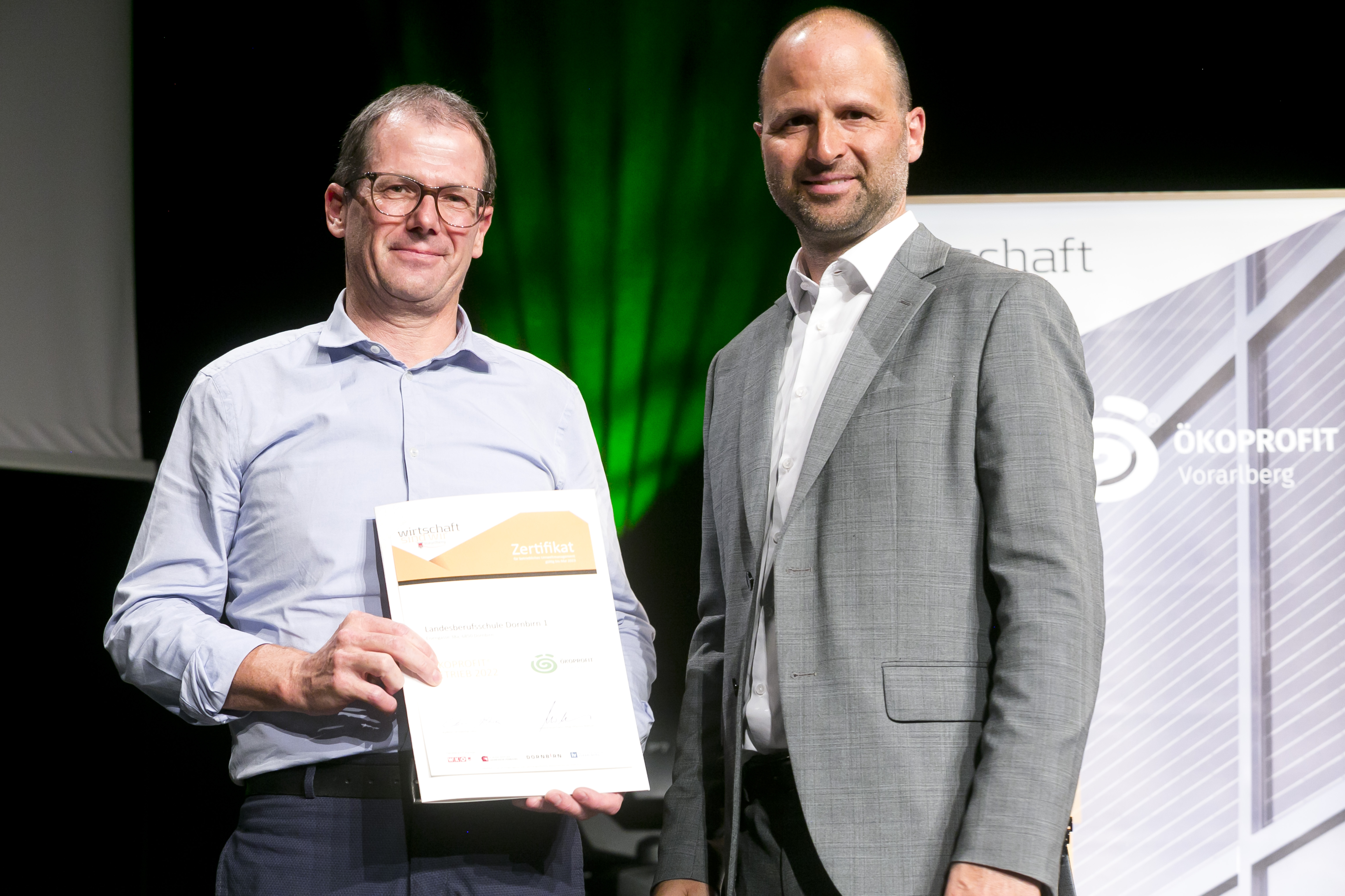 Feldkirch (VLK) – Mit heuer 198 zertifizierten Betrieben und über 25.000 Mitarbeitern ist Ökoprofit das am weitesten verbreitetste Umweltmanagement-System in Vorarlberg. „Erfreulicherweise konnten wir auch heuer wieder eine Steigerung bei der Anzahl der Ökoprofit-zertifizierten Betriebe sehen. Dies ist ein historischer Höchststand und zeigt den hohen Stellenwert des Themas.“, freut sich Wirtschaftslandesrat Marco Tittler. Die Zertifikate wurden gestern (Mittwoch) im Montforthaus in Feldkirch überreicht.