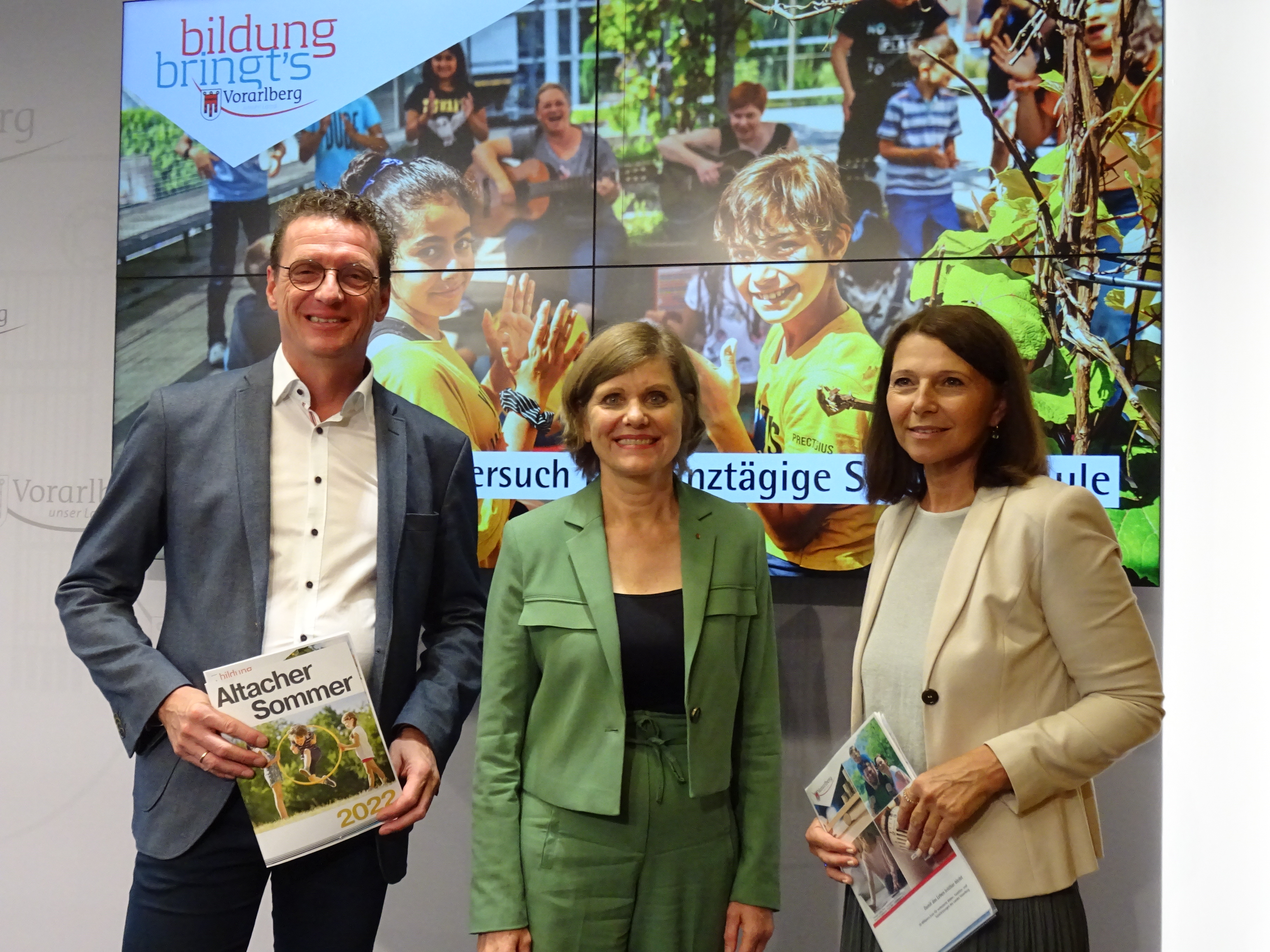 Bregenz (VLK) – Die Sommerschule als kostenfreies Angebot für Schülerinnen und Schüler, die Aufholbedarf in den Unterrichtsgegenständen Deutsch, Mathematik und Sachunterricht haben, wird auch heuer von 29. August bis 9. September angeboten. Die Vorarlberger Landesregierung möchte das derzeitige Modell erweitern und die Sommerschule in ganztägiger Form anbieten. „Wir wollen zum einen Kinder bestmöglich dabei unterstützen, Lernrückstände aufzuholen, und zum anderen Eltern entlasten, die auch in den Schulferien ihrer beruflichen Tätigkeit nachgehen wollen bzw. müssen“, sagte Landesstatthalterin Barbara Schöbi-Fink im Pressefoyer am Dienstag, 28. Juni. Zu diesem Zweck wird in Vorarlberg die ganztägige Sommerschule heuer in einem Pilotprojekt in den Gemeinden Altach und Höchst erprobt, um Grundlagen für einen möglichst flächendeckenden Ausbau in den kommenden Jahren zu sammeln und entsprechendes Know-how aufzubauen. Mit weiteren drei Interessenten – den Städten Dornbirn und Bludenz sowie dem Stand Montafon – laufen ebenfalls Gespräche, um abzuklären, wie auch dort die Ausrollung der ganztägigen Sommerschule gestaltet werden kann.