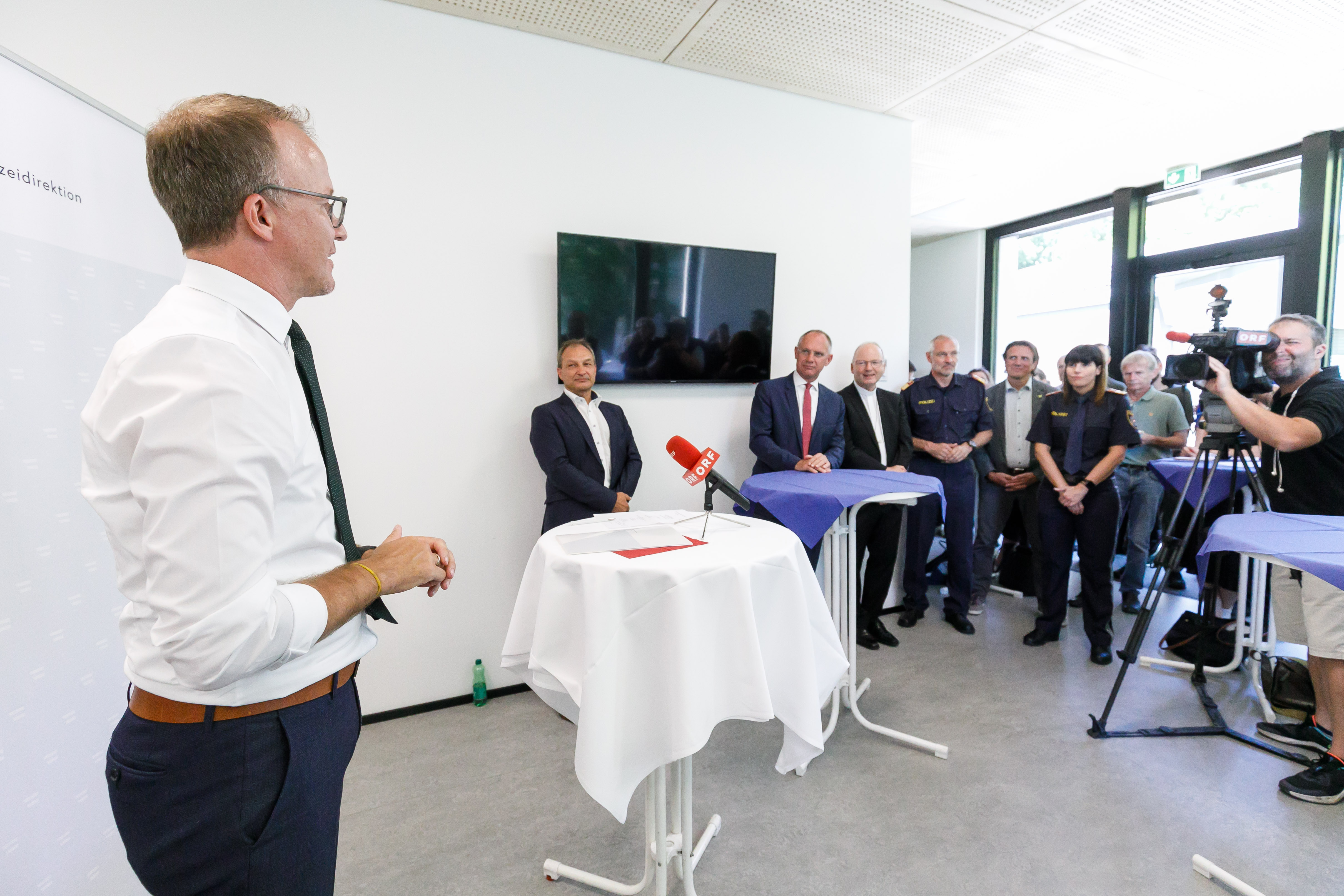 Innenminister Karner hob im Rahmen seines Besuchs die ausgezeichnete Arbeit hervor, die von den Vorarlberger Sicherheitsbehörden und der Polizei geleistet wird. Landesrat Gantner unterstrich, dass eine erfolgreiche Sicherheitspolitik nur durch eine enge Kooperation zwischen Bund, Ländern und Gemeinden gestaltet werden könne. „Der weitere Ausbau und die Verbesserung dieser bereits bestehenden funktionierenden und qualitativ hochwertigen Sicherheitsinfrastruktur ist ein Schwerpunkt der Landespolitik“, erläuterte Gantner bei der offiziellen Eröffnung.