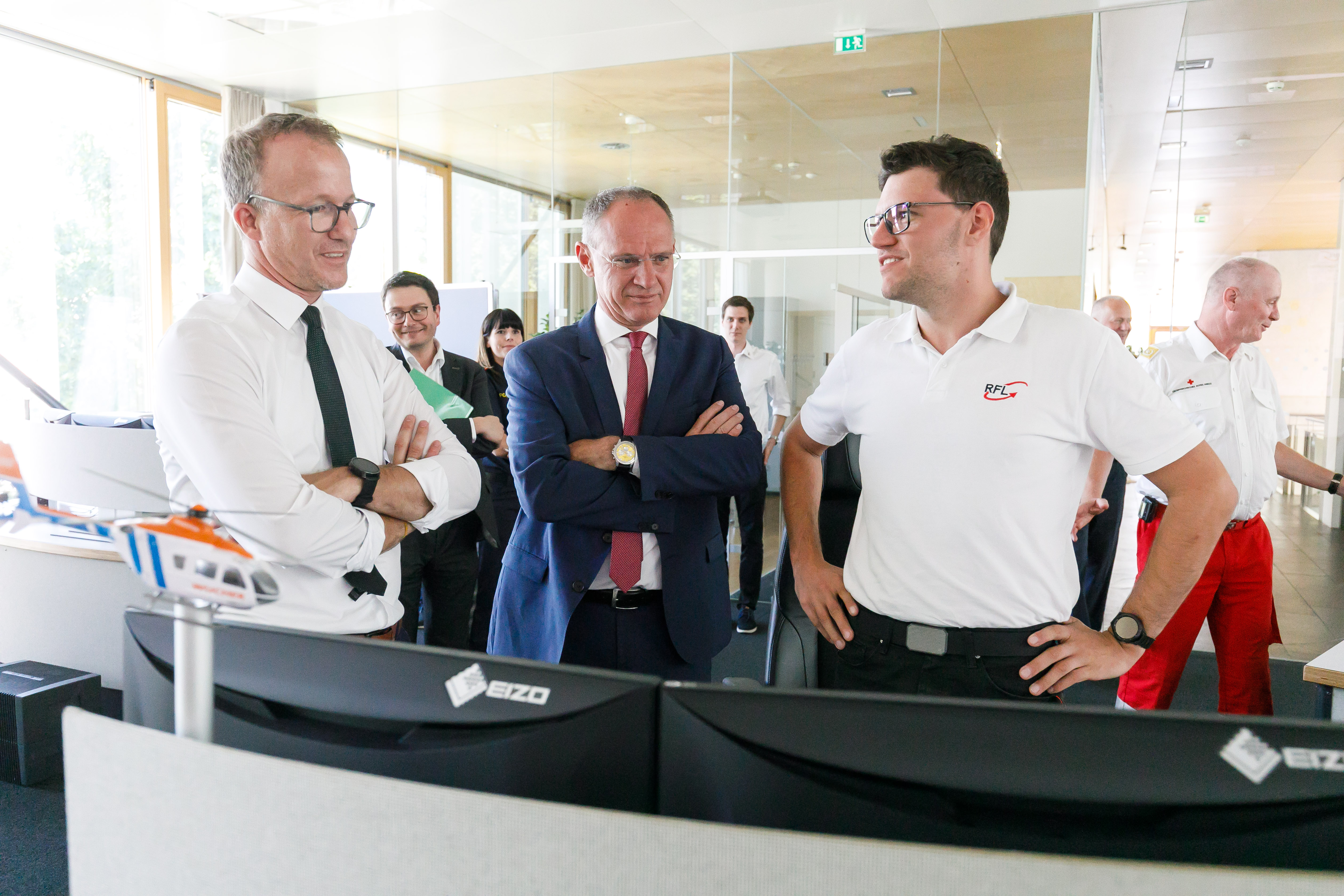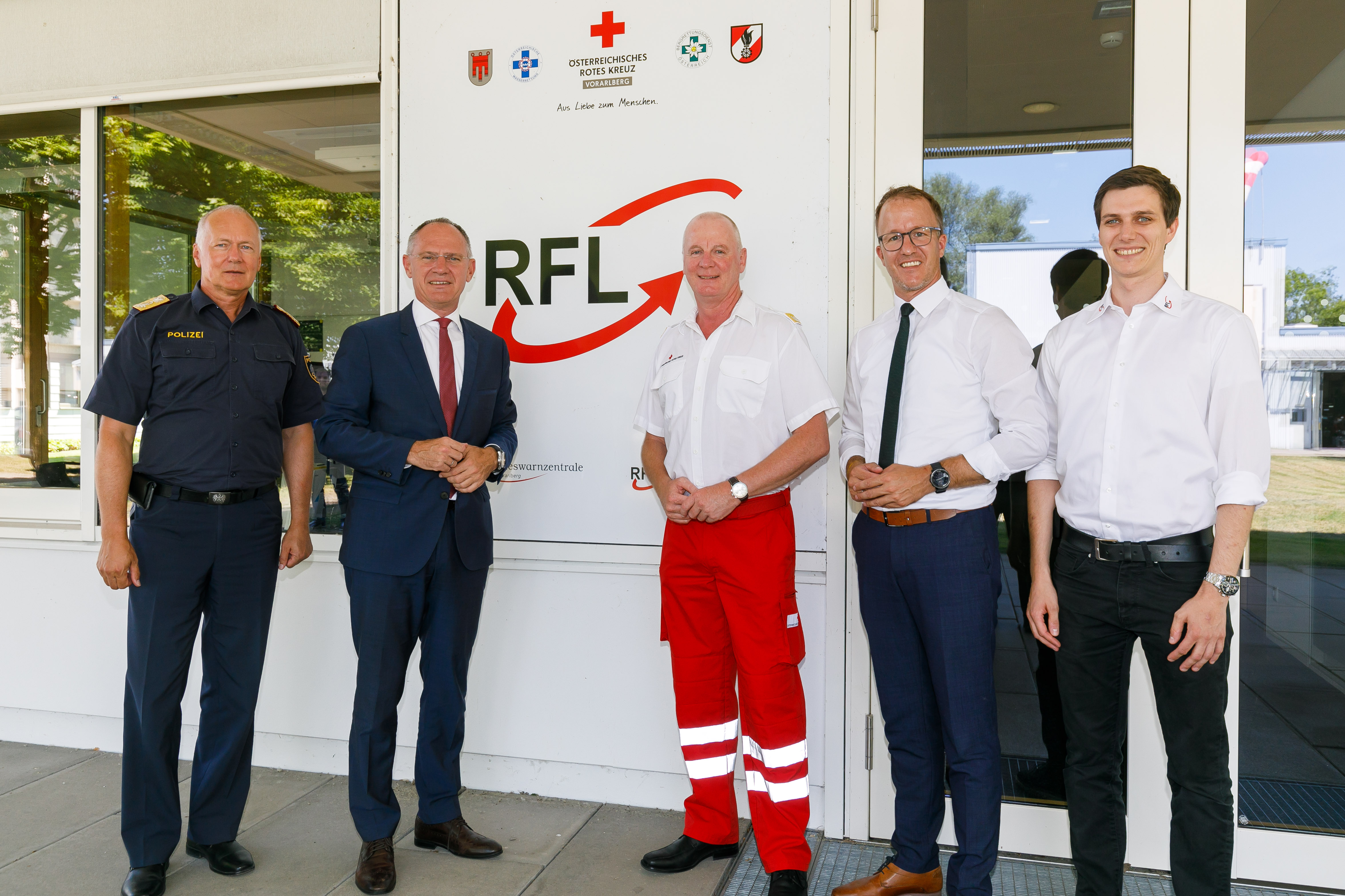 Im Anschluss an die Eröffnung statteten Karner und Gantner noch der Rettungs- und Feuerwehrleitstelle (RFL) des Landes Vorarlberg in Feldkirch einen Besuch ab. Insbesondere bei Naturereignissen - bei Hochwasser oder nach Lawinenabgängen - sowie nach Unfällen ist die prompte Alarmierung und Koordinierung der Einsatzkräfte für die Menschen am Unglücksort überlebensnotwendig. “Im Ernstfall verschmelzen Einsatzkräfte und Leitstelle zu einer Einheit, in der reibungslose Kommunikation und effiziente Entscheidungsabläufe zu jeder Zeit gegeben sind“, erklärte Gantner.