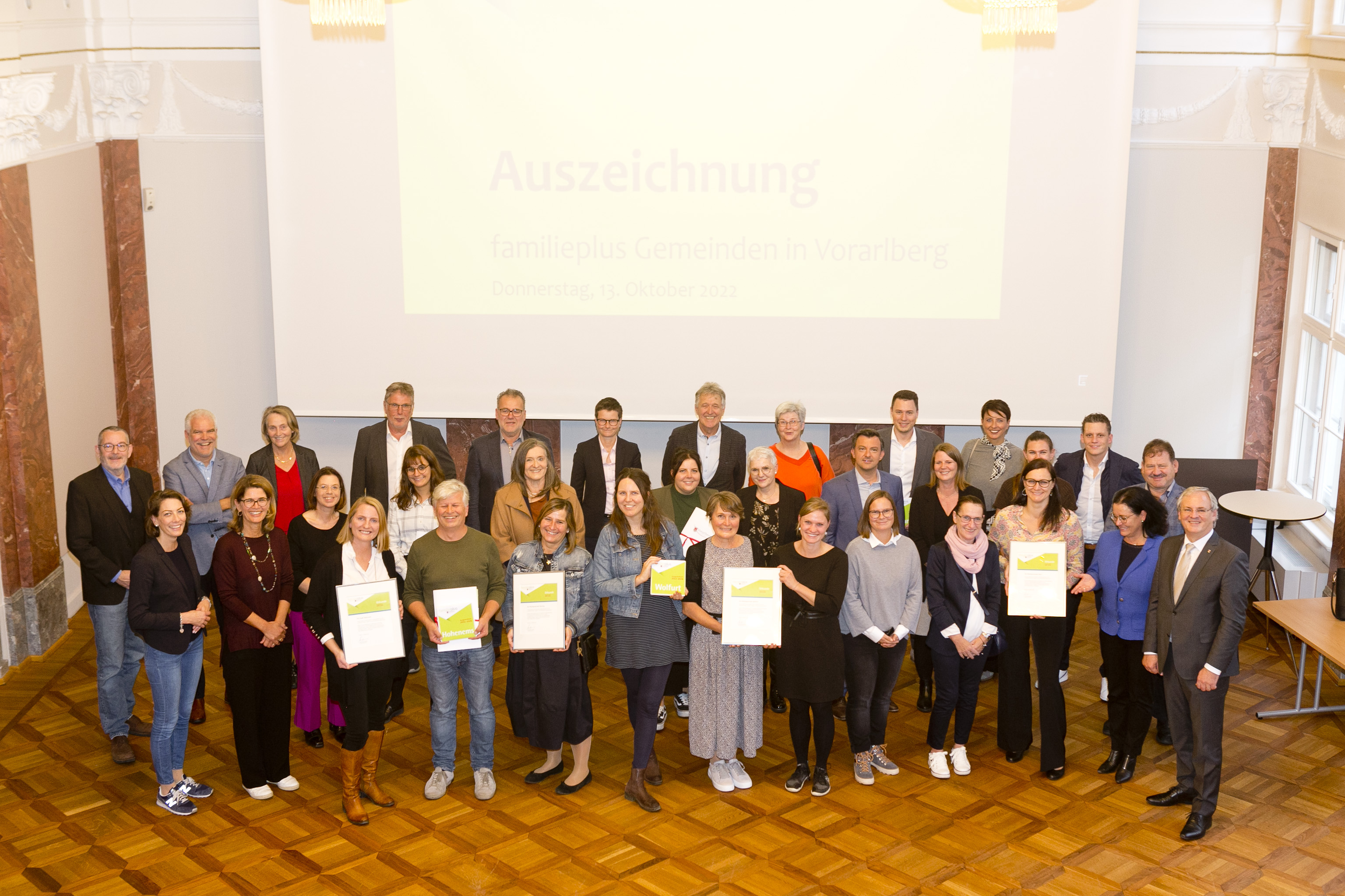 Medieninformation Donnerstag, 13.10.2022, 20:00 Vier Gemeinden mit familieplus-Gütesiegel ausgezeichnet Erfolgreiche Zertifizierung für Hohenems, Nenzing, Wolfurt und Hard