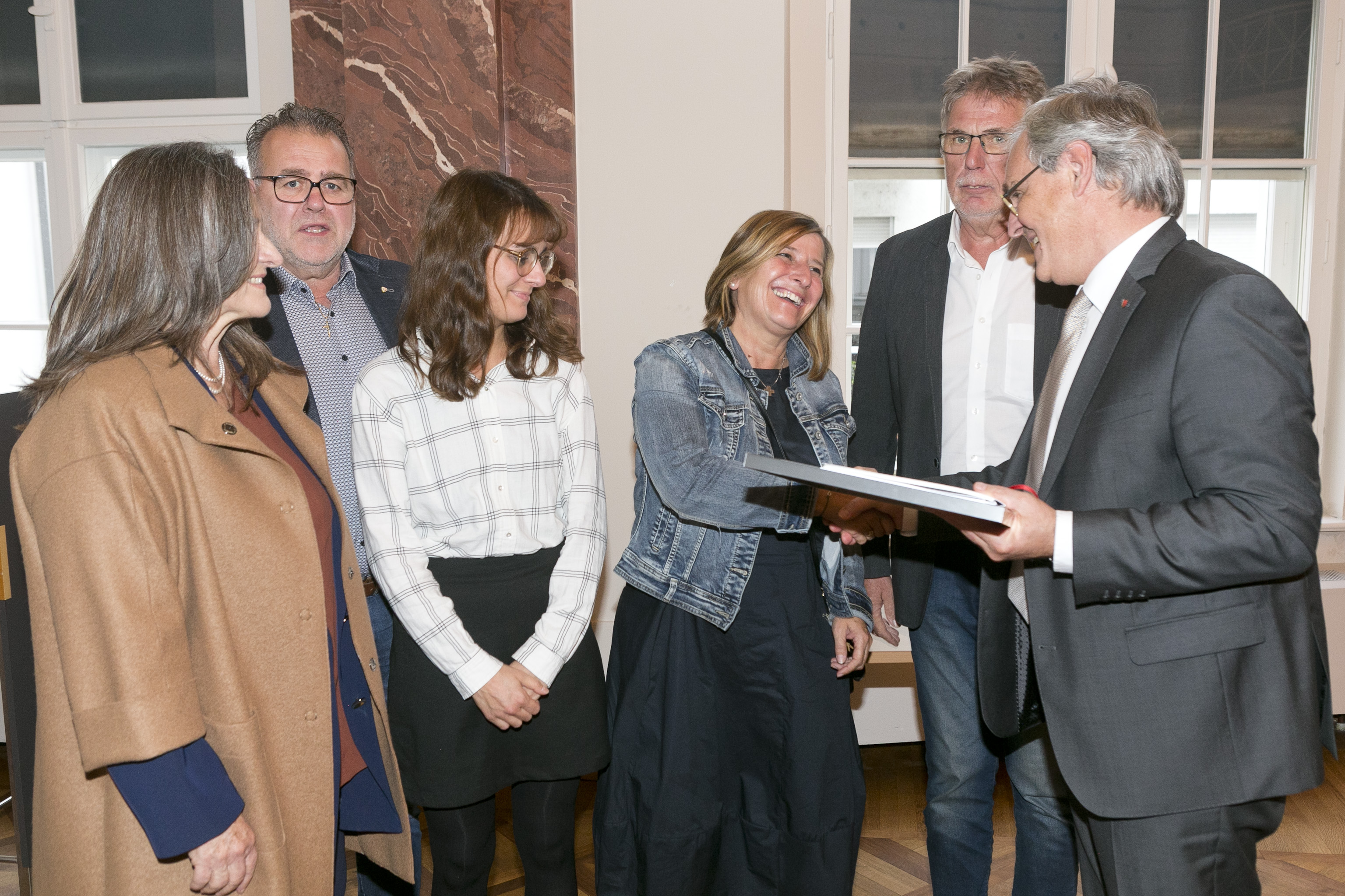 Bregenz (VLK) – Die Stadt Hohenems sowie die Marktgemeinden Wolfurt und Nenzing wurden heuer erneut für ihre Familienfreundlichkeit ausgezeichnet. Hard stellte sich zum ersten Mal der Kommission und durfte sich nach erfolgreicher Zertifizierung ebenso über das Gütesiegel freuen. Landtagspräsident Harald Sonderegger gratulierte den engagierten familieplus-Teams bei der heutigen Feier (13. Oktober) im Alten Landtagssaal in Bregenz und überbrachte Glückwünsche von Landeshauptmann Markus Wallner.