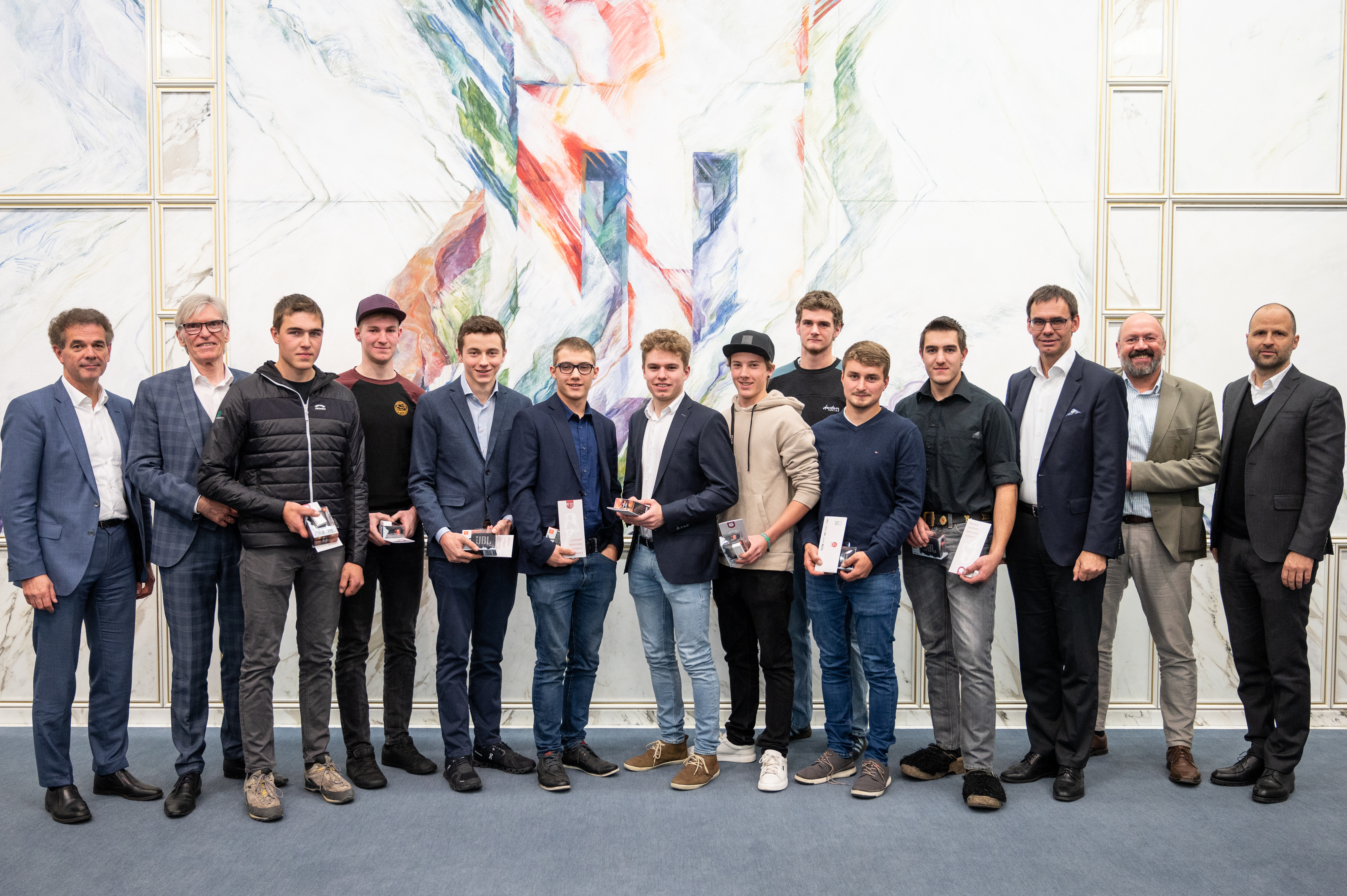 Geehrt wurden zehn Lehrlinge: Kilian Patrik Fink (1. Platz, Dachdecker), André Fleisch (1. Platz, Tischler und Holzgestalter), Simon Hagspiel (2. Platz, Metalltechniker), Christoph Peter (2. Platz, Dachdecker), German Peter (2. Platz, Zimmerer), Stefan Peter (2. Platz, Dachdecker), Peter Eberle (3. Platz, Tischler und Holzgestalter), Rafael Martin (3. Platz, Fahrzeugtechniker), Alessa Matt (3. Platz, Kosmetikerin) und Tobias Schwendinger (3. Platz, Metalltechniker)