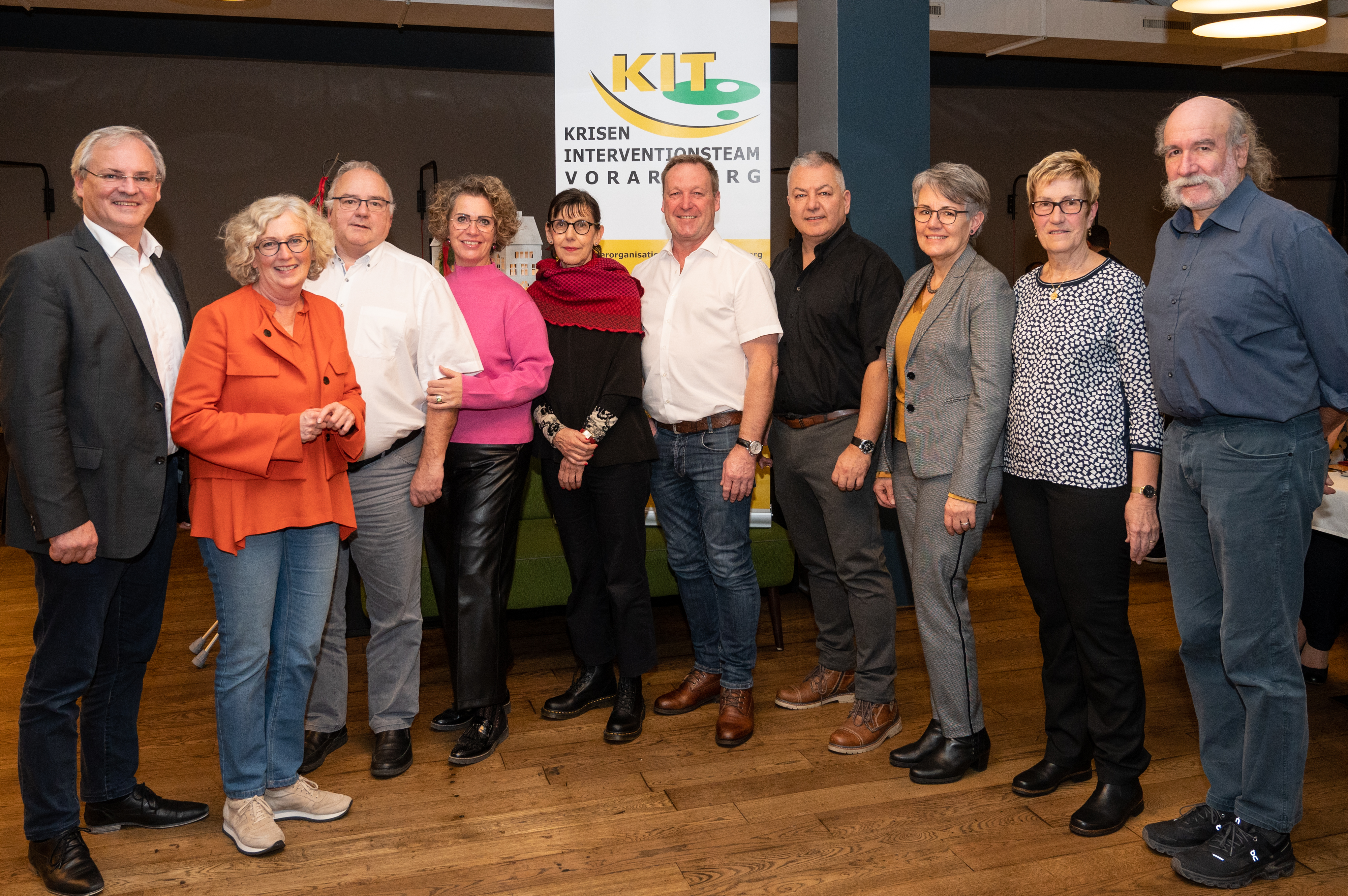 KIT Vorarlberg hat sich seit seiner Gründung im Herbst 1999 als ergänzendes Glied in der Rettungskette fest etabliert und pflegt eine bestens eingespielte Zusammenarbeit mit den Trägerorganisationen (Einsatzorganisationen, soziale und kirchliche Einrichtungen) sowie Behörden und anderen Institutionen im Lande. Aktuell zählt KIT in Vorarlberg 80 Aktive. Im Rahmen der Dankesfeier wurden 13 KIT-Mitglieder für ihr langjähriges Engagement – 10 bzw. 20 Dienstjahre – geehrt.