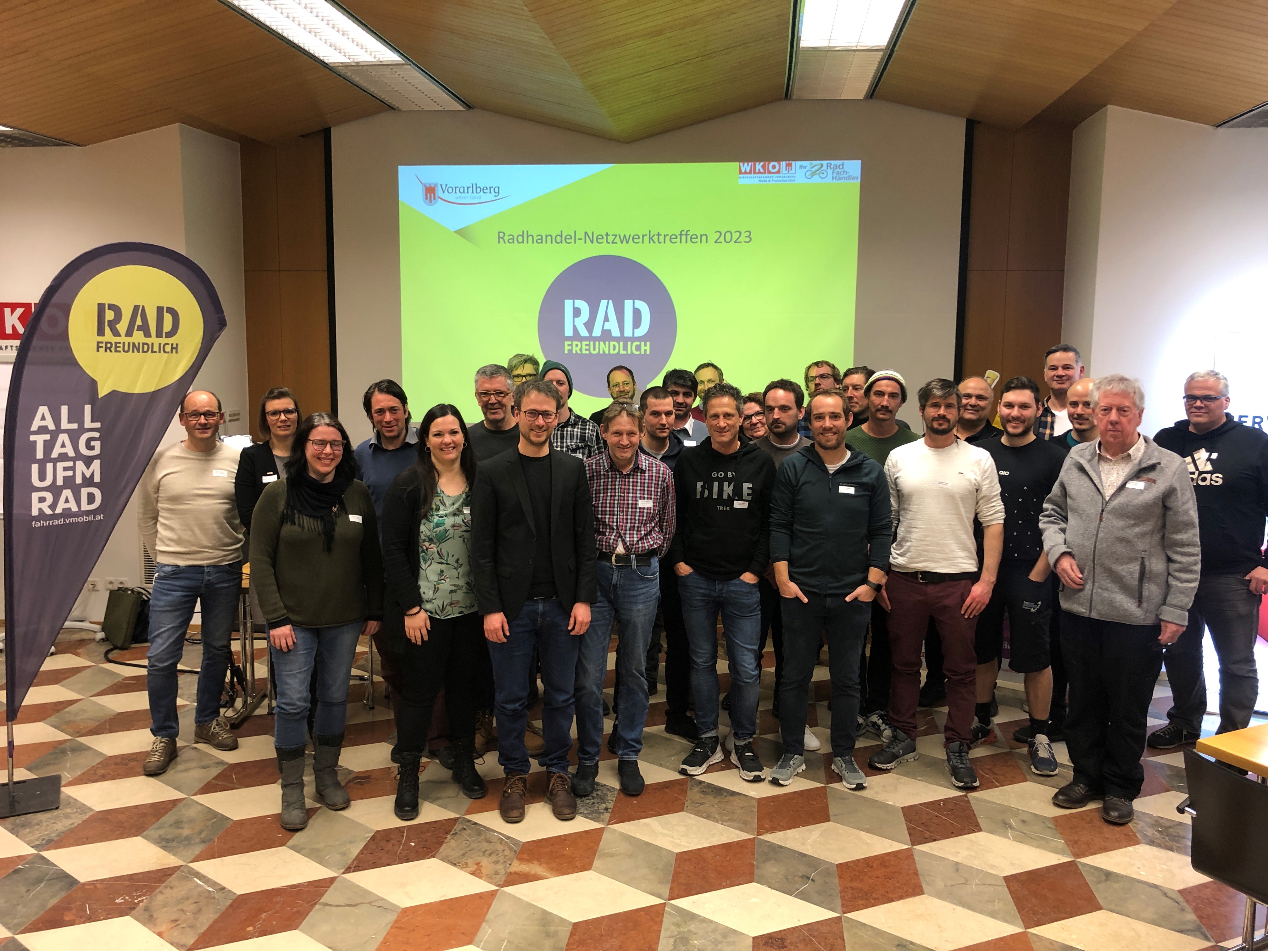 Über 30 Personen aus dem Vorarlberger Fahrradfachhandel trafen sich gestern (Montag) mit Vertreterinnen und Vertretern des Landes und der Wirtschaftskammer zu einem Netzwerktreffen in Feldkirch