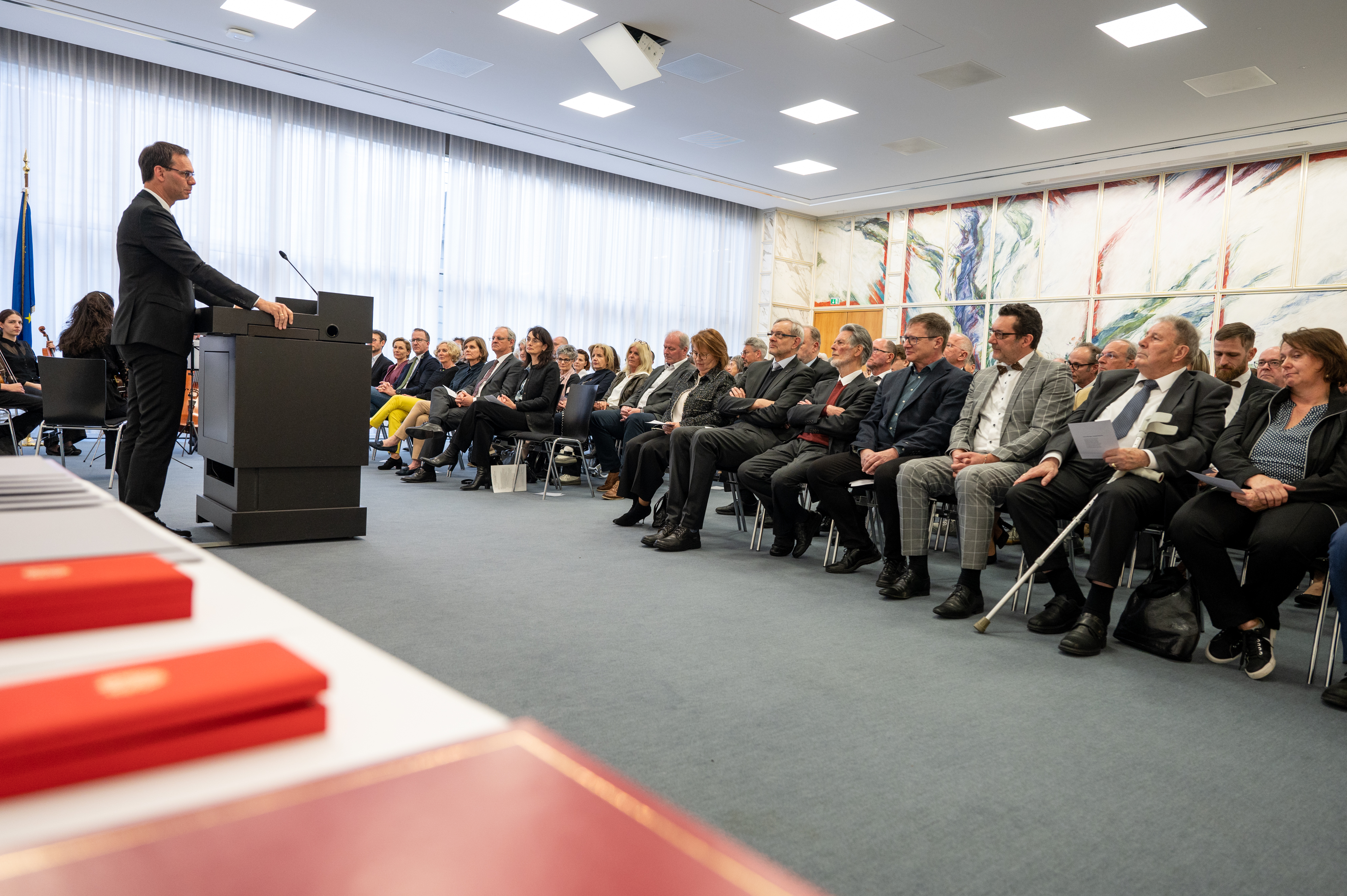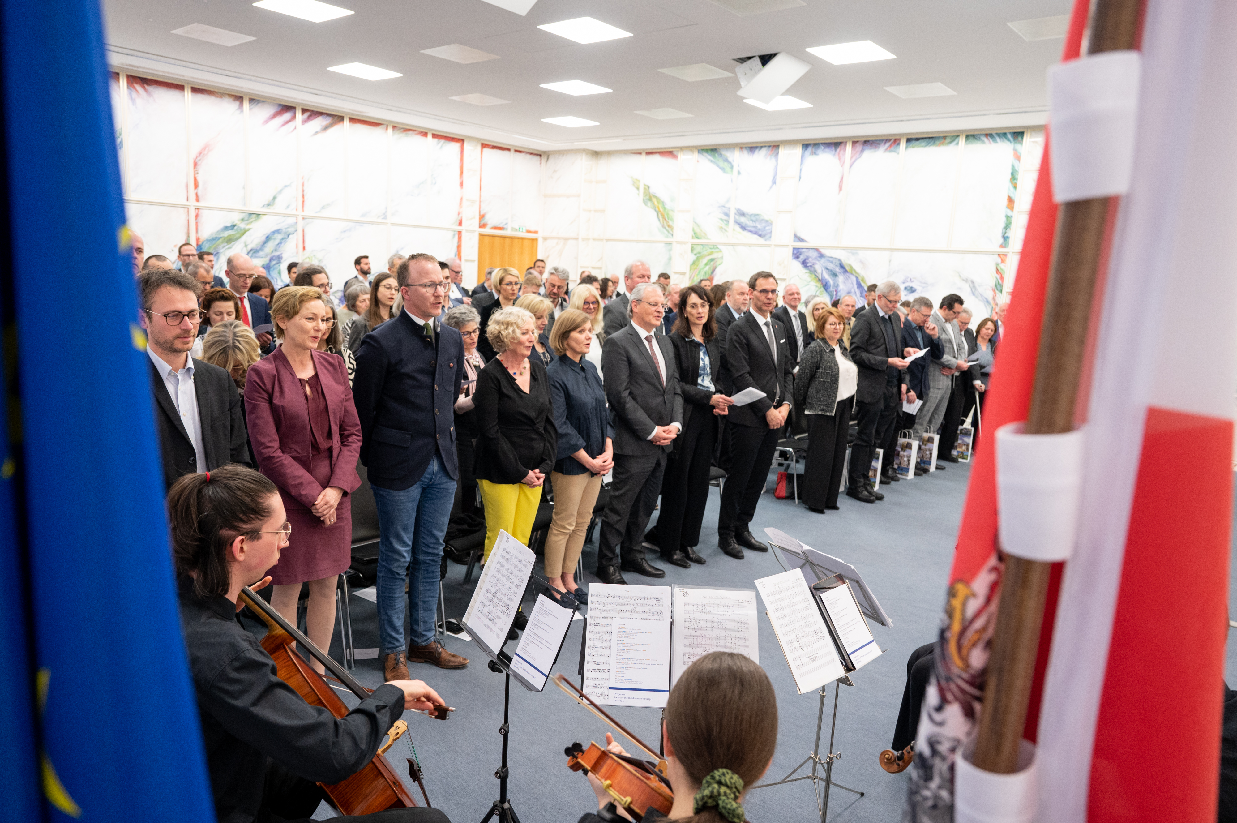 Es hat Tradition in Vorarlberg, am Tag des Landespatrons Mitbürgerinnen und Mitbürger ins Rampenlicht zu rücken, die sich in besonderer Weise um die Gesellschaft verdient gemacht haben. „Der Festtag setzt einen schönen Rahmen, um Menschen zu danken, die sich weit über das normale Maß hinaus für das Gemeinwohl einsetzen oder eingesetzt haben“, sagte der Landeshauptmann vor den anwesenden Festgästen. Dabei bedankte sich Wallner auch bei den vielen Familienmitgliedern und Angehörigen, die gekommen waren: „Außerordentliches Engagement ist immer auch mit großem Zeitaufwand verbunden. Das dafür aufgebrachte Verständnis verdient ebenso unseren Dank und unsere Wertschätzung.“