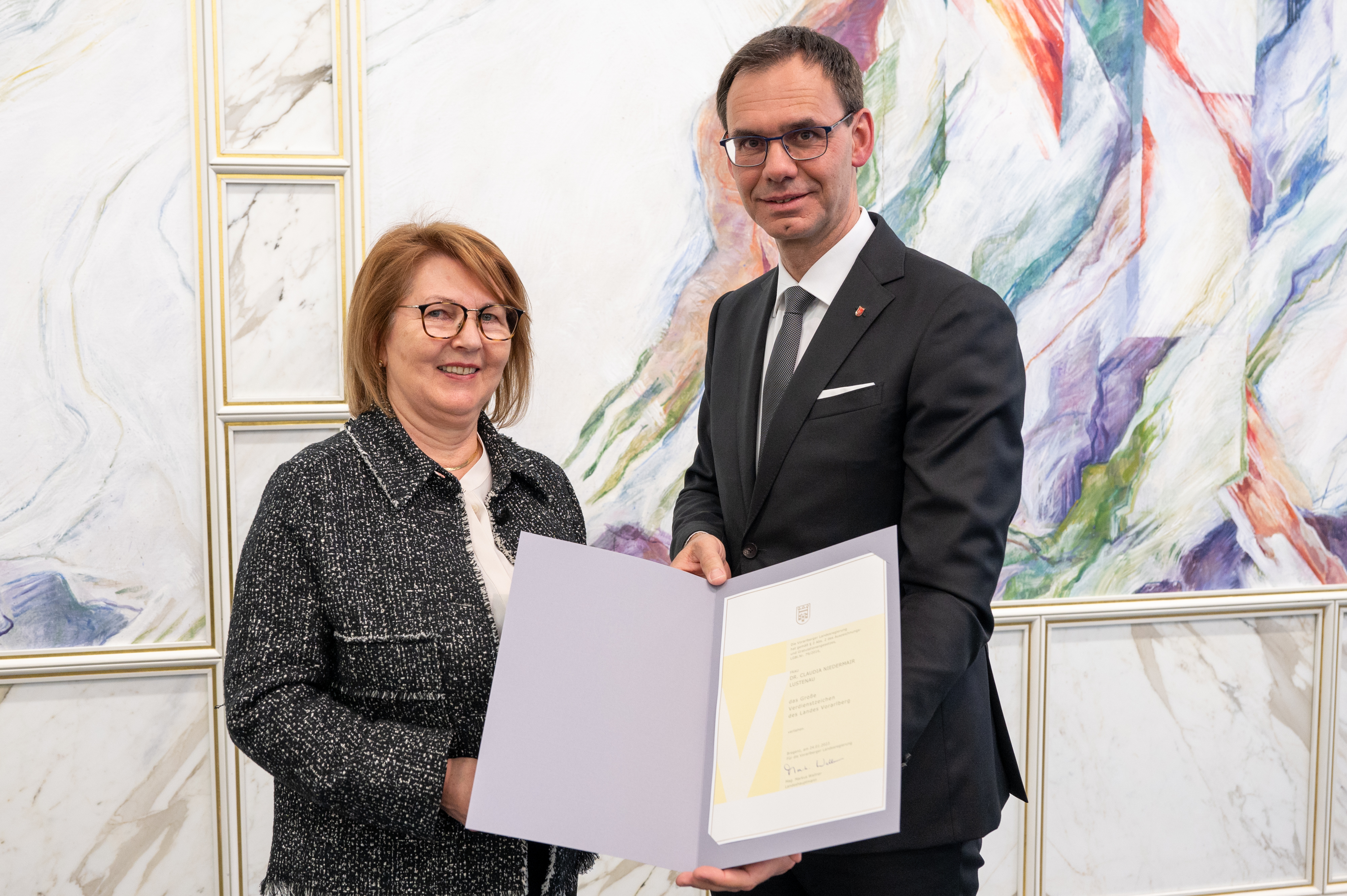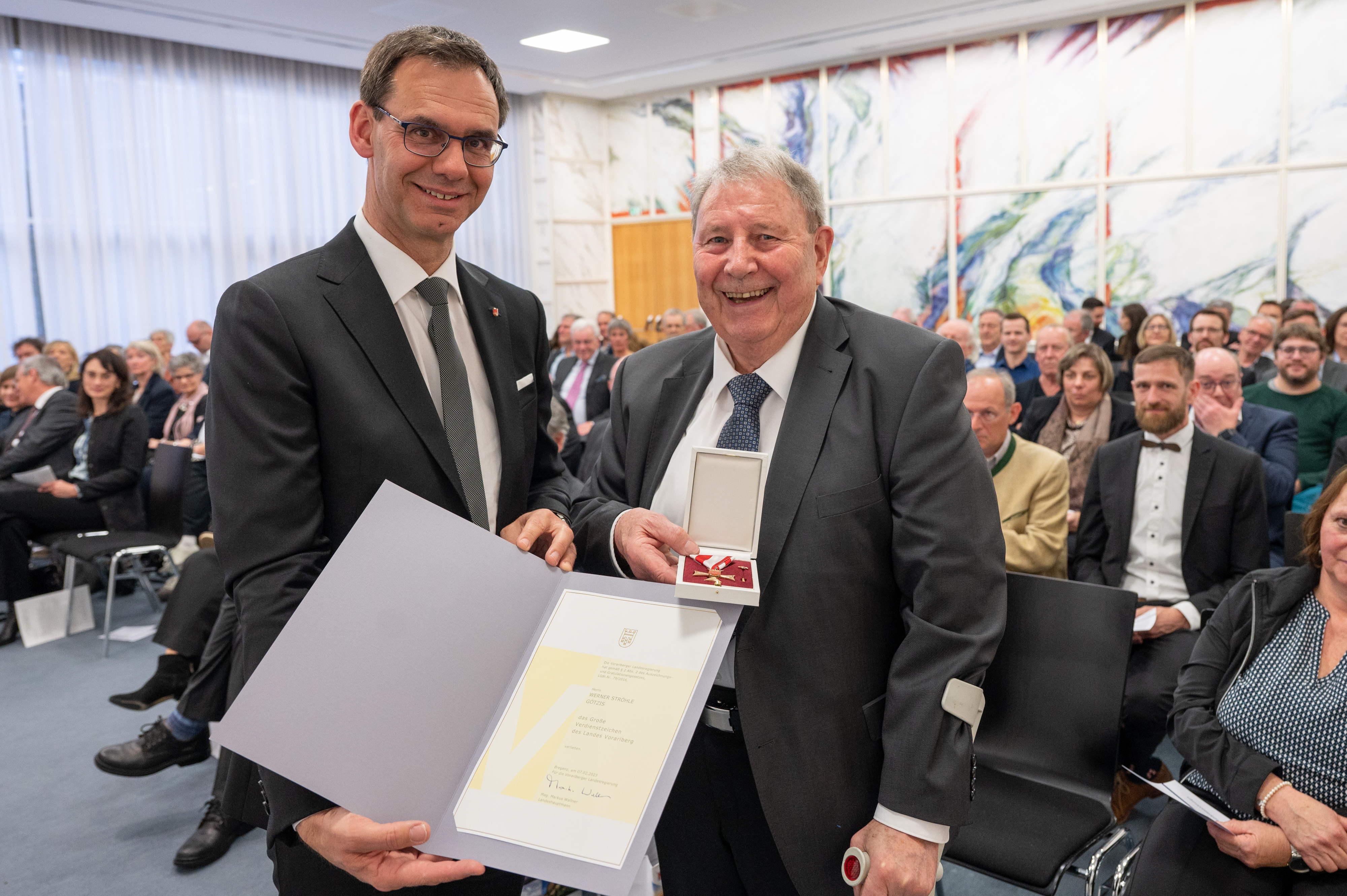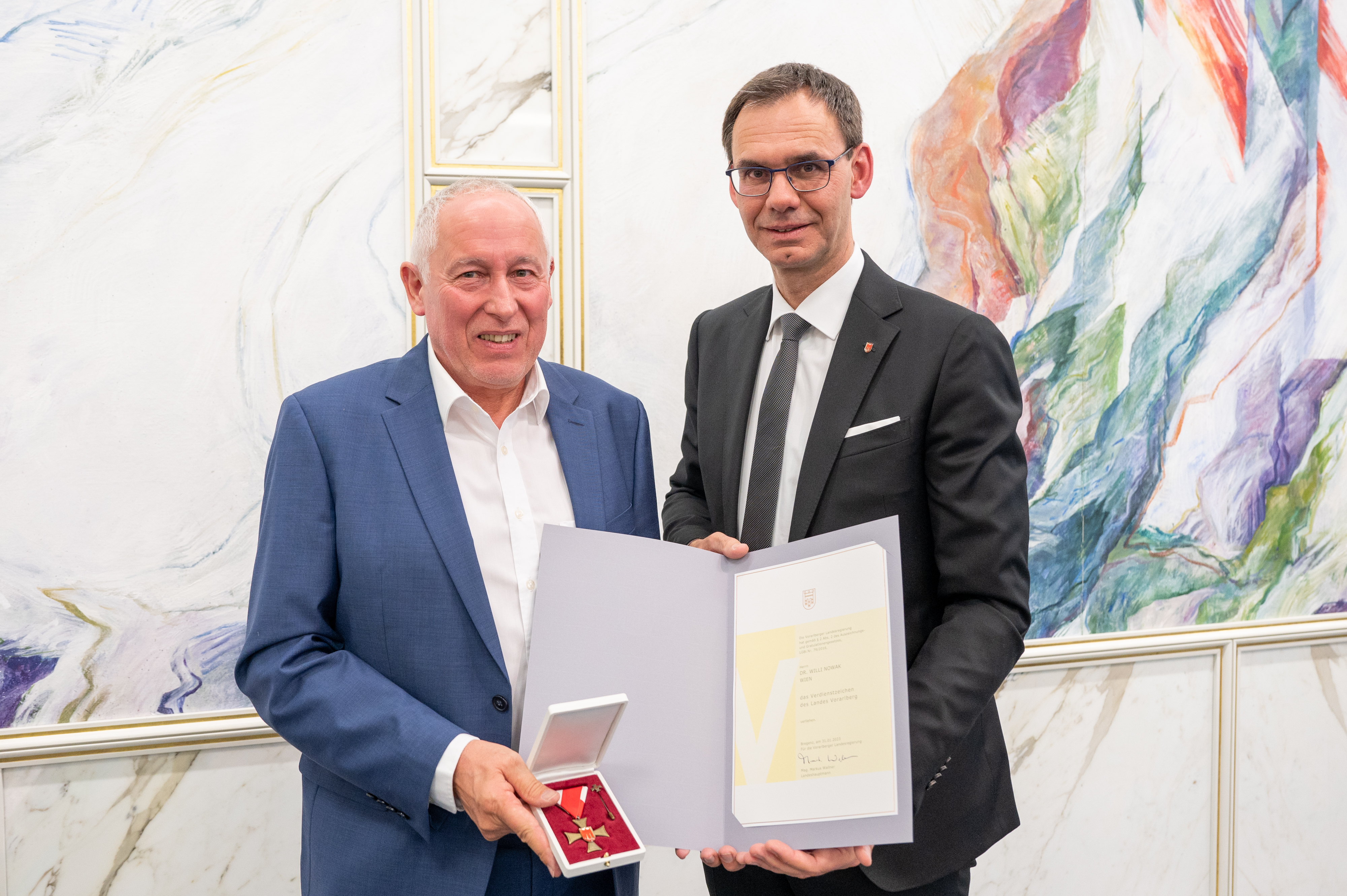 Werner Müller war von 2004 bis 2020 Bürgermeister der Gemeinde Klaus. Während seiner Amtszeit hat sich die Gemeinde zu einem dynamischen und wettbewerbsfähigen Produktions- und Wirtschaftsstandort entwickelt. Wichtig war Müller die Pflege der Gemeindepartnerschaft von Donnerskirchen und Klaus. In den vergangenen 43 Jahren fanden zahlreiche Besuche und Veranstaltungen im gegenseitigen Austausch statt. Das Land Burgenland hat seine Verdienste mit einer Landesauszeichnung gewürdigt. Letztes Jahr erhielt er das Große Verdienstzeichen des Landes Vorarlberg. Jetzt wurden die jahrzehntelangen Verdienste um die Partnerschaft der beiden Gemeinden mit dem Goldenen Verdienstzeichen der Republik Österreich gekrönt.