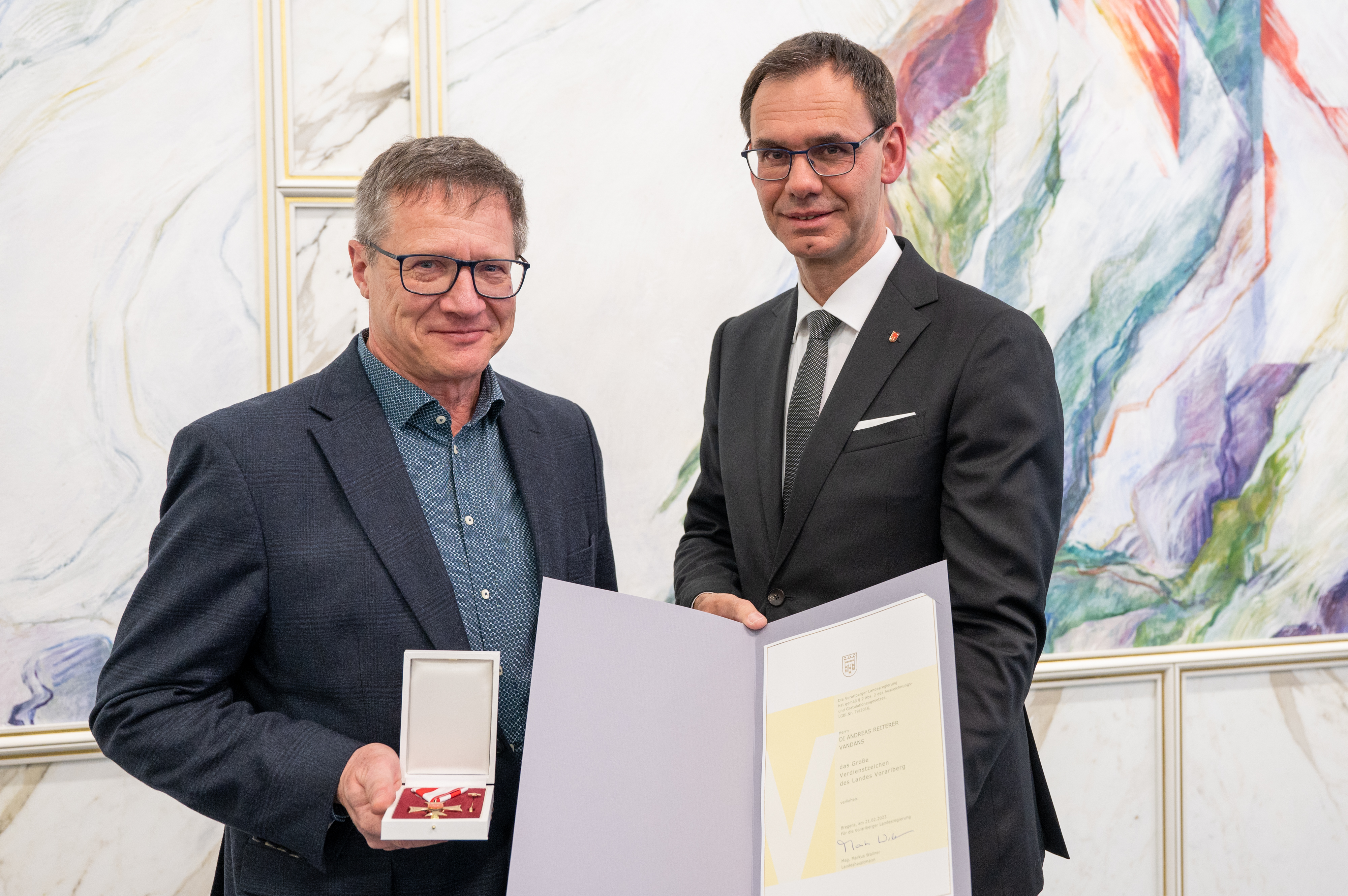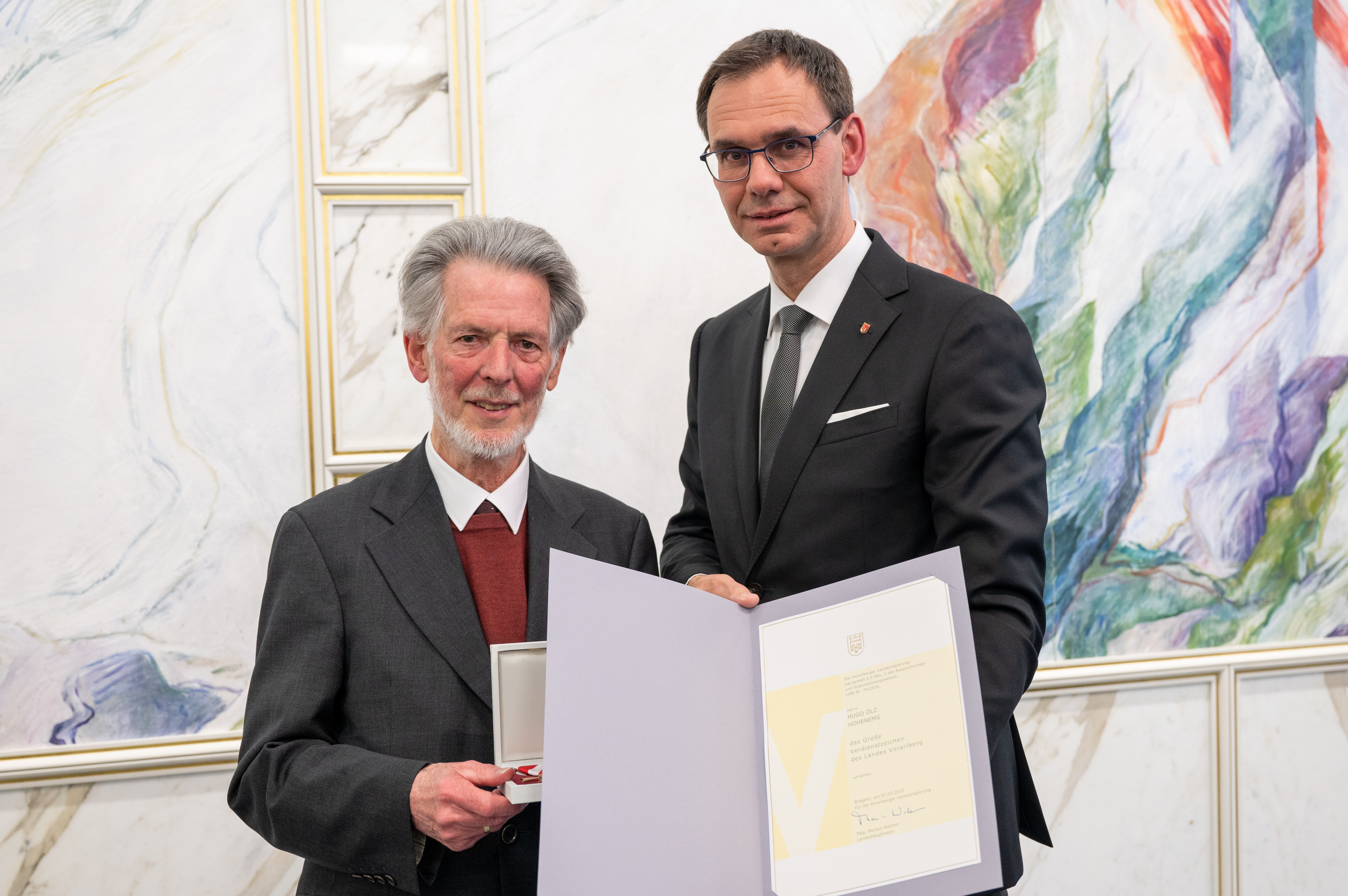 Acht Landesauszeichnungen, drei Bundesauszeichnungen Von Landeshauptmann Markus Wallner sind in Summe sechs große Verdienstzeichen vergeben worden.