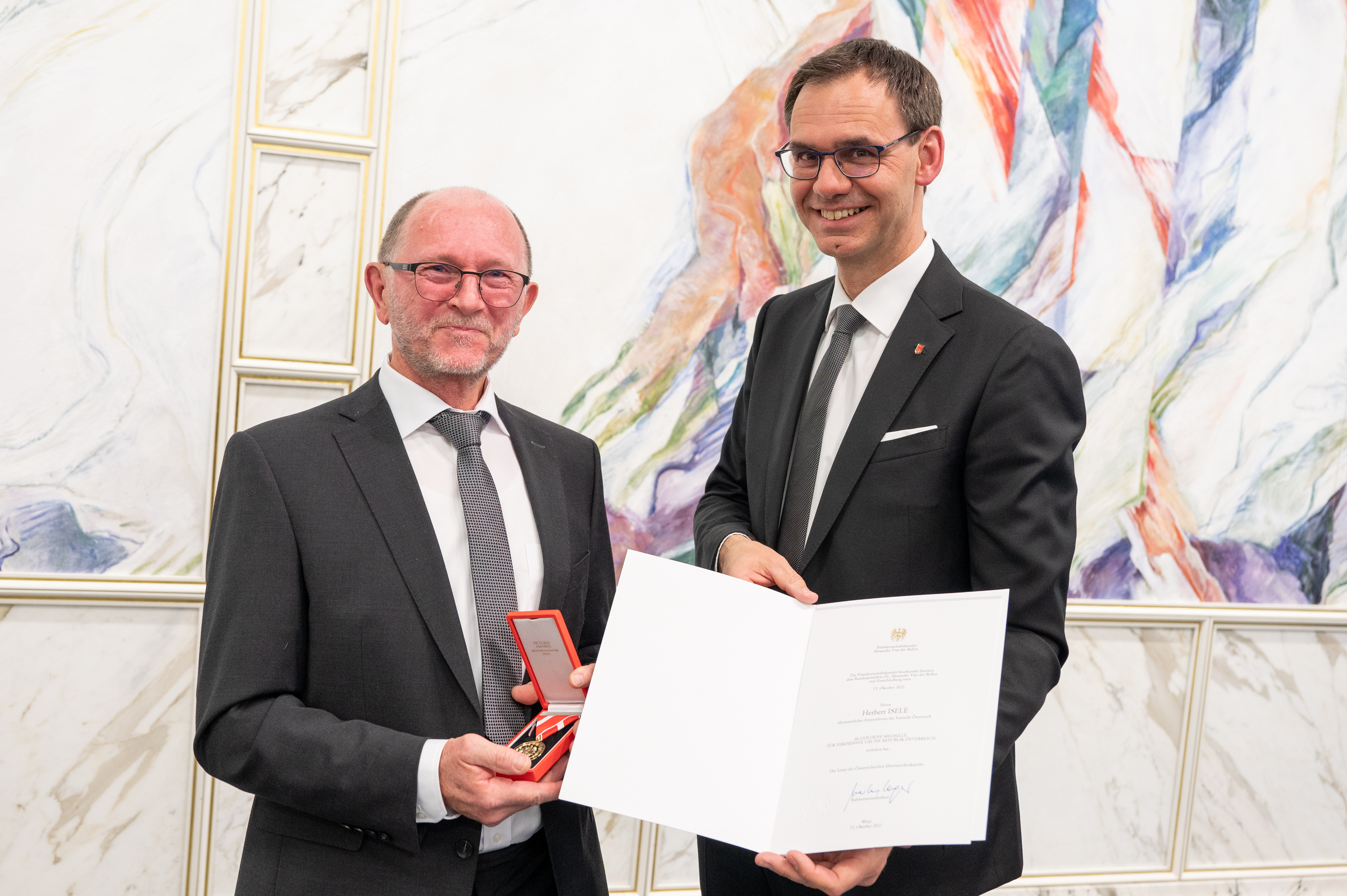 Goldene Medaille für Verdienste um die Republik Österreich Seit 1995 ist Herbert Isele ehrenamtlich als Erntereferent für die Republik Österreich tätig. Die Berichterstattung der Erntereferenten dient zur Erfassung und frühzeitigen Prognose der Produktion von pflanzlichen Erzeugnissen. Die Genauigkeit der Berichte ist von besonderer Bedeutung. Isele ist für die Berichterstattung der Gemeinden Lustenau und Hohenems zuständig. Die ehrenamtliche Tätigkeit ist mit einem erheblichen Zeitaufwand verbunden. Die Genauigkeit seiner Berichte über 27 Jahre hinweg zeugen von seinem hohen Pflichtbewusstsein.
