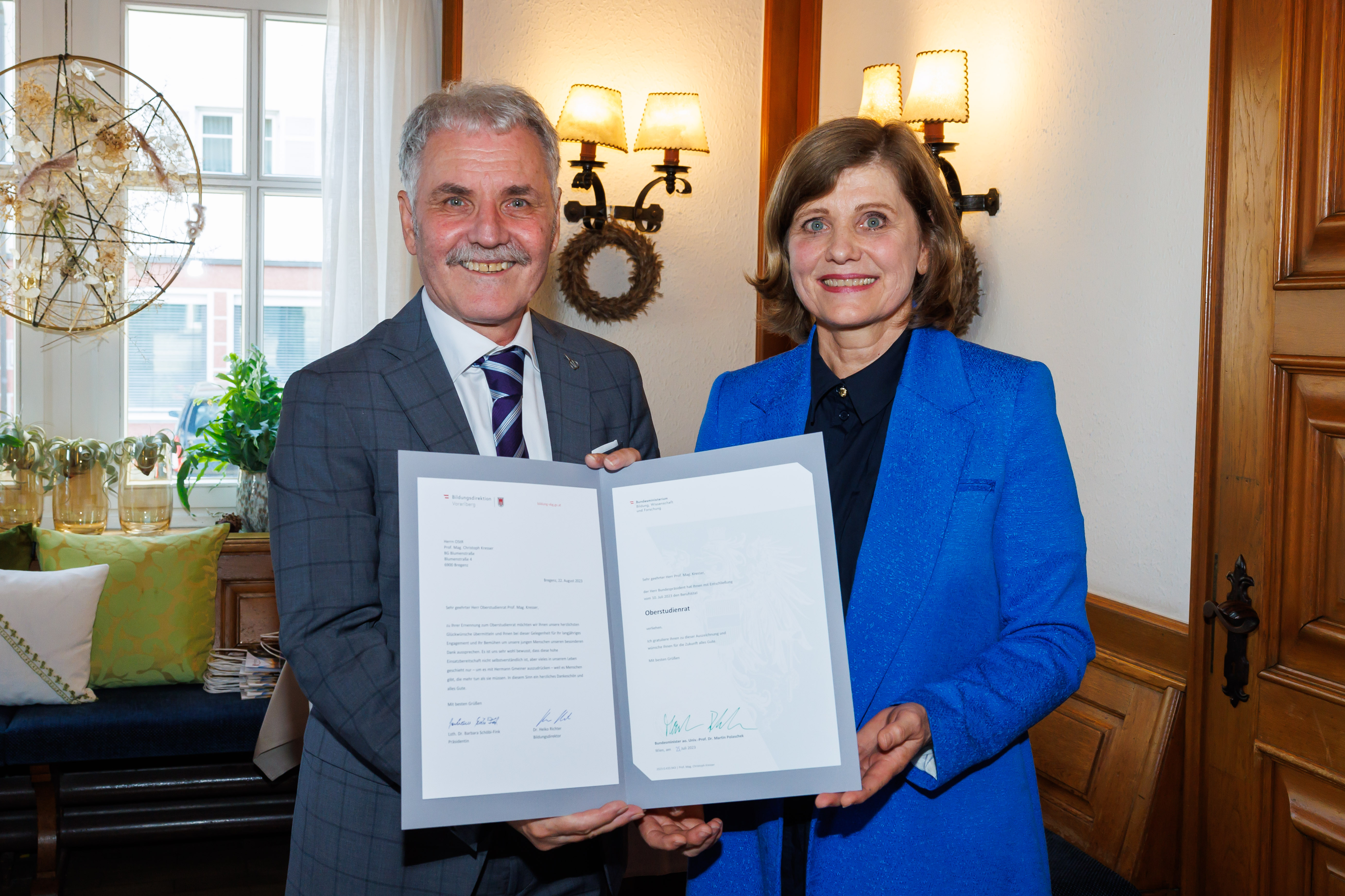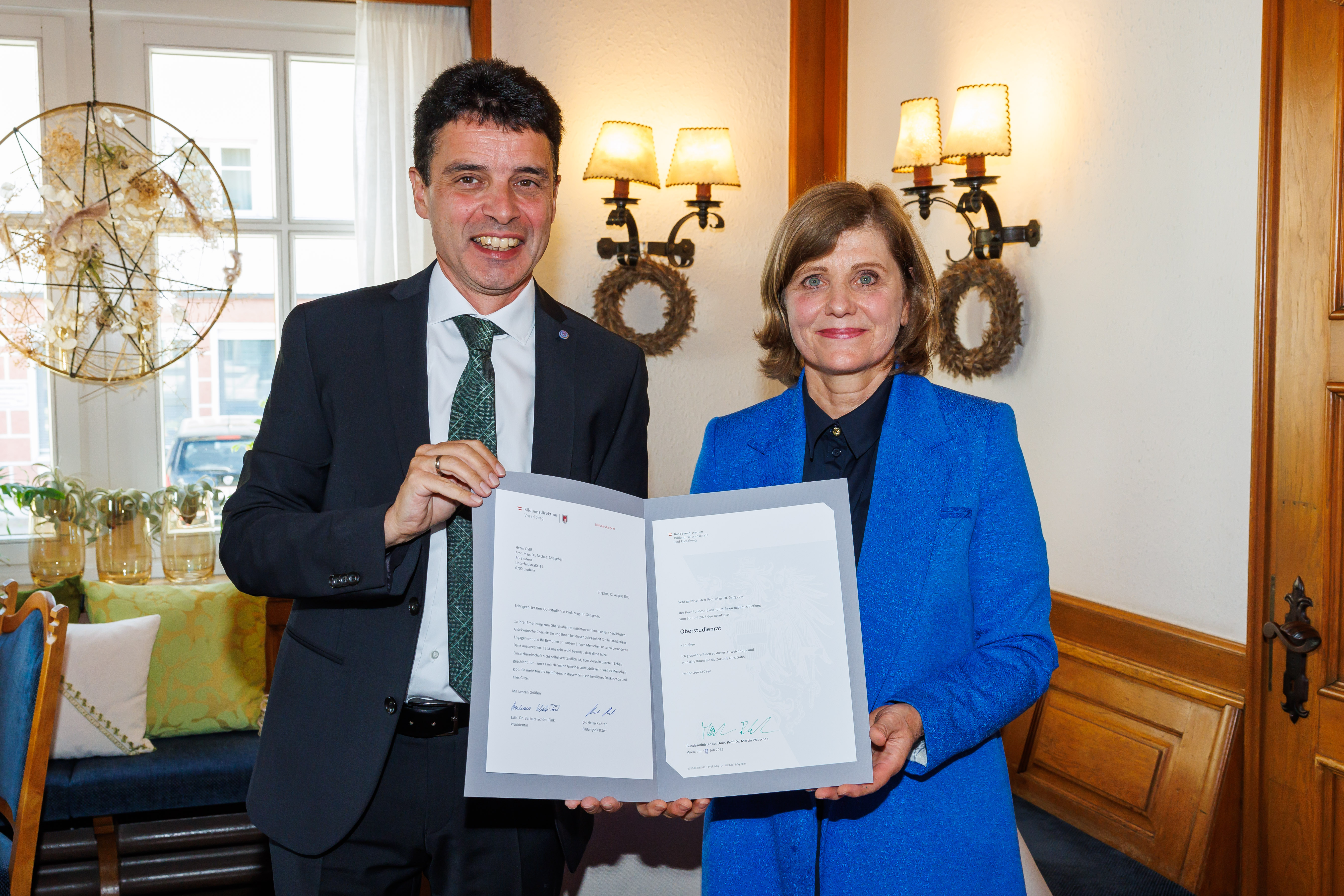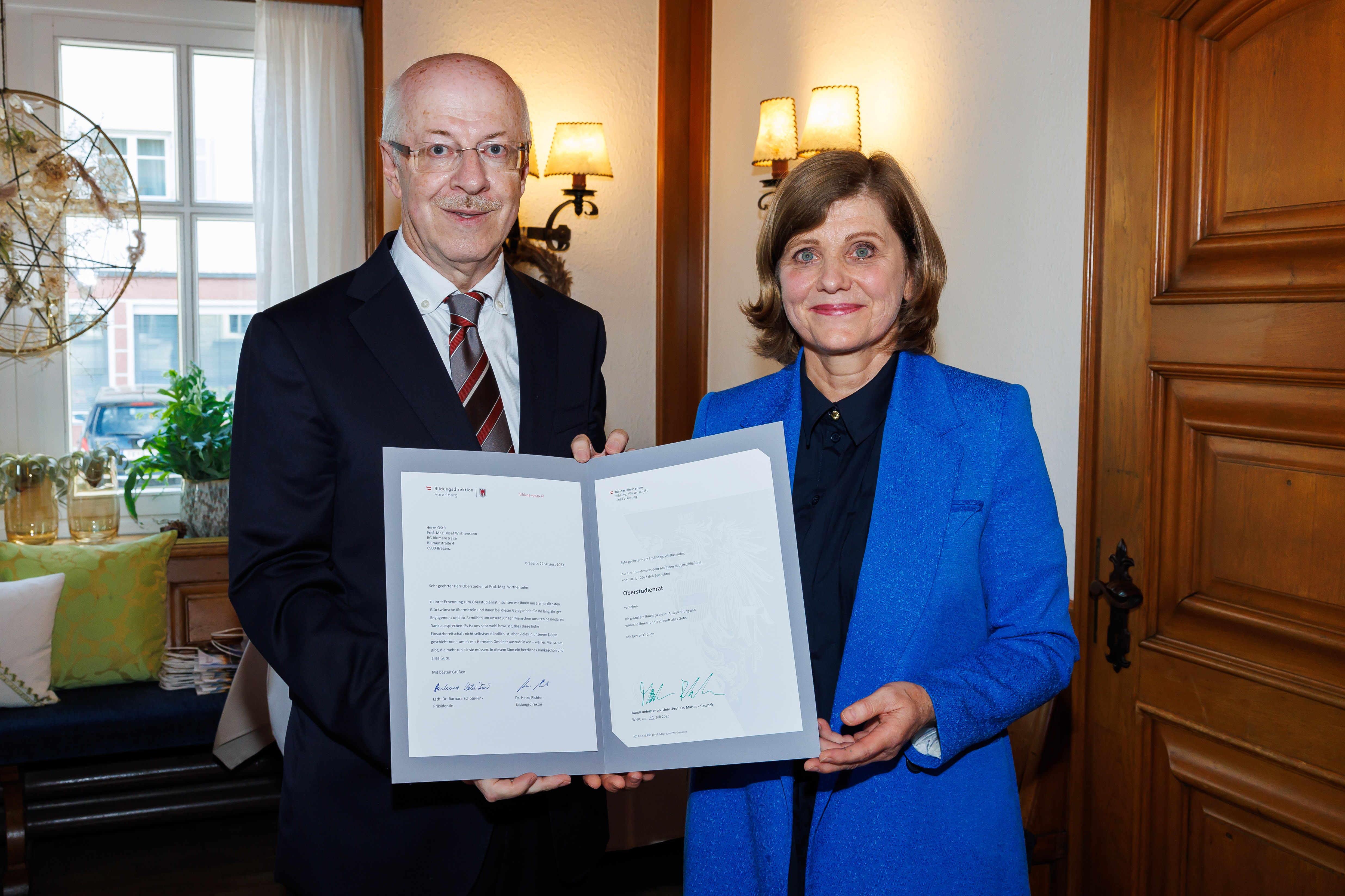 Rankweil (VLK) – Landesstatthalterin Barbara Schöbi-Fink überreichte heute (Donnerstag, 21. September) in Rankweil Berufstiteldekrete an zehn engagierte Pädagoginnen und Pädagogen. Insgesamt wurden drei Landeslehrpersonen zu Oberschulräten und sieben Bundeslehrpersonen zu Oberstudienräten ernannt.