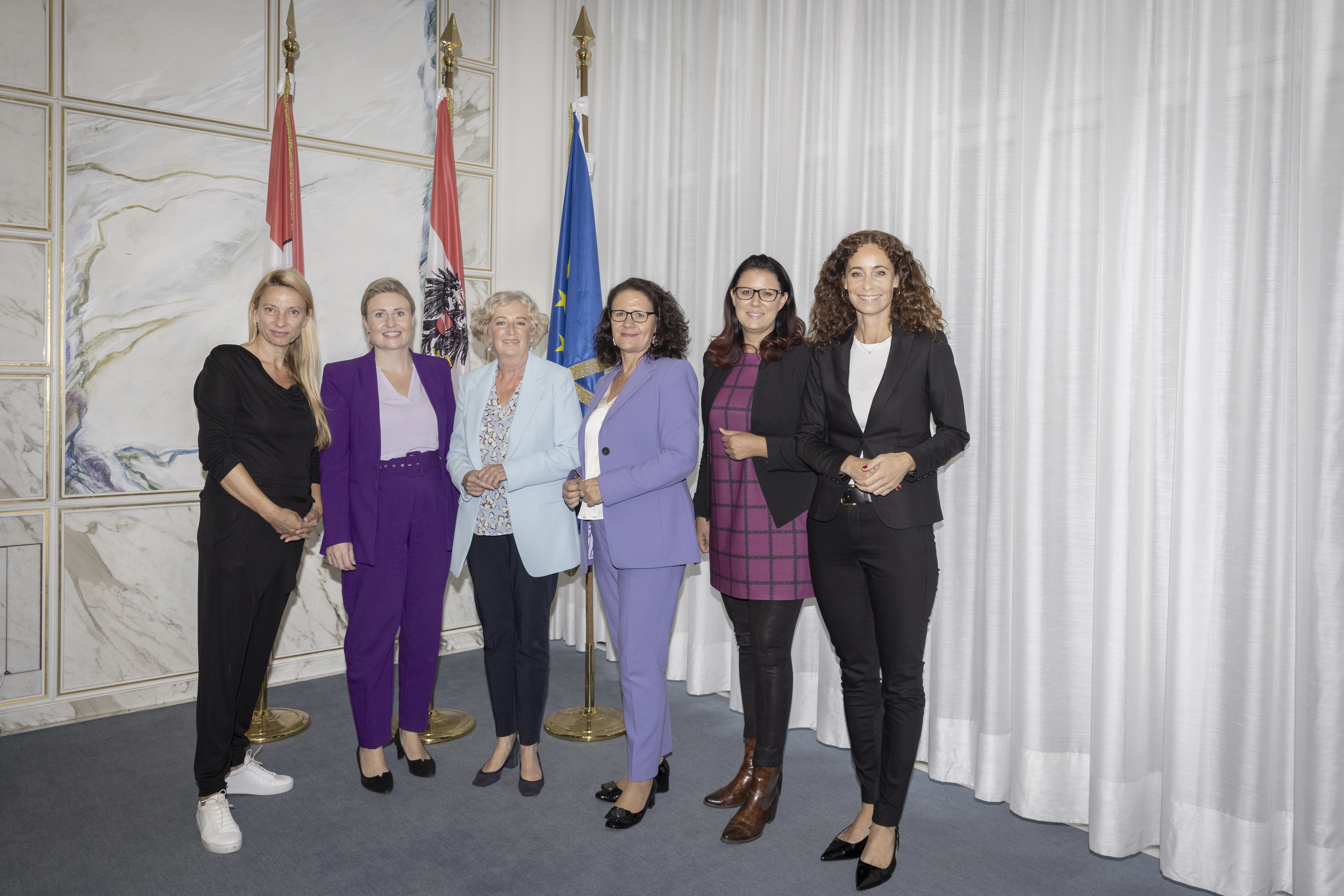 LRin Daniela Gutschi (Salzburg), LRin Eva Pawlata (Tirol), LRin Katharina Wiesflecker (Vorarlberg), LRin Sara Schaar (Kärnten) und LRin Juliane Bogner-Strauß (Steiermark).