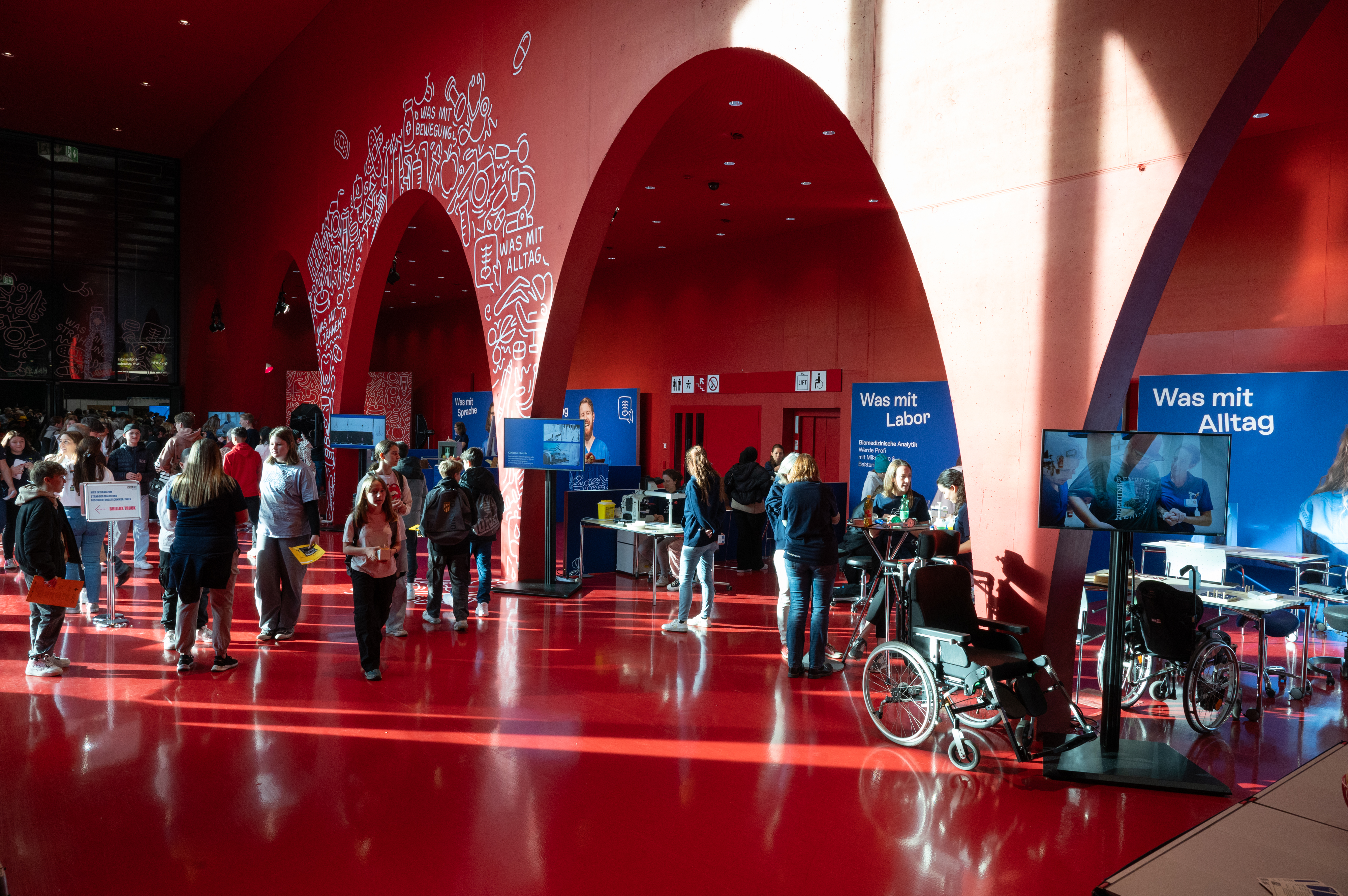 Auf insgesamt rund 300m2 können Jugendliche in der Halle 10 und in zwei Domes im Außenbereich folgende Berufe im Gesundheitswesen kennenlernen und interaktiv erleben: