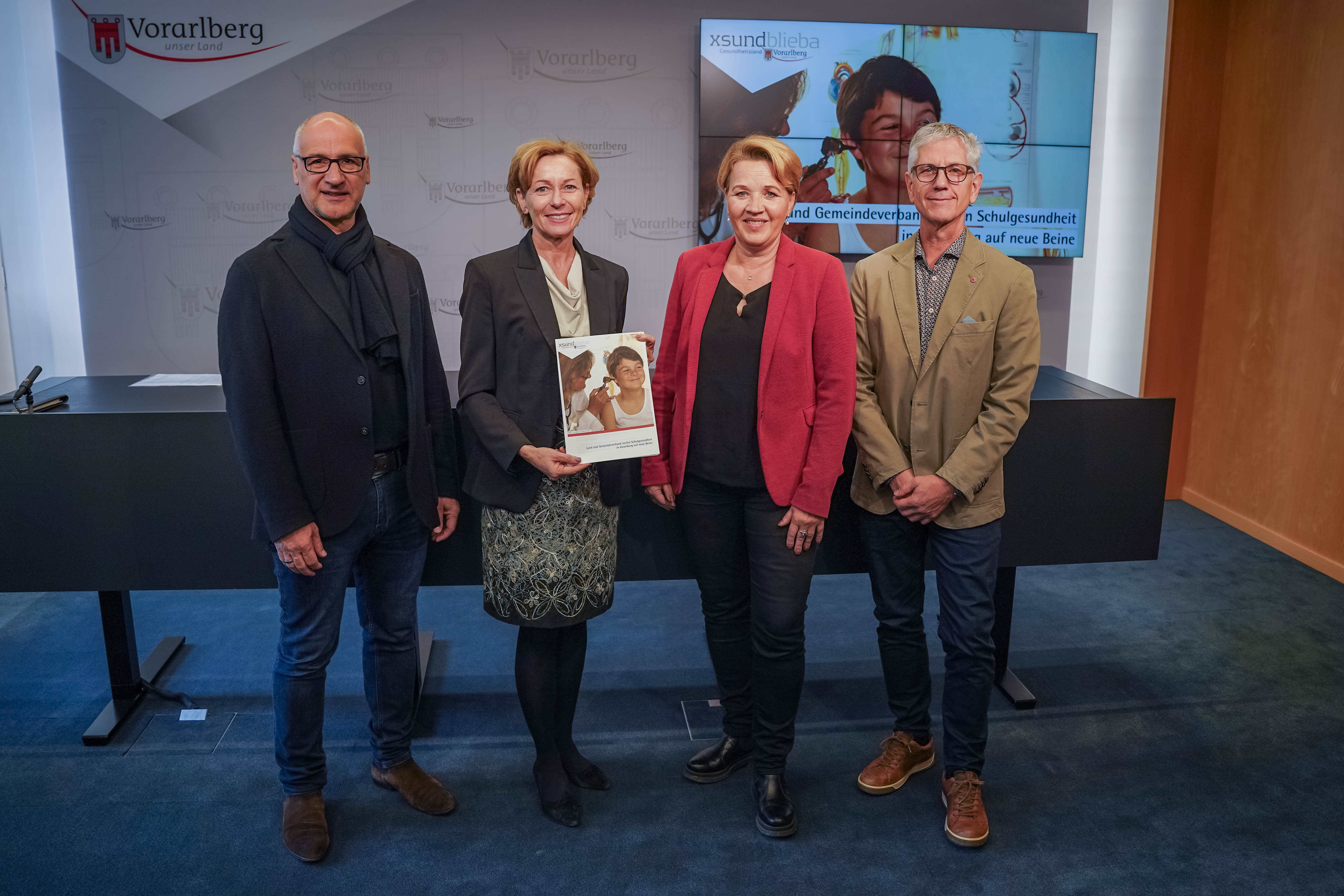 Bregenz (VLK) – Auf Initiative des Landes und des Gemeindeverbands ist das System der Schulgesundheit in Vorarlberg gründlich überarbeitet und auf neue Beine gestellt worden. „Den Schülerinnen und Schülern an den Pflichtschulen soll die bestmögliche Versorgung geboten werden, um ein gesundes Aufwachsen zu fördern“, sagte Landesrätin Martina Rüscher heute (Donnerstag, 9. November) im Landhaus bei der Vorstellung der Neuerungen gemeinsam mit Gemeindeverbandspräsidentin Andrea Kaufmann, Harald Geiger vom Kinderärztezentrum Dornbirn und connexia-Geschäftsführer Martin Hebenstreit. Ab dem laufenden Wintersemester 2023/2024 werden die ersten Punkte umgesetzt. Im Rahmen eines Pilotprojektes werden für die Dauer dieses Schuljahres an acht Vorarlberger Pflichtschulen School Nurses eingesetzt, die als niederschwellige Anlaufs-, Koordinations- und Interventionsstelle in Sachen Schulgesundheit fungieren.