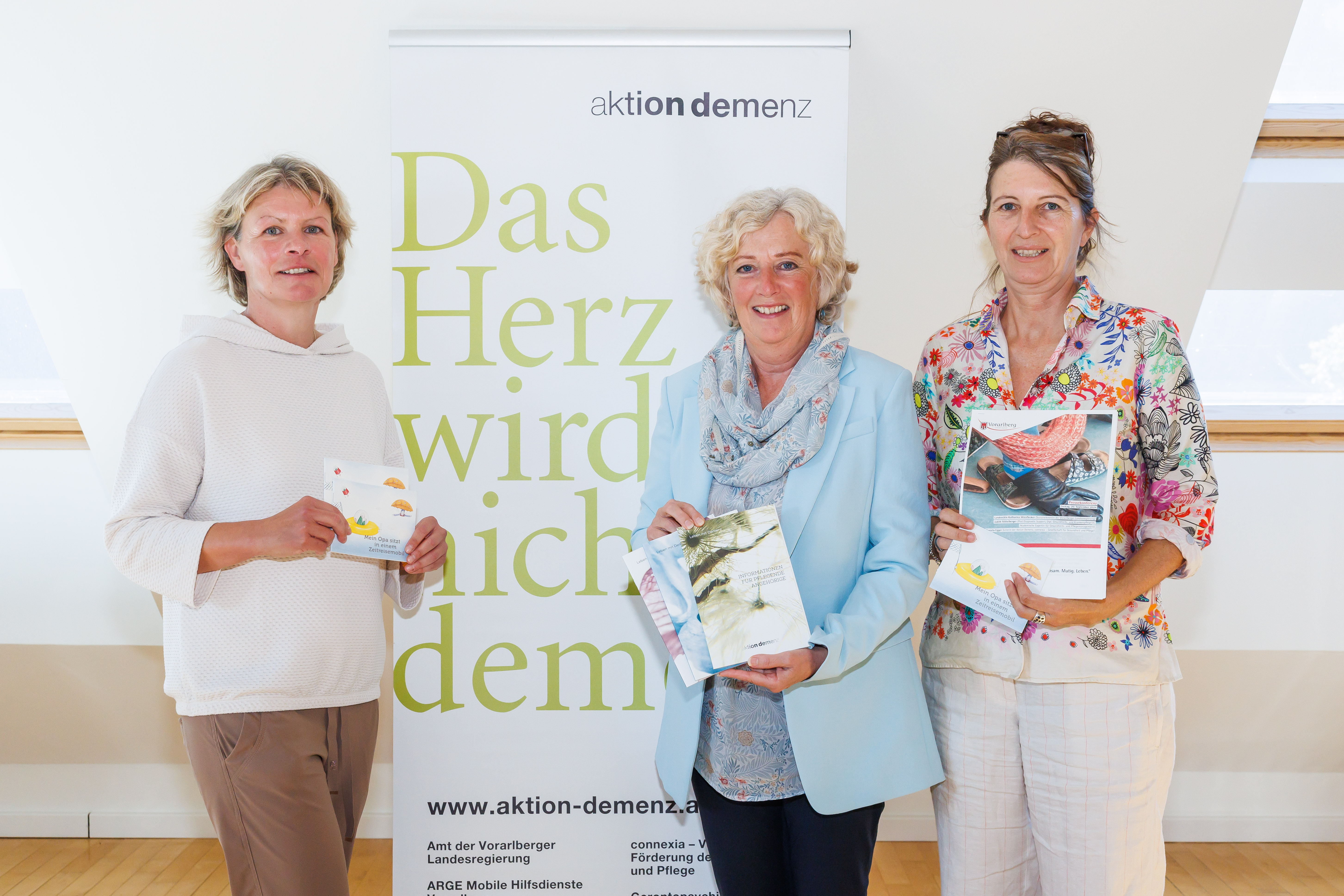 So lautet das diesjährige Motto zum Weltalzheimertag am 21. September 2024. Die Sensibilisierungsprojekte der Aktion Demenz zielen genau darauf ab – auf gemeinsame Aktivitäten mit Menschen mit Demenz, auf Geschichten, die Mut machen, das Leben bis zuletzt zu feiern und einen guten Umgang mit der Erkrankung zu finden. Darunter sind Film-, Bücherei- und Musik-Abende. Im Frühjahr wurde die dreiteilige Informationsbroschüre der Aktion Demenz überarbeitet und neu gestaltet. Sie liegt zur freien Entnahme in Arztpraxen und Gemeinden auf.