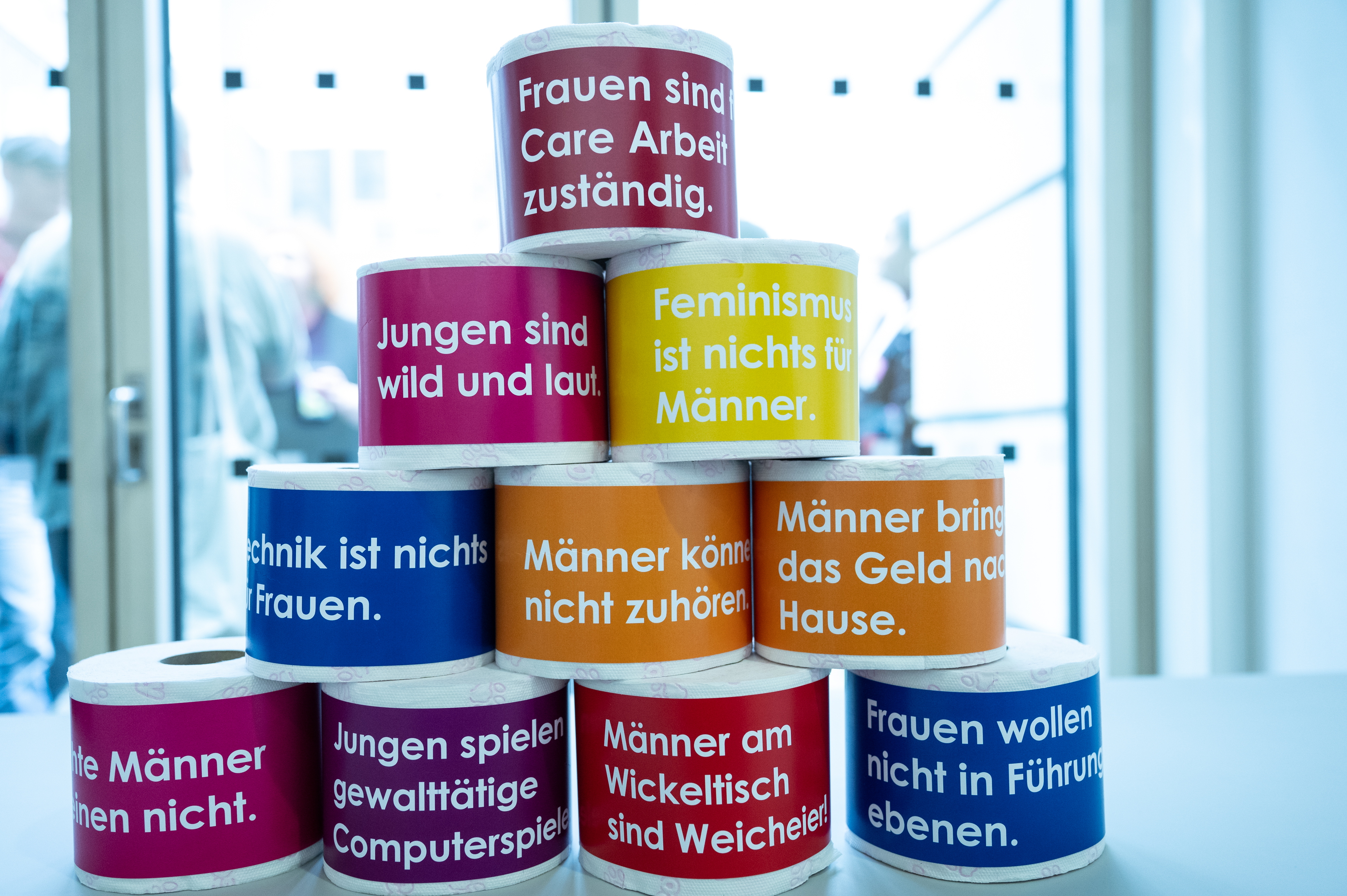 Christoph May, Gründer des Instituts für Kritische Männerforschung, teilte seine Expertise: Mit Perspektiven aus der Kritischen Männlichkeitsforschung und anhand anschaulicher Beispiele aus Medien und Popkultur machte er deutlich, warum feministische Perspektiven im Patriarchat insbesondere für Männer relevant sein müssen. Brigitte Stadelmann und Larissa Kreuzer, Mitarbeiterinnen des amazoneZENTRUM und der amazoneBERATUNG, brachten Erfahrungen aus der Arbeit mit Jugendlichen zum Thema ein: Um Kindern und Jugendlichen eine freie Entfaltung ihrer Potenziale und ein selbstbestimmtes Leben zu ermöglichen, sei feministische Bildung und Praxis zu Hause, in Schule und Freizeit sowie in Medien unerlässlich.
