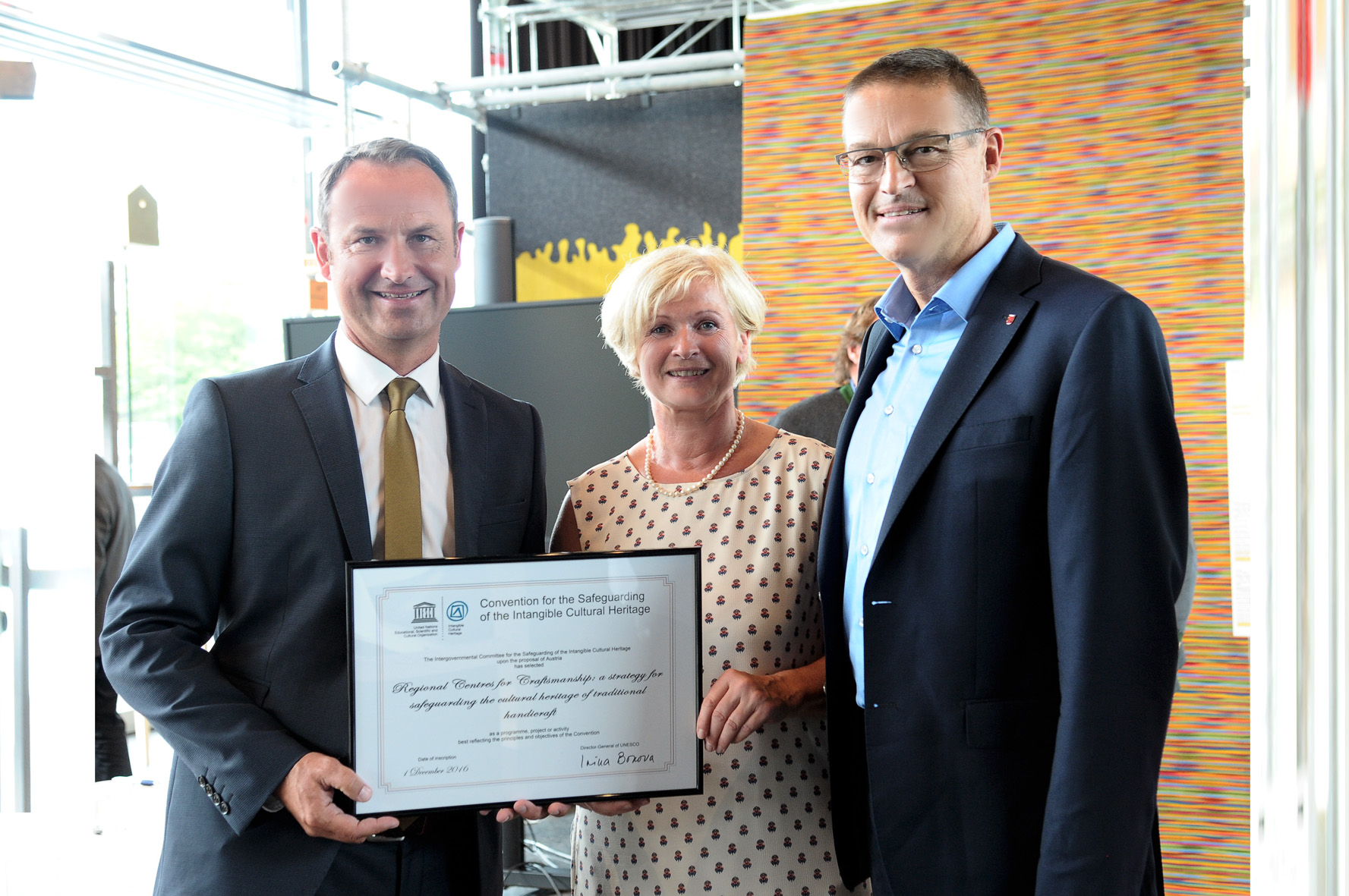 Das „Register guter Praxisbeispiele für die Erhaltung des immateriellen Kulturerbes“ („Register of Good Safeguarding Practices“) zeichnet erfolgreiche Projekte in diesem Bereich aus. Die drei österreichischen Handwerkszentren überzeugten die UNESCO-Kommission und sind nun im Register gemeinsam mit 391 weiteren Programmen gelistet, beispielsweise die Ausbildung in traditioneller indonesischer Batik-Technik (Indonesien), Zentrum für indigene Kunst in Veracruz (Mexiko), Wiederbelebung des Kalbrennens in Morón de la Frontera (Spanien).