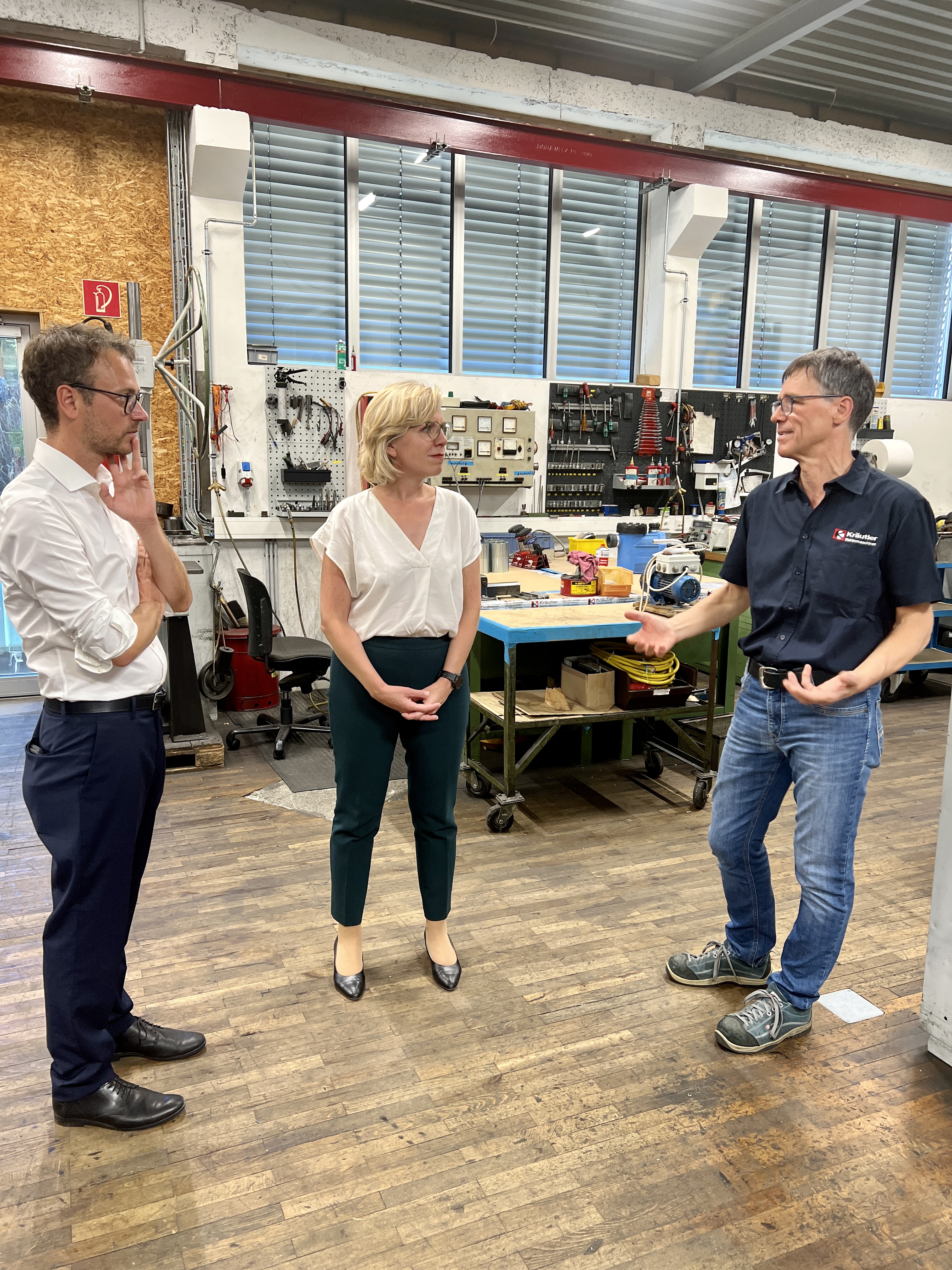 Klimaschutzministerin Gewessler und Mobilitätslandesrat Zadra zu Besuch bei der Kräutler Elektromaschinen GmbH in Lustenau