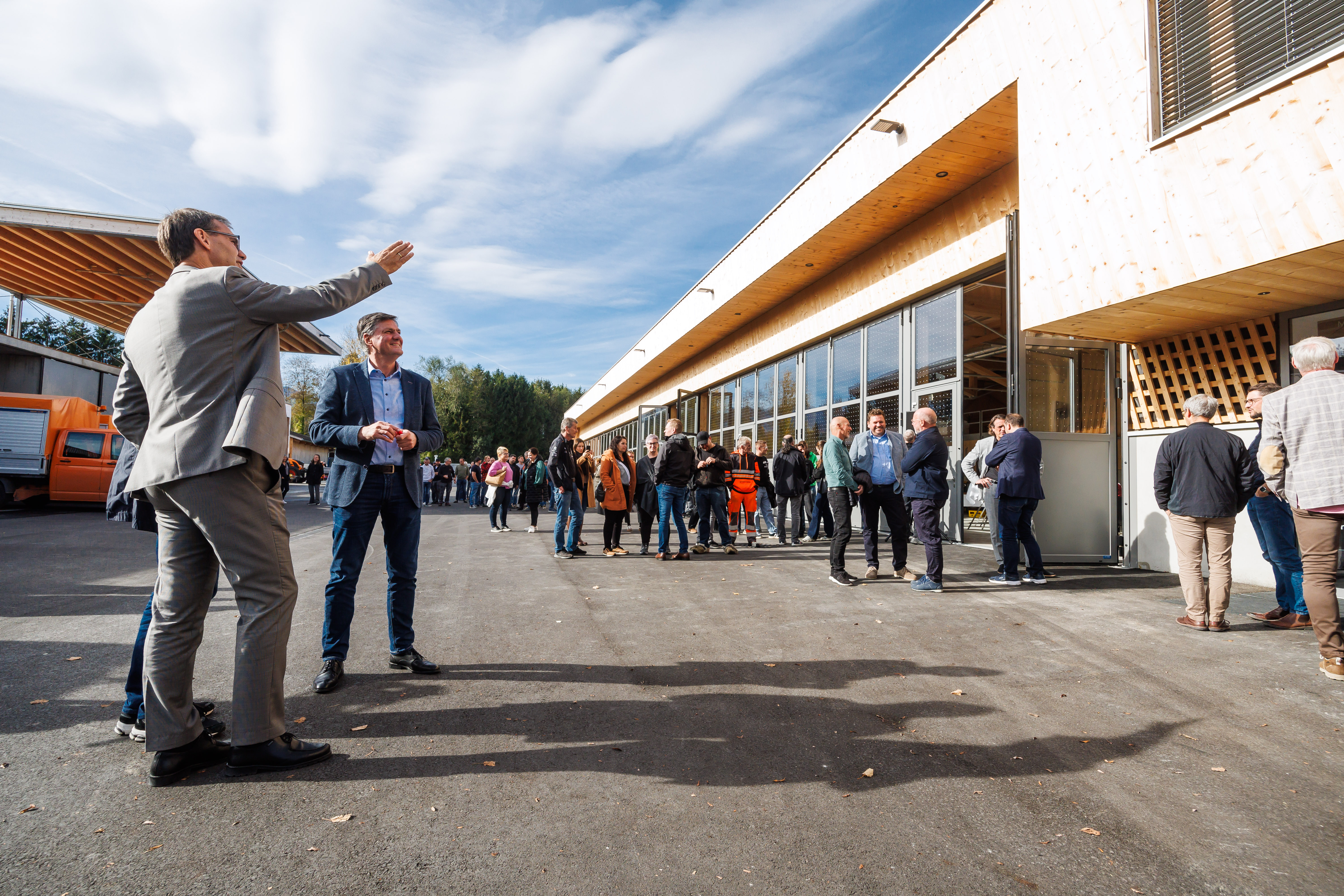 Koblach (VLK) – Mit einer feierlichen Eröffnung wurde heute (21. Oktober) die neue Straßenmeisterei Feldkirch-Nord am Standort Koblach ihrer Bestimmung übergeben. Landeshauptmann Markus Wallner und Landesstatthalter Christof Bitschi würdigten im Rahmen der Feier die herausragende Arbeit der Mitarbeitenden und betonten die Bedeutung moderner Infrastruktur für die Zukunftsfähigkeit der Landesstraßenverwaltung. Gemeinsam wünschten sie den Mitarbeitenden viel Freude am neuen Arbeitsplatz.