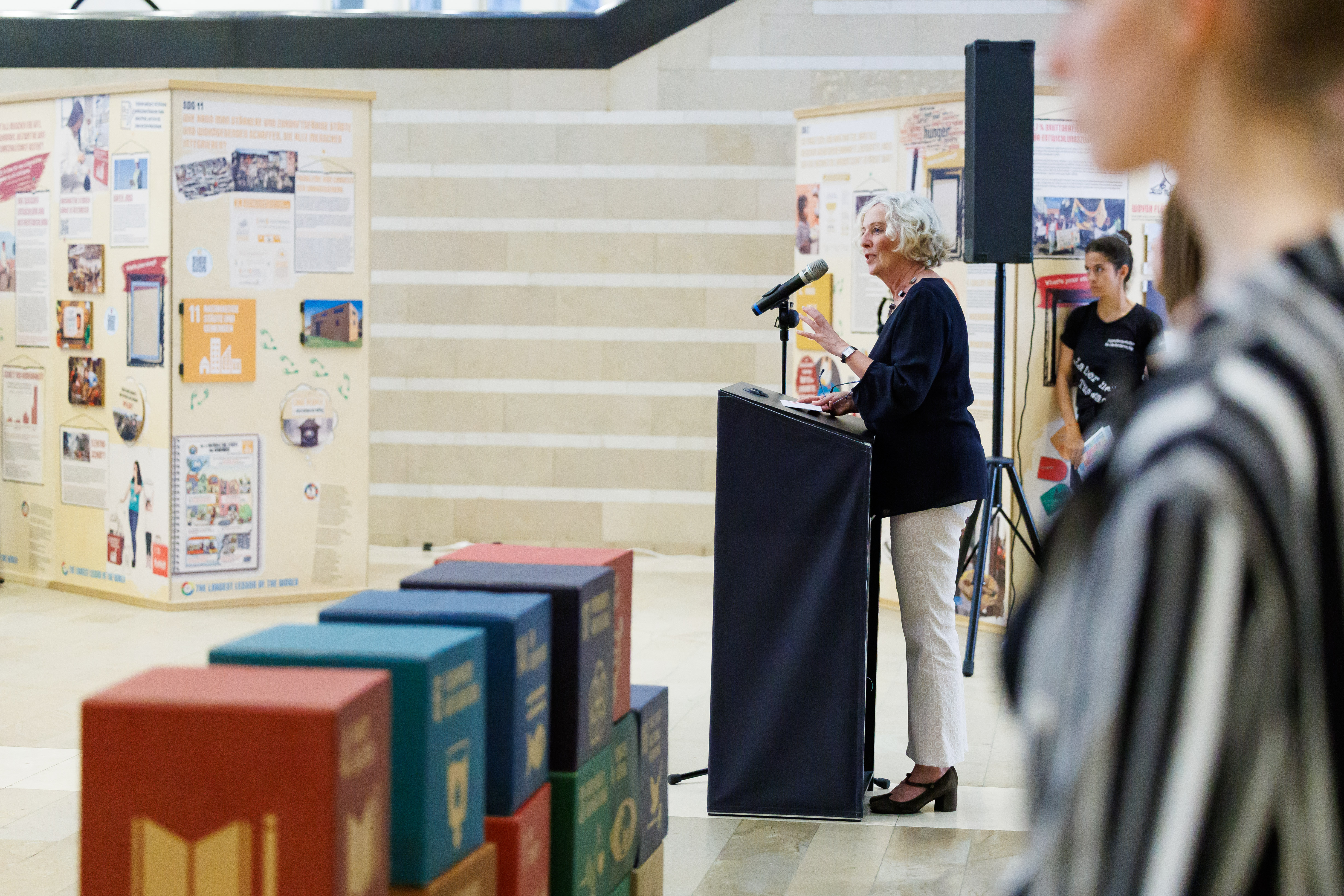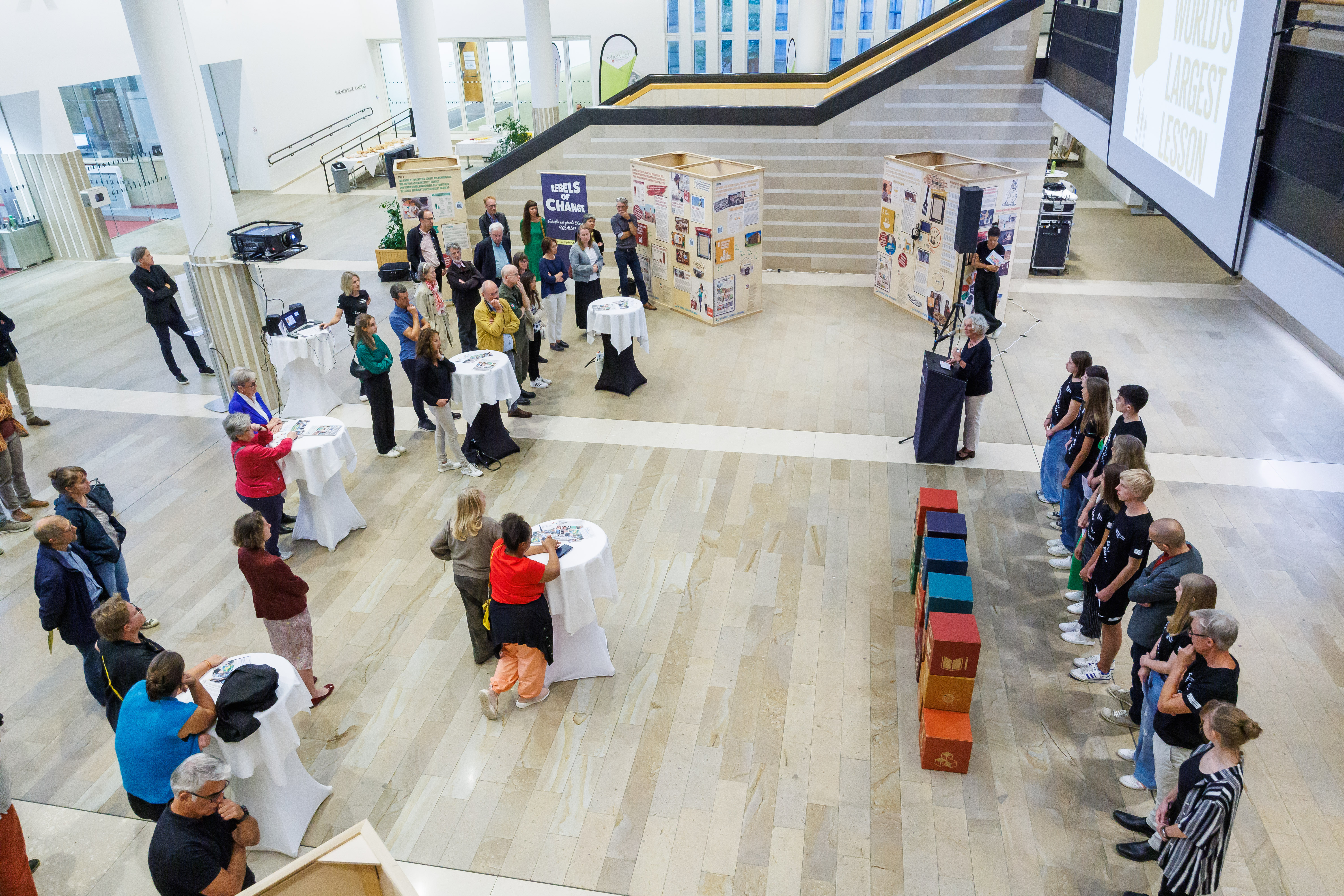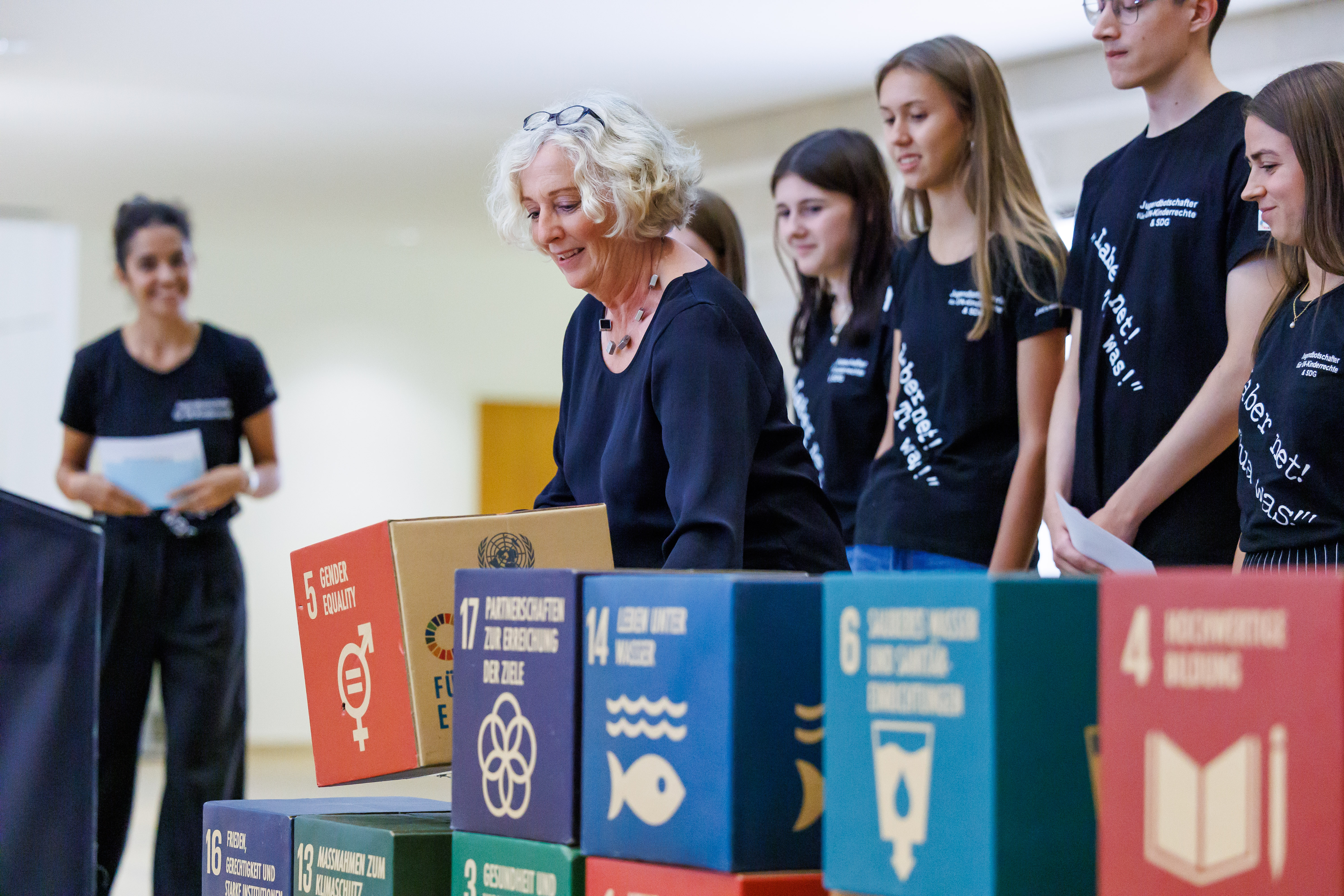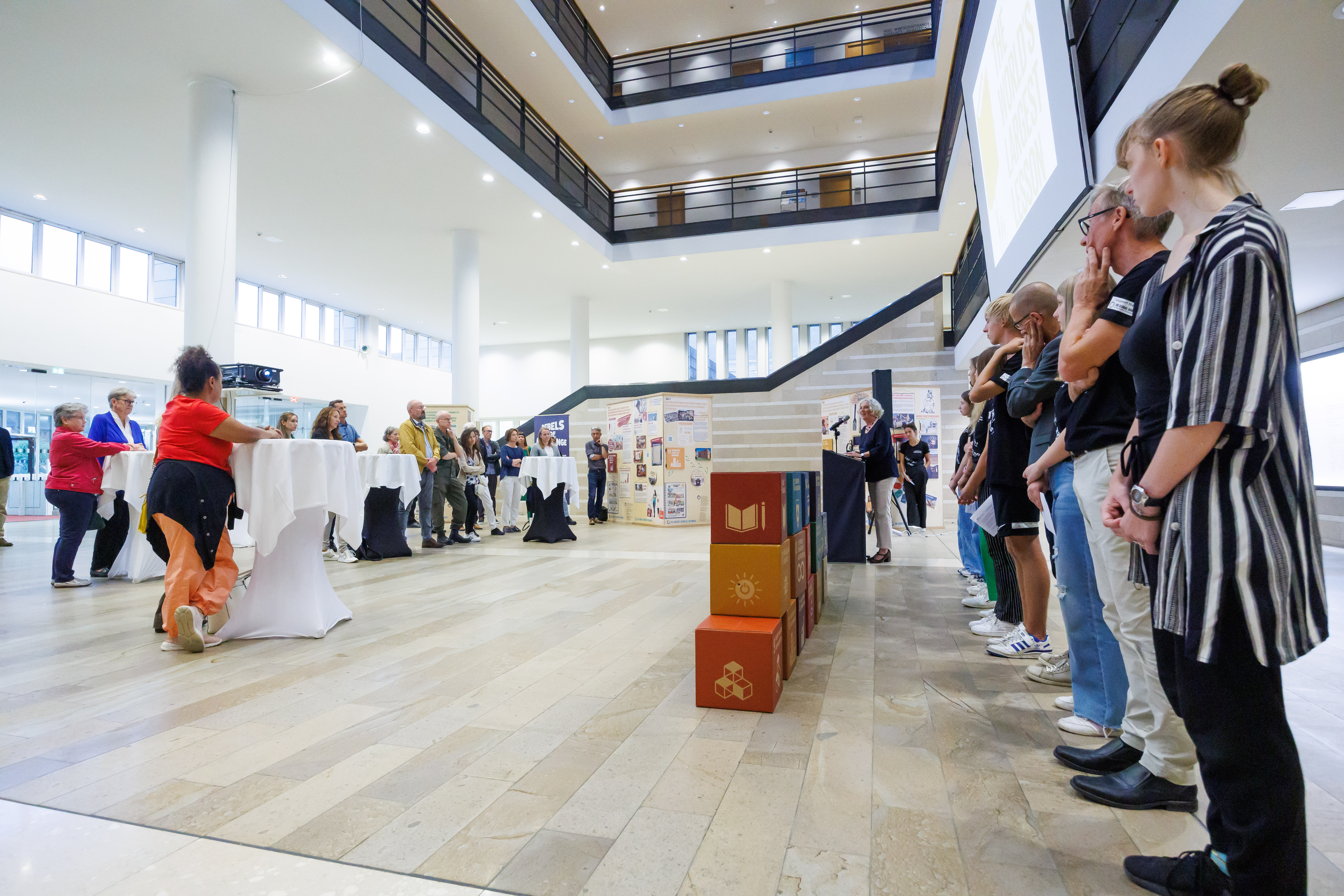 Bregenz (VLK) – Die für Entwicklungszusammenarbeit zuständige Landesrätin Katharina Wiesflecker eröffnete heute (Montag, 18. September 2023) im Landhaus die Ausstellung „The Largest Lesson of the World“, die die globalen Nachhaltigkeitsziele der Vereinten Nationen präsentiert. Anhand der 17 „SDG-Quader“ werden die BesucherInnen anschaulich über die vielfältigen Zusammenhänge und über die unterschiedlichen Möglichkeiten, selbst aktiv zu werden, informiert. „Damit soll das Bewusstsein in der Zivilgesellschaft geschärft werden, wie der Planet Erde auch für die kommenden Generationen lebenswert bleiben kann“, so die Landesrätin bei der Eröffnung. Die Ausstellung ist im Foyer des Landhauses bis zum 29. September zu sehen, der Eintritt ist frei.
