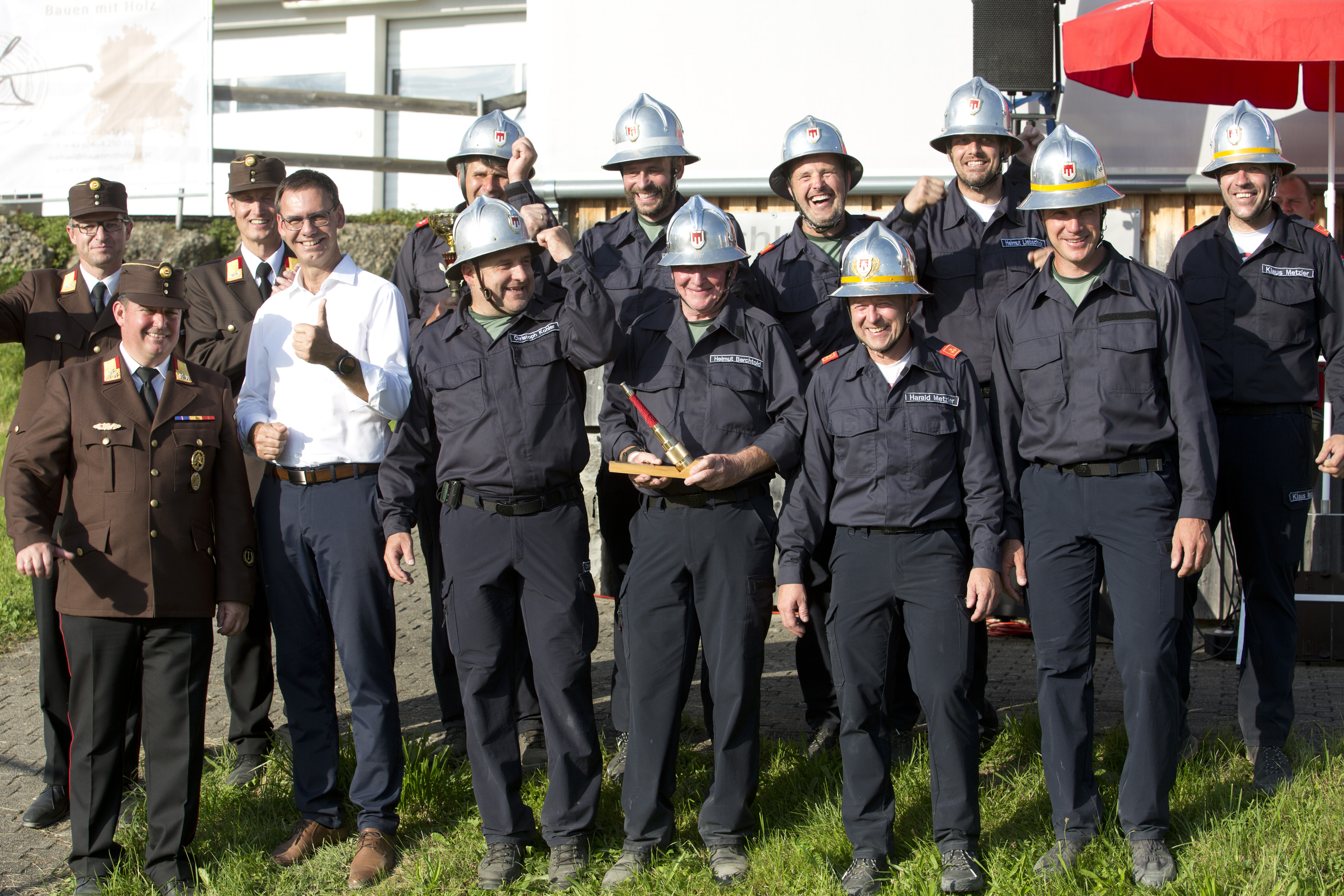 Langenegg (VLK) – Gleich zwei Jubiläen werden an diesem Wochenende (19. bis 21. Juli) in Langenegg gefeiert: 100 Jahre Gemeinde Langenegg und 140 Jahre Ortsfeuerwehr Langenegg. Anlässlich ihres Jubiläums richtet die Ortsfeuerwehr erstmals das Bregenzer Bezirksfeuerwehrfest aus, im Zuge dessen heute (Samstag, 20. Juli) die Nassleistungsbewerbe stattfanden. Landeshauptmann Markus Wallner überreichte der siegreichen Bewerbsgruppe das Goldene Strahlrohr und gratulierte der Ortsfeuerwehr Langenegg um Kommandant Lukas Schwarz zu ihrem 140-jährigen Jubiläum. Im Rahmen des Bezirksfeuerwehrfestes danken Wallner und Sicherheitslandesrat Christian Gantner allen Feuerwehren des Bezirks für ihre wertvolle Sicherheitsarbeit für das Land.