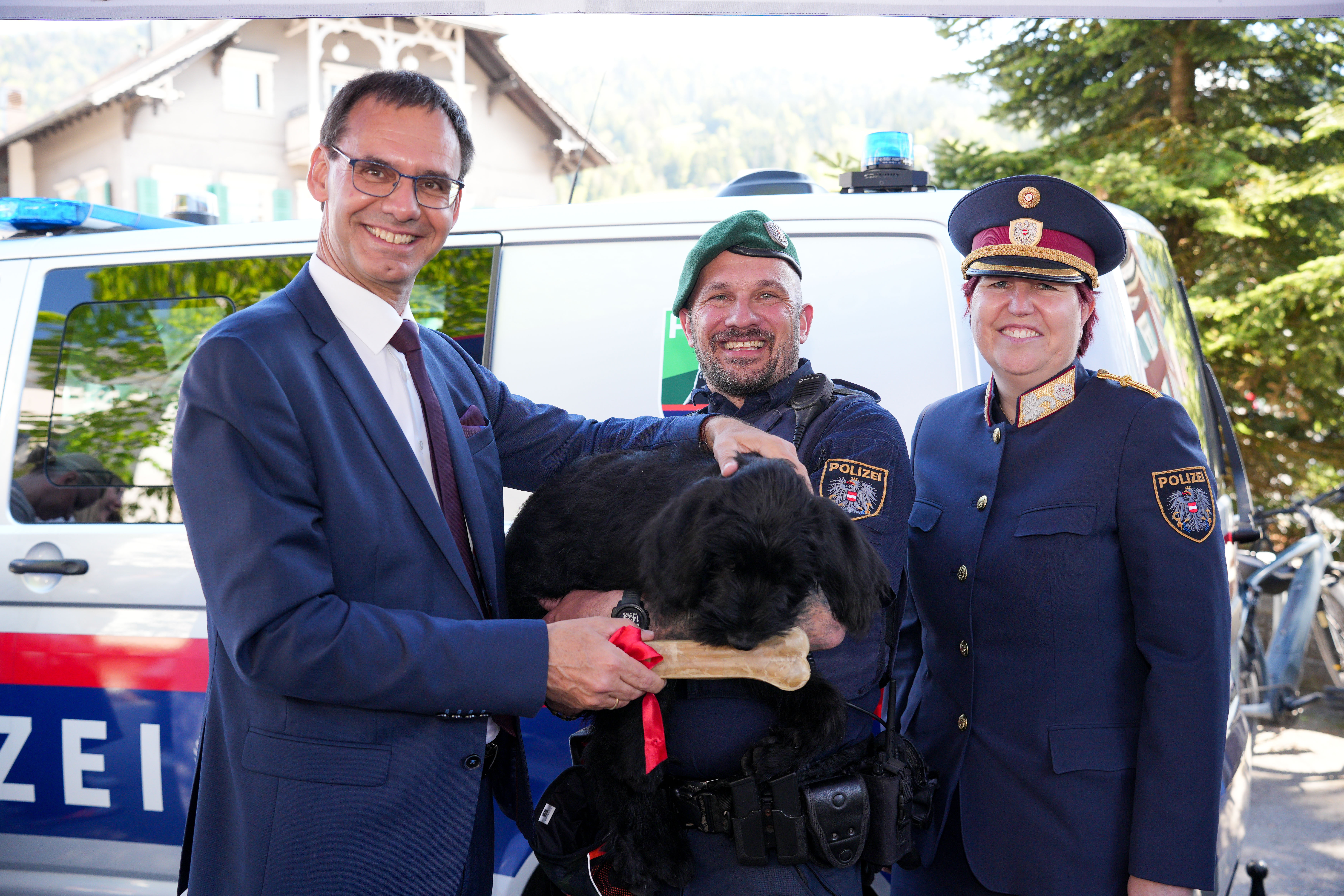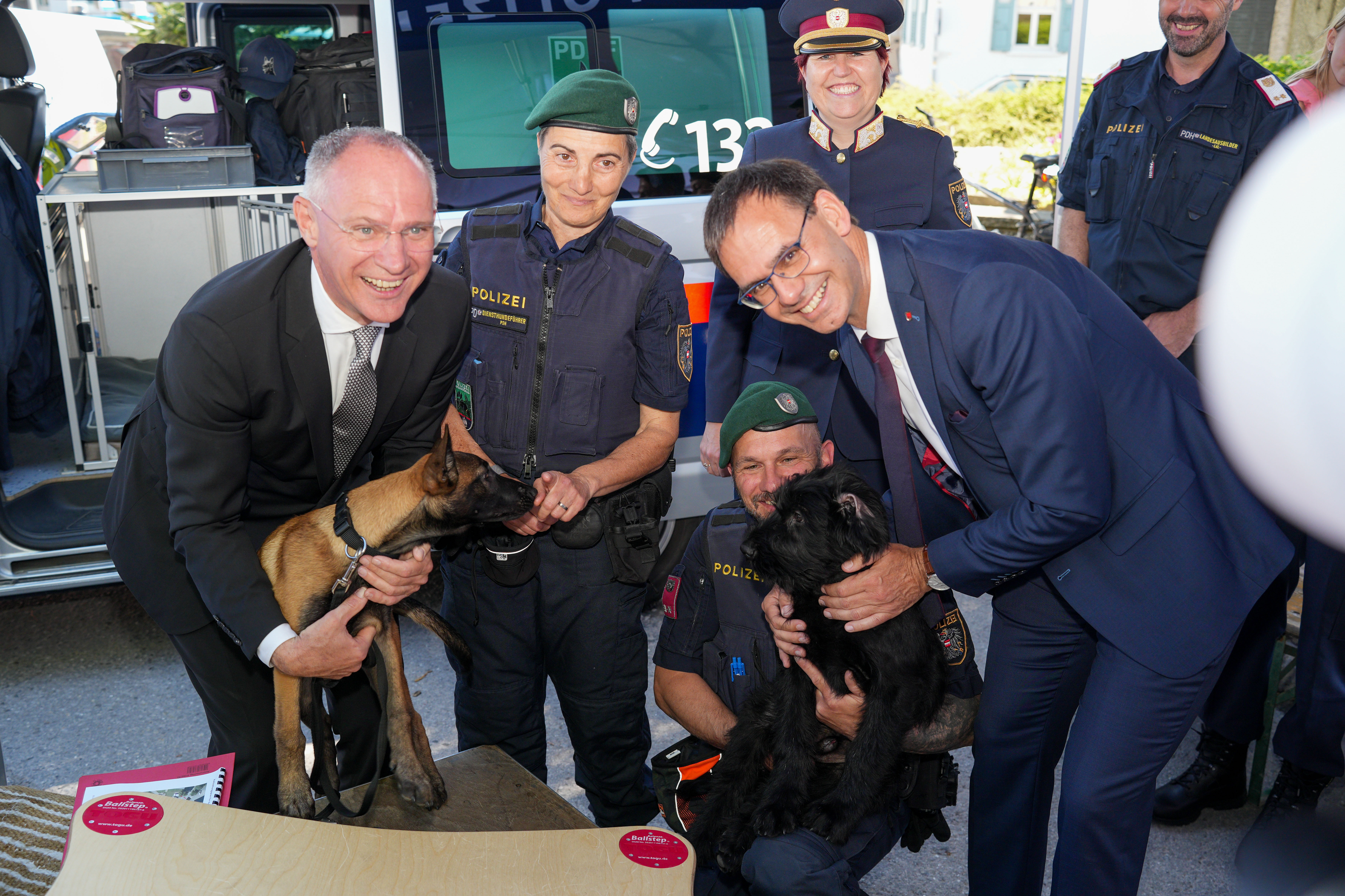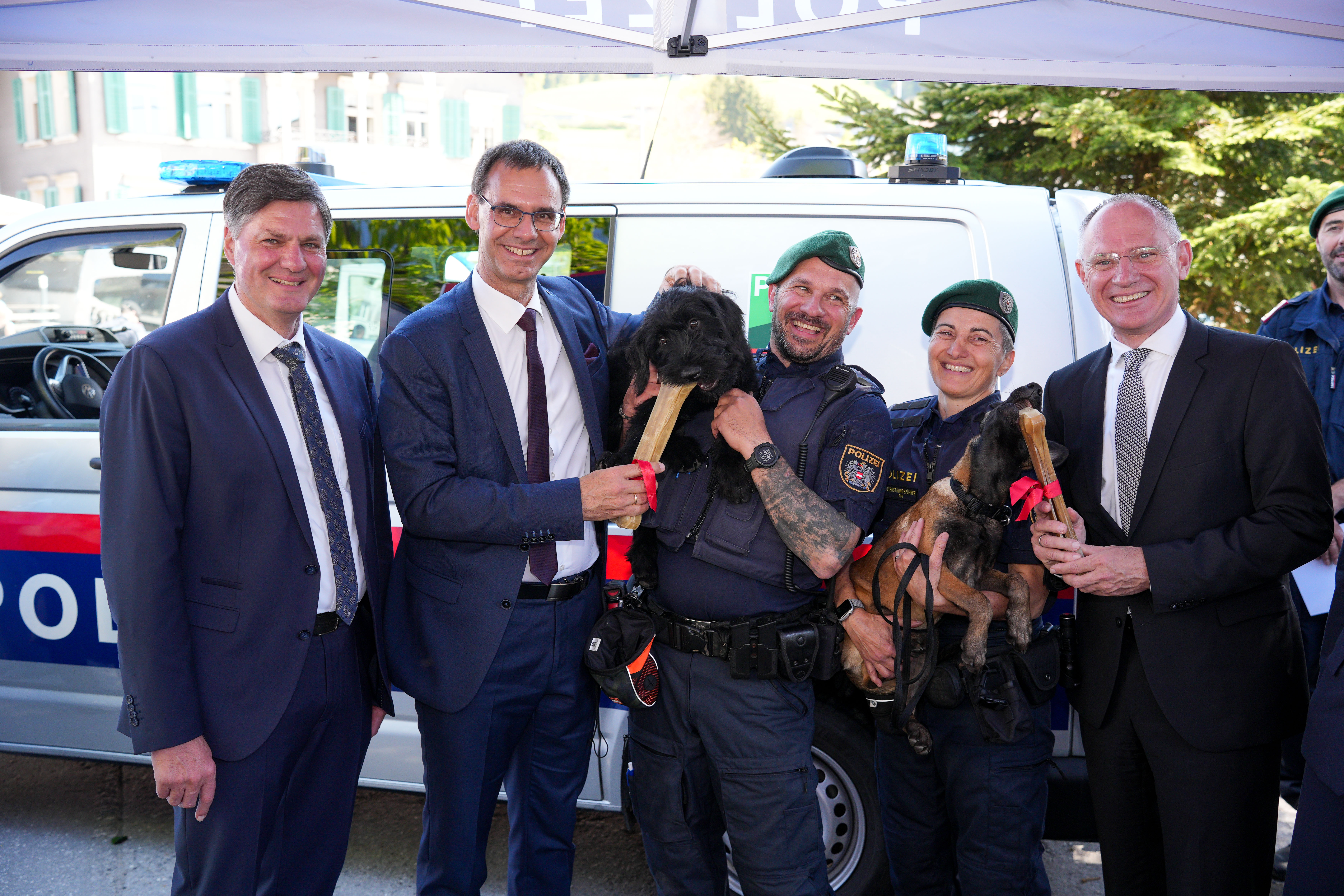 Ein besonderes Highlight der Feierlichkeiten war die Übernahme der Patenschaft für Diensthund-Welpen durch den Landeshauptmann und den Innenminister. Diese symbolische Geste unterstreiche die enge Verbindung zwischen der Landesregierung und der Polizei, freute sich Wallner, der die Patenschaft für einen Riesenschnauzer Rüden übernahm.