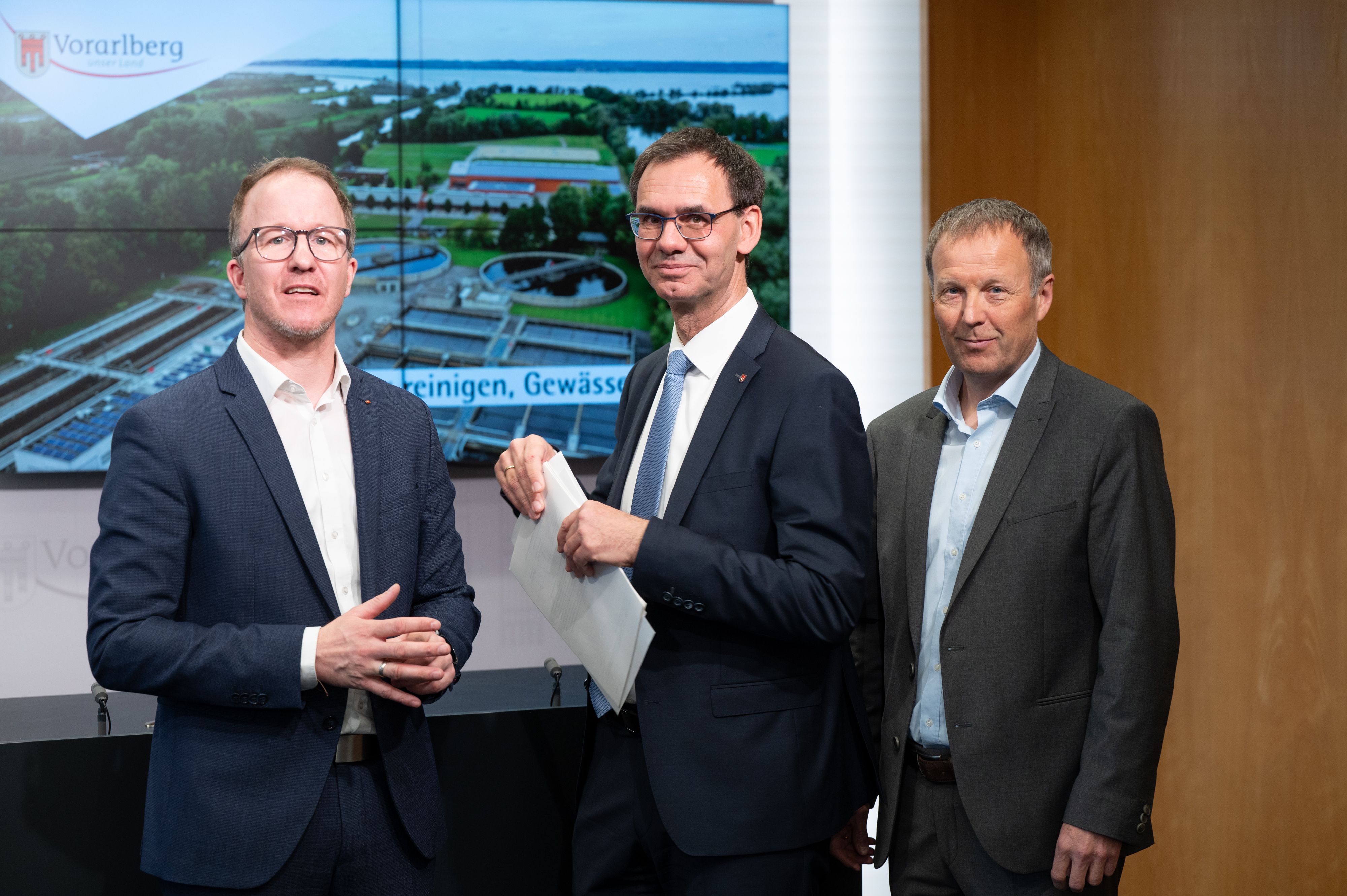 Bregenz (VLK) – Im laufenden Jahr 2024 investieren Vorarlbergs Gemeinden und Wasserverbände in Summe rund 16 Millionen Euro in Abwasserreinigung und Gewässerschutz. Das Land übernimmt zwischen 13 und 20 Prozent der jeweiligen Projektkosten und hat dafür 2,1 Millionen Euro budgetiert, informierte Landeshauptmann Markus Wallner gemeinsam mit Landesrat Christian Gantner und Abteilungsvorstand Thomas Blank im heutigen (Dienstag, 5. März) Pressefoyer. „Wasser ist Vorarlbergs wichtigster Bodenschatz, aber auch die bedrohlichste Naturgefahr“, unterstrich Wallner die vielfältige Bedeutung der Wasserwirtschaft. Einschließlich der Bereiche Wasserversorgung und Hochwasserschutz sowie Projekten der Wildbach- und Lawinenverbauung sind in Vorarlberg heuer 83,5 Millionen Euro veranschlagt, davon 15 Millionen Euro aus Landesmitteln.