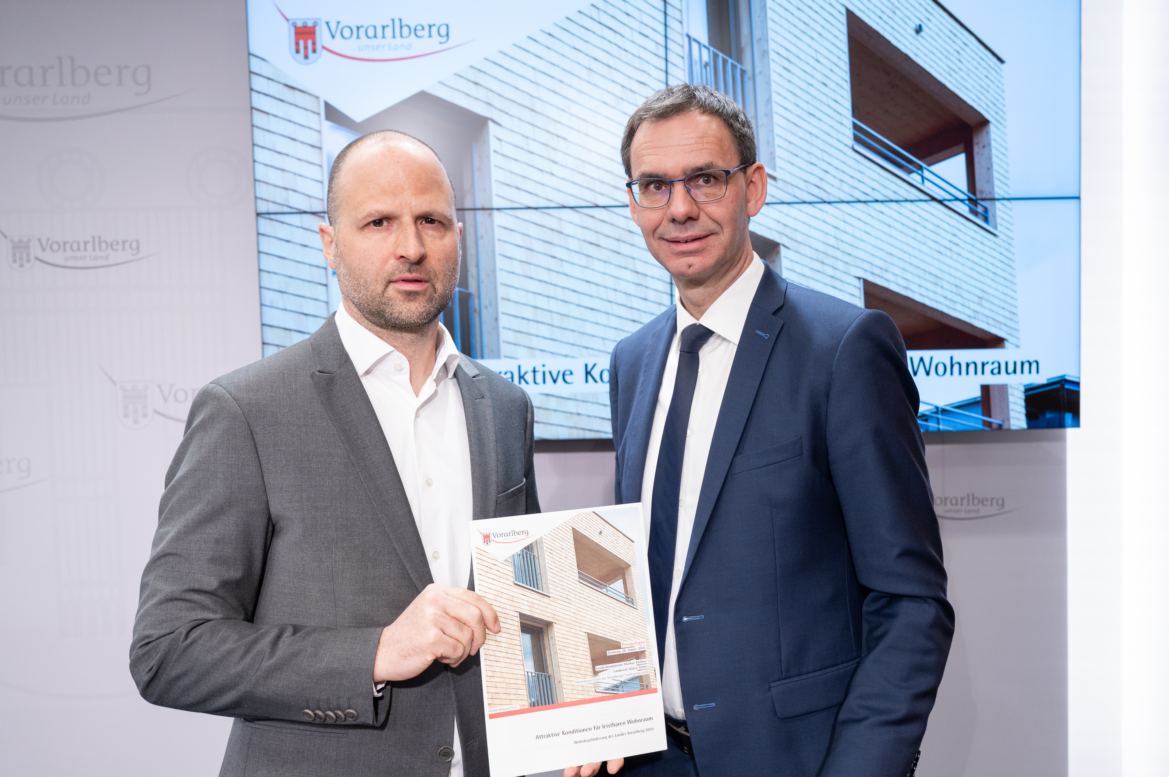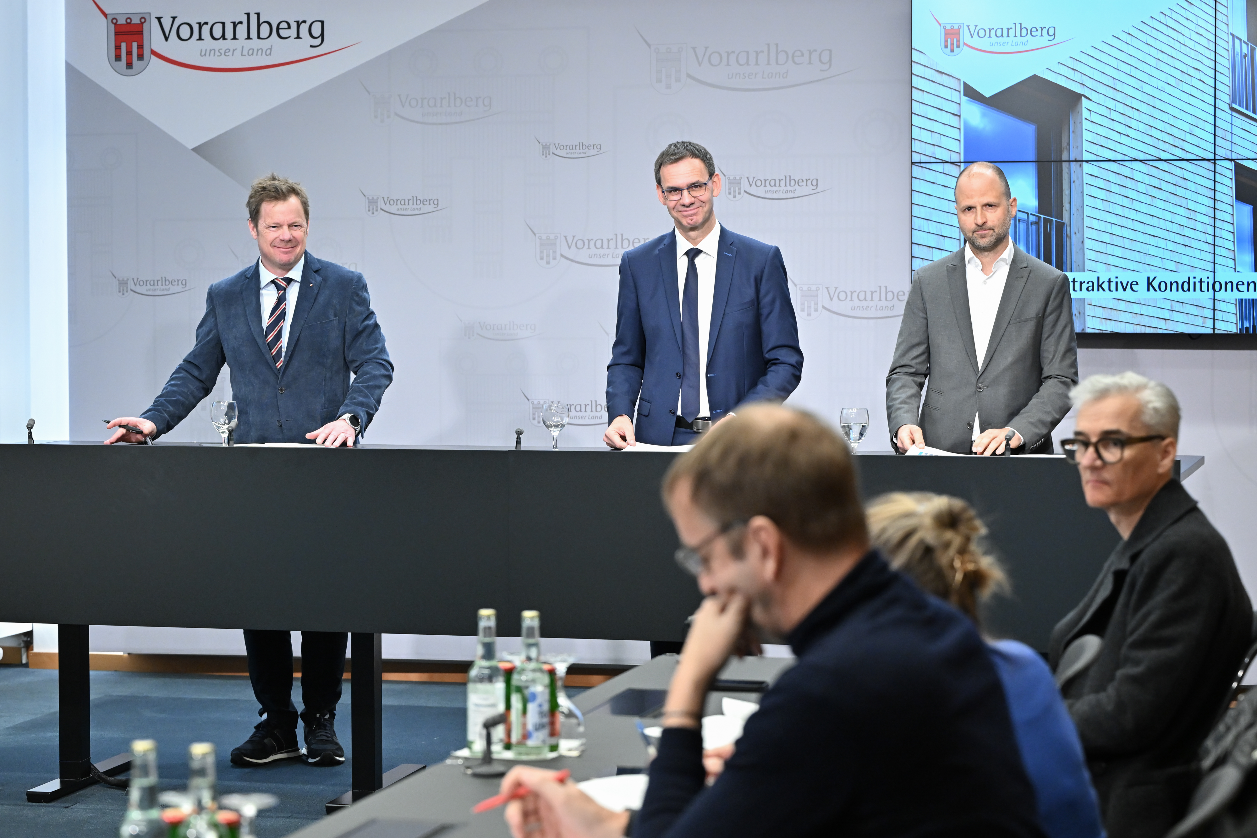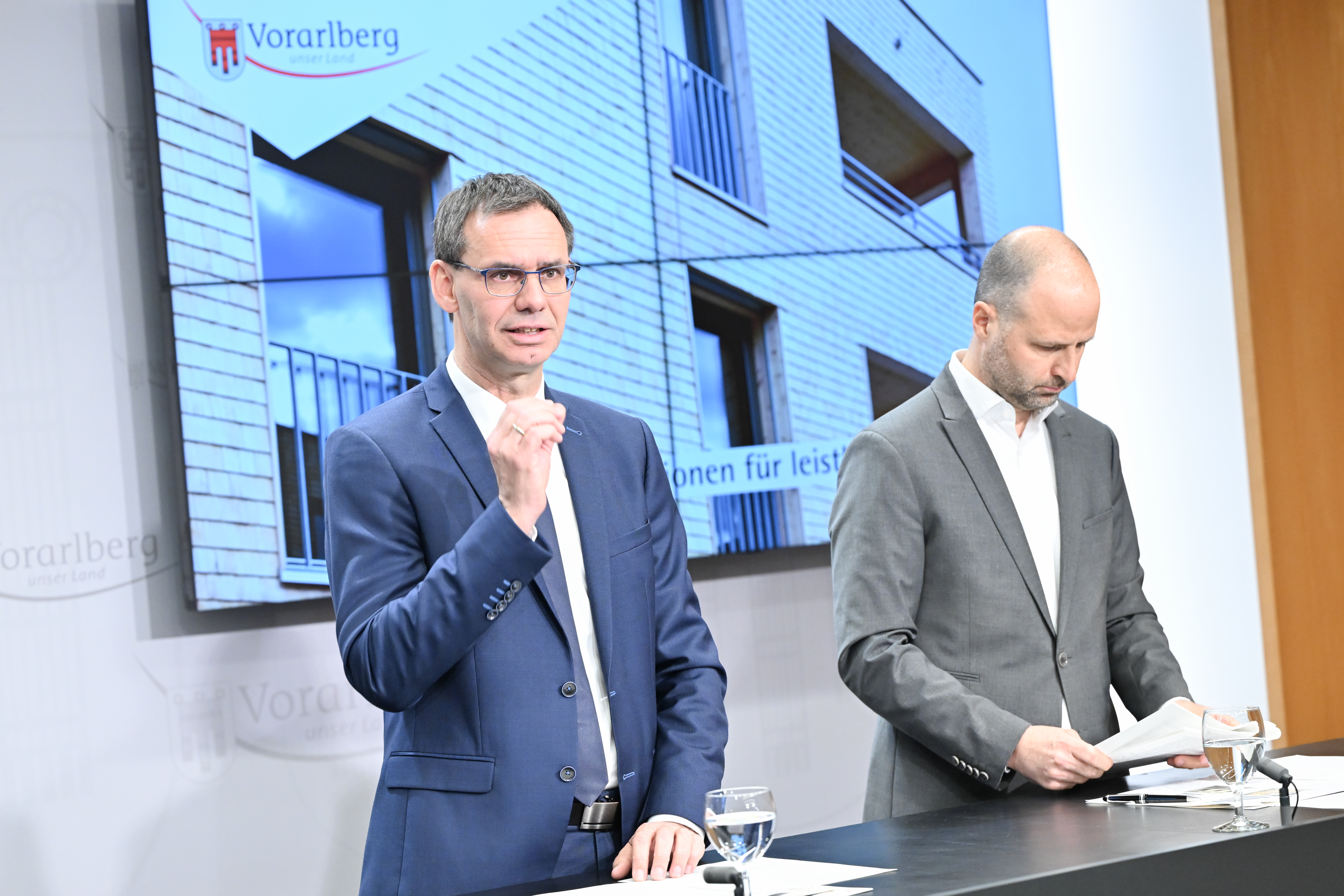 Das Land Vorarlberg bietet auch im Jahr 2025 eine sehr attraktive Wohnbauförderung mit äußerst günstigen Zinskonditionen. Die im letzten Jahr eingeführte erleichterte Vorfinanzierung von geförderten Neubauwohnungen hat den Anreiz zusätzlich erhöht. Die Verbesserungen zeigen Wirkung, die Nachfrage hat sowohl im Neubau- als auch im Sanierungsbereich wieder angezogen. Die Förderrichtlinien werden daher auch 2025/26 weitergeführt, um den Stellenwert der Wohnbauförderung als Lenkungs- und Hilfsinstrument zu festigen, teilen Landeshauptmann Markus Wallner und Landesrat Marco Tittler im Pressefoyer mit. Sie rechnen für heuer mit einem weiteren Anstieg der Förderanträge – dies insbesondere nach dem für Mitte des Jahres angekündigten Wegfall der KIM-Verordnung . Zudem wurde mit den gemeinnützigen Bauvereinigungen ein Bauprogramm für 2025/26 abgestimmt, das eine erhöhte Bauleistung vorsieht, um die Bundesmittel im gemeinnützigen Wohnbau abholen zu können. „Unser Ziel ist und bleibt es, leistbaren Wohnraum zu schaffen und Eigentum zu ermöglichen, um insbesondere jungen Menschen und Familien eine echte Perspektive zu bieten“, sagt Landeshauptmann Wallner.