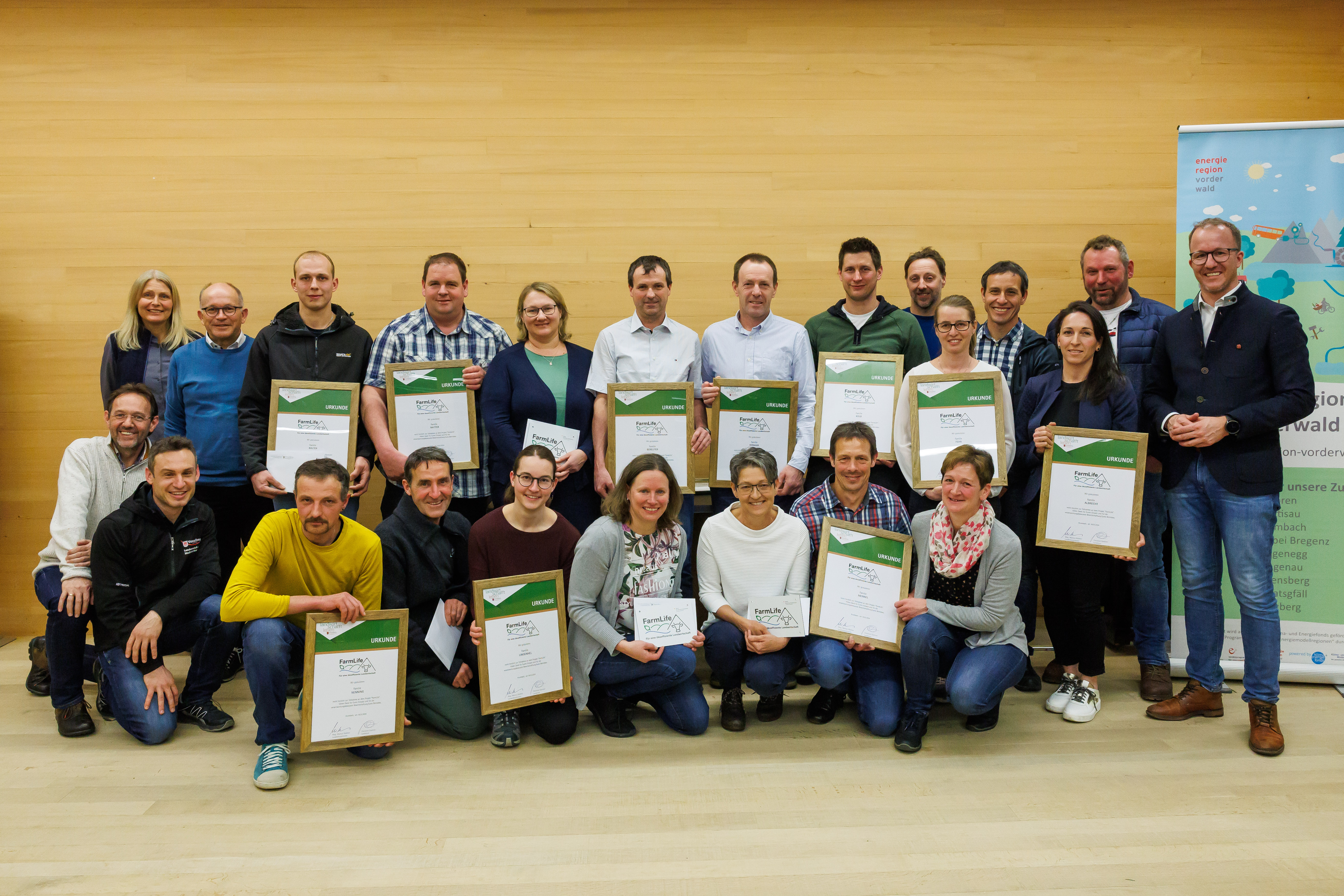 Krumbach (VLK) – Zwölf landwirtschaftliche Betriebe in der Klima- und Energie-Modellregion Vorderwald haben im Rahmen des Projekts „FarmLife“ ihre ökonomischen und ökologischen Daten über eine volle Vegetationsperiode programmtechnisch erfasst und auswerten lassen. „Die Ergebnisse sind wertvoll für den Erhalt unserer nachhaltigen Landwirtschaft und ein Signal an die Gesellschaft für bewussten Lebensmittelkonsum, ganz im Sinne unserer Landwirtschaftsstrategie ‚Landwirt.schafft.Leben‘“, sagte Landesrat Christian Gantner bei der Präsentation und Zertifikatsverleihung am Montag, 18. März, in Krumbach.