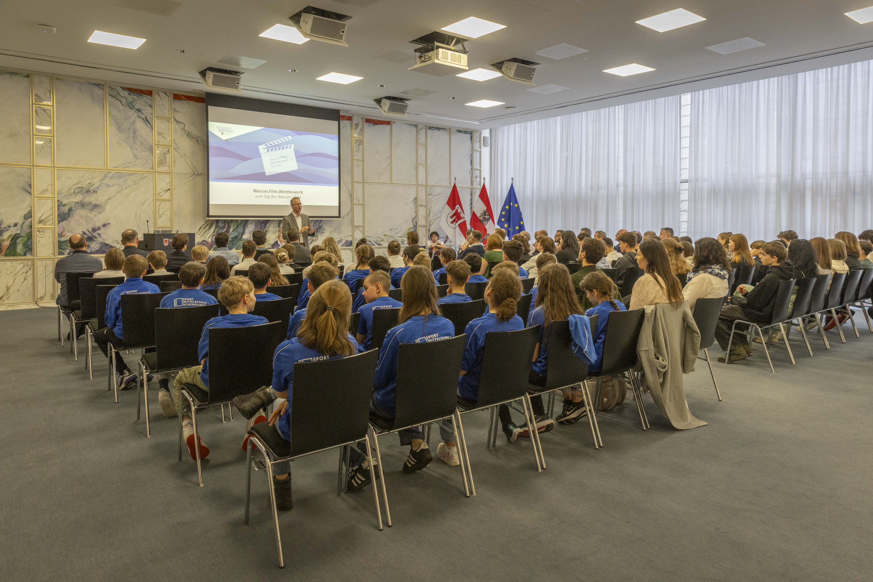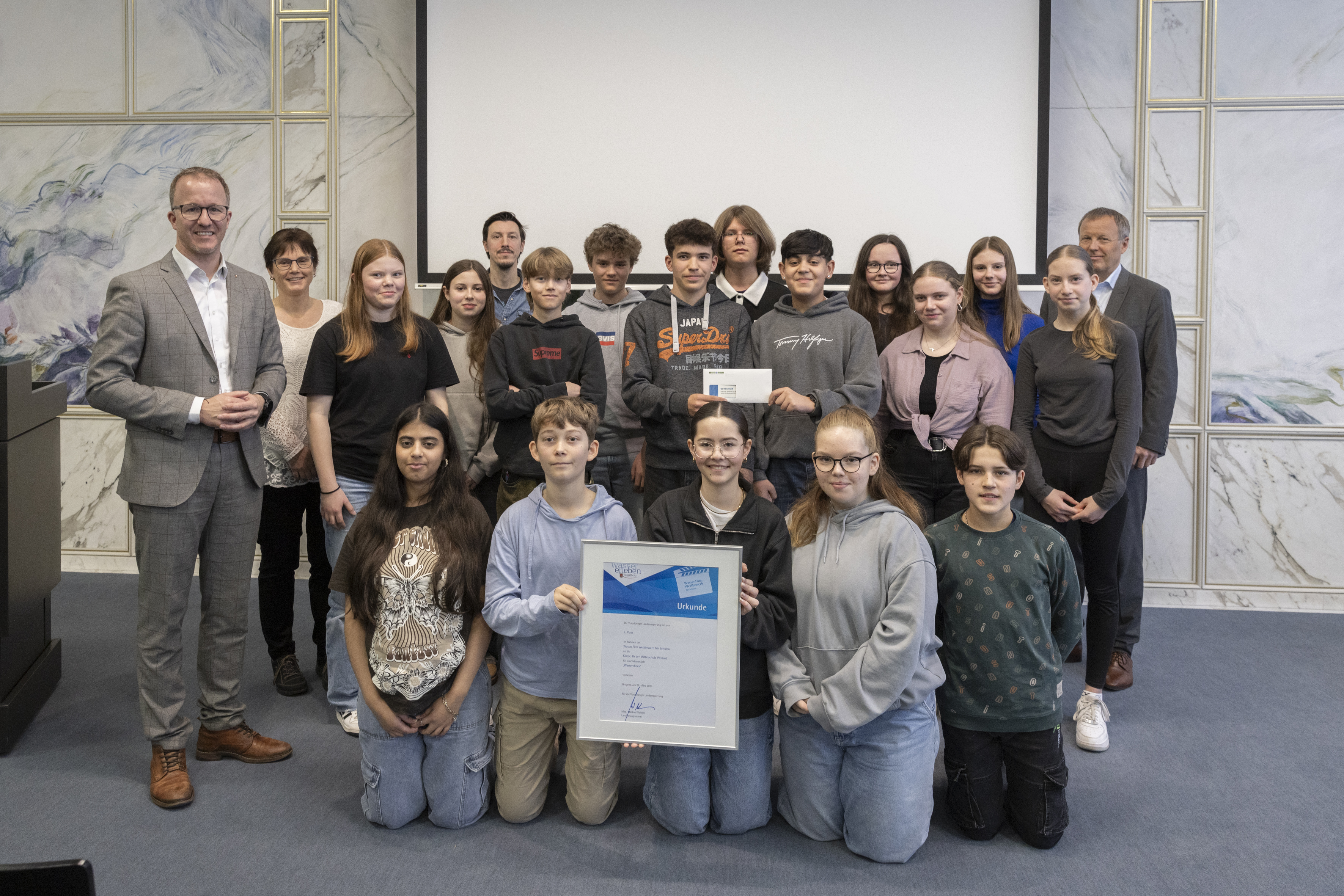 Bregenz (VLK) – „Der internationale Tag des Wassers jedes Jahr am 22. März ist auch für uns im wasserreichen Land Vorarlberg stets Anlass, diese wertvolle Ressource in den Vordergrund zu rücken und zu würdigen. Es ist wichtig, dass wir alle – die ganze Bevölkerung und insbesondere die SchülerInnen – wissen, welchen Schatz wir mit dem Wasser haben, und das richtige Bewusstsein für den guten Umgang mit Wasser haben.“ Das sagte Landesrat Christian Gantner am Vortag des UN-Tages des Wassers bei der Preisverleihung zum Wasser.Film.Wettbewerb für Schulen heute, Donnerstag, im Landhaus. Gantner gratulierte allen SchülerInnen, die kreative Wasser-Videos eingereicht haben und dankte den engagierten Lehrpersonen, die die Projekte betreut haben.
