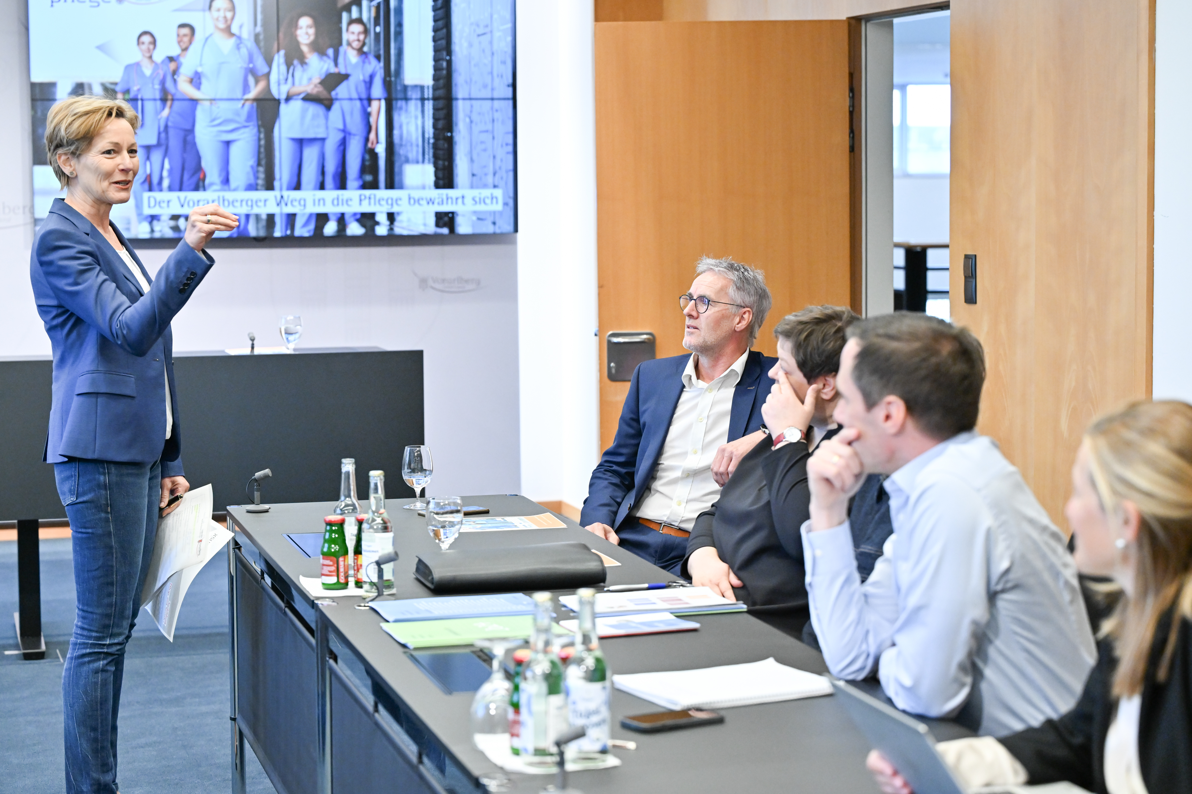 Um den stark zunehmenden Bedarf im Pflegewesen zu bewältigen und die dafür dringend benötigten Arbeitskräfte zu gewinnen, wurde mit dem „Vorarlberger Weg in die Pflege“ ein durchlässiges Ausbildungssystem geschaffen, das allen Interessierten – mit und ohne Matura – den Einstieg in den Pflegeberuf ermöglicht. „Wir haben die Pflegeausbildung in Vorarlberg auf ein breites Fundament gestellt – und das zahlt sich aus“, ziehen Landeshauptmann Markus Wallner und Landesrätin Martina Rüscher im Pressefoyer eine Zwischenbilanz, die durchaus zuversichtlich stimmt. Die in der vergangenen Regierungsperiode aufgesetzten Maßnahmen zur Attraktivierung und Erweiterung des Ausbildungsangebots tragen Früchte: Die Vielfalt der Möglichkeiten fördert das Interesse, erste Trends zeigen einen Anstieg der Ausbildungszahlen.