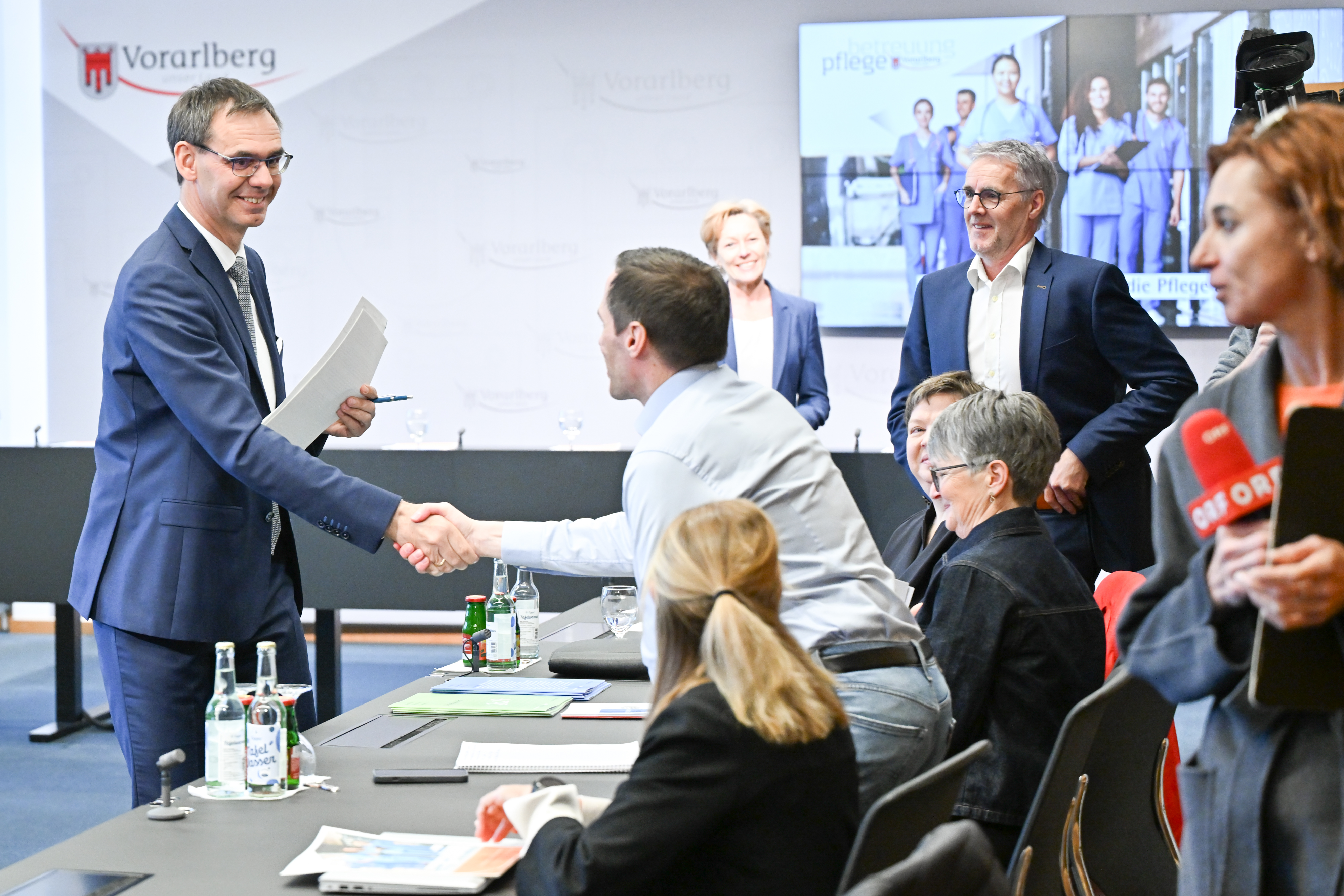Pflegebedürftige Menschen verdienen beste Betreuung. Dafür braucht es menschliche Zuwendung und eine Versorgung durch hervorragend ausgebildete Personen, betont Landeshauptmann Wallner: „Betreuung und Pflege liegen nicht nur in der Verantwortung der Familien, sondern sind auch gesellschaftlicher Auftrag und benötigen Profis. Die zunehmende Zahl älterer Menschen verbunden mit dem Mangel an Fachkräften stellt Vorarlberg dabei vor große Herausforderungen. Das Ziel des Landes ist klar: Wer möchte, soll so lange wie möglich zu Hause betreut werden. Um die Angehörigen zu entlasten, brauchen sie gut organisierte und qualitativ hochwertige Unterstützung im mobilen und stationären Bereich. Wir setzen auf eine zukunftsfähige, vielseitige Ausbildungslandschaft, um langfristig ausreichend qualifiziertes Personal zu gewinnen und zu halten.“