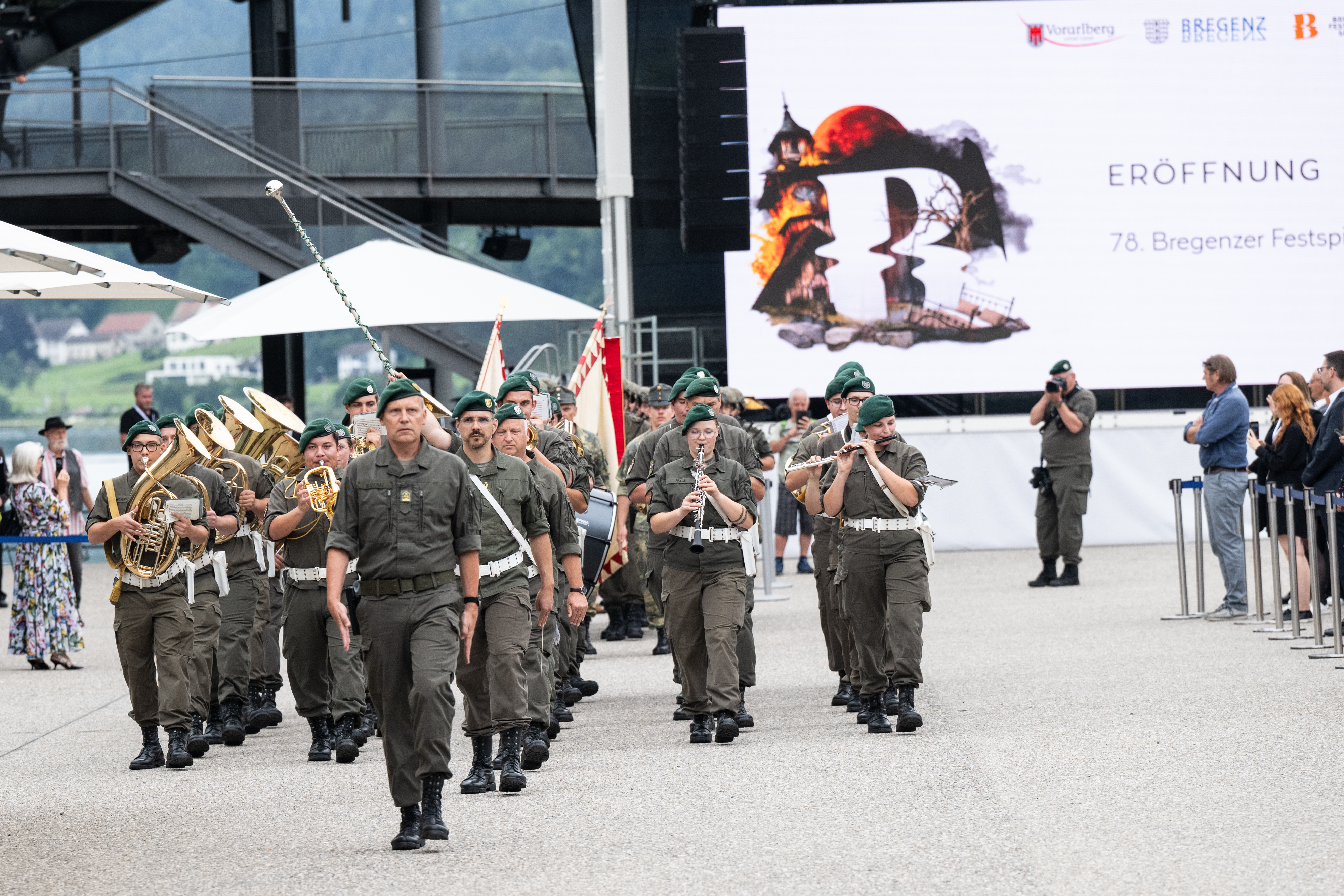 Blumen gab es für Bundespräsident Alexander Van der Bellen mit Gattin Doris Schmidauer, Landeshauptmann Markus Wallner mit Gattin Sonja, den Bregenzer Bürgermeister Michael Ritsch mit Gattin Yvonne und Festspielpräsident Hans-Peter Metzler mit Lebensgefährtin Kathrin Cometto.