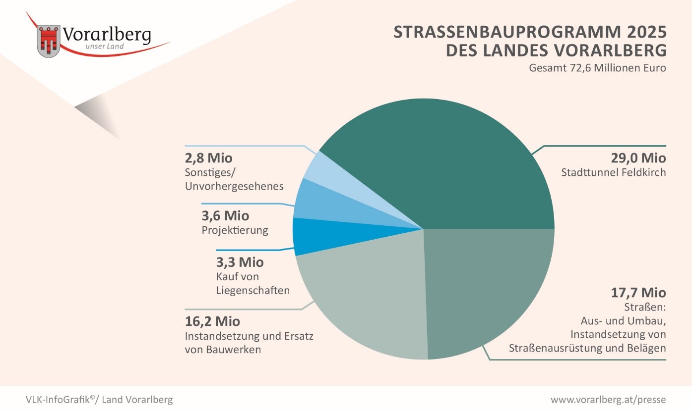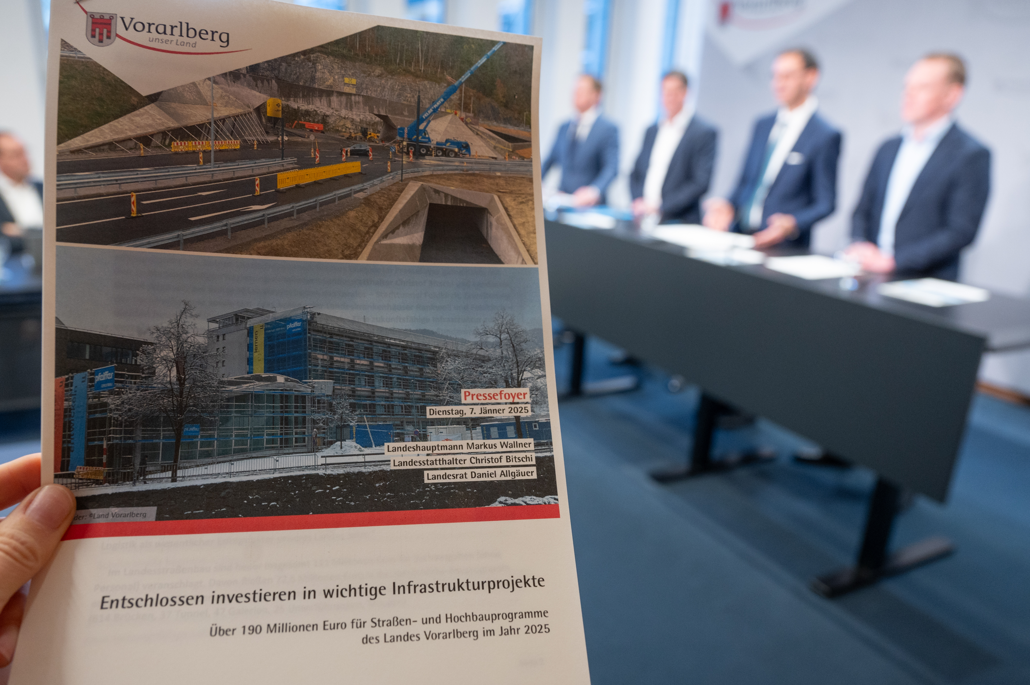 Medieninformation Dienstag, 07.01.2025, 14:12 Entschlossen investieren in wichtige Infrastrukturprojekte Über 190 Millionen Euro für Straßen- und Hochbauprogramme des Landes Vorarlberg im Jahr 2025