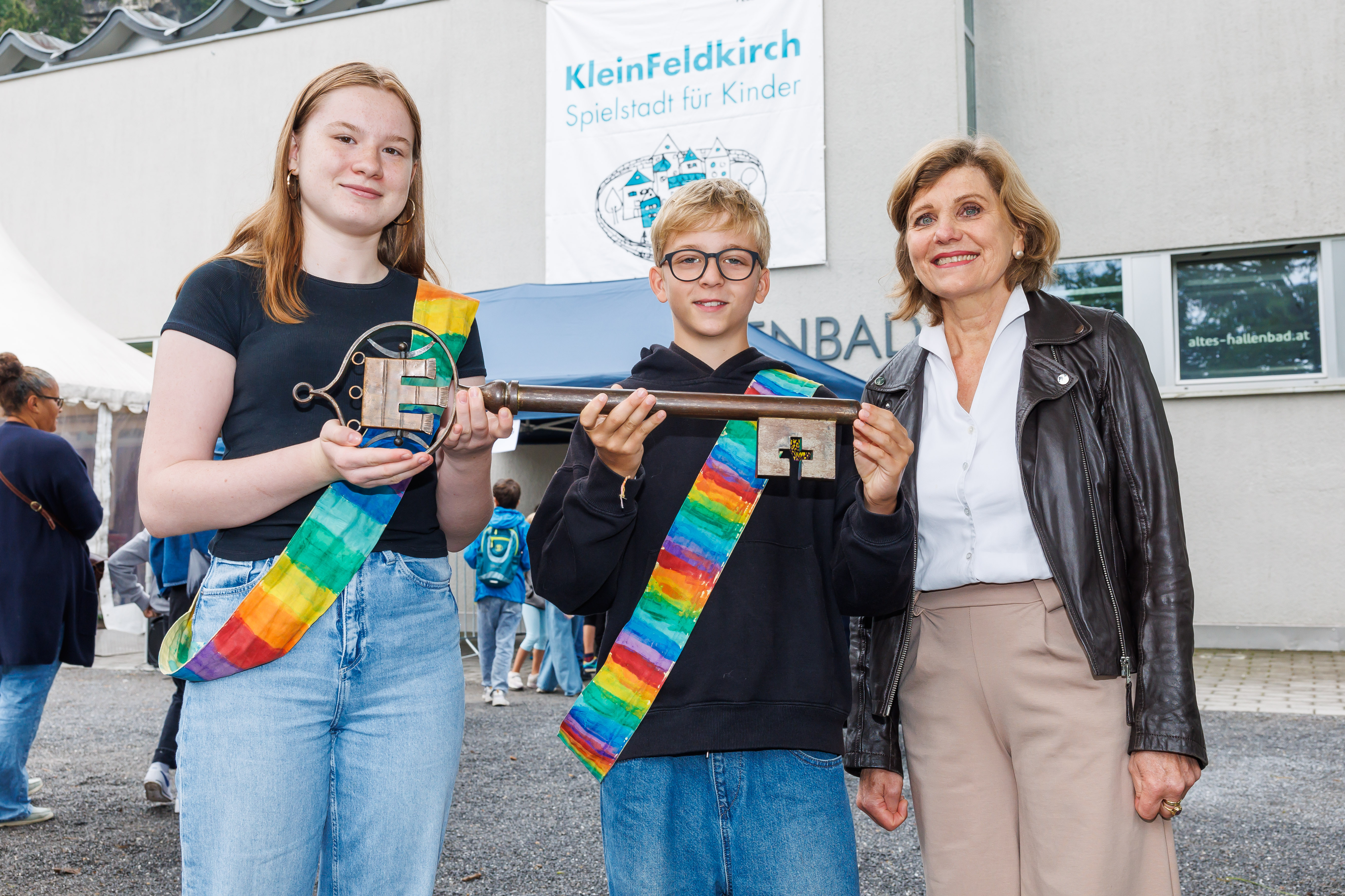 Feldkirch (VLK) – Mit großer Vorfreude öffnete heute (Montag, 19. August) die Kinderstadt „KleinFeldkirch“ im Alten Hallenbad ihre Tore. Bereits zum 15. Mal verwandelt sich das Areal in eine pulsierende Stadt, die speziell für Kinder im Alter von 7 bis 12 Jahren geschaffen wurde. Bis zum 6. September haben die jungen Bürgerinnen und Bürger von Montag bis Freitag, jeweils von 9:00 bis 16:00 Uhr, die Möglichkeit, das Leben in einer selbstverwalteten Stadt zu erleben und zu gestalten. „Die Kinderstadt ist nicht nur ein Ort des spielerischen Lernens, sondern auch ein Symbol für gelebte Gemeinschaft und Inklusion. Kinder aus ganz Vorarlberg kommen hier zusammen, um gemeinsam eine Stadt zu gestalten, in der alle ihren Platz finden“, so Landesstatthalterin Schöbi-Fink.