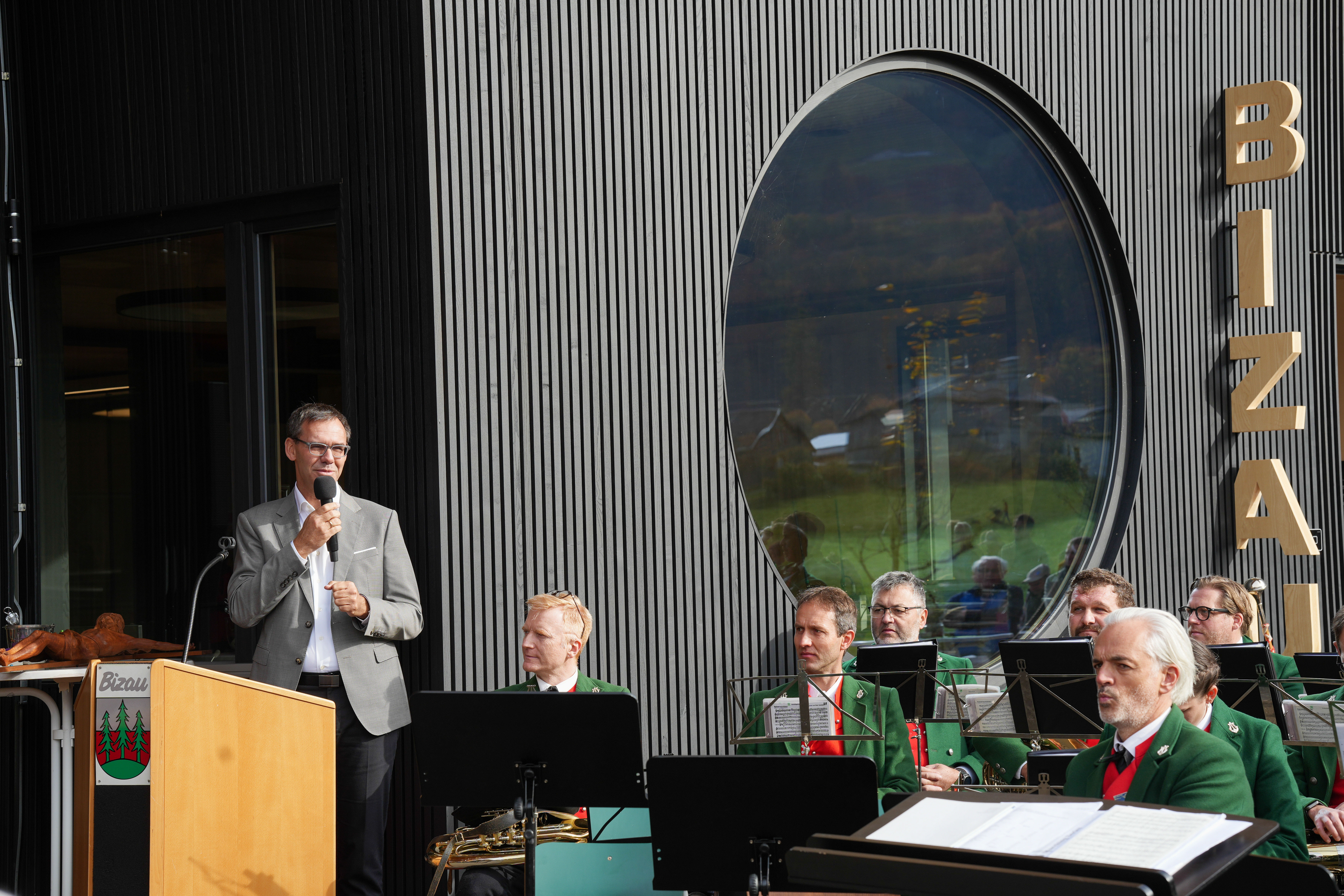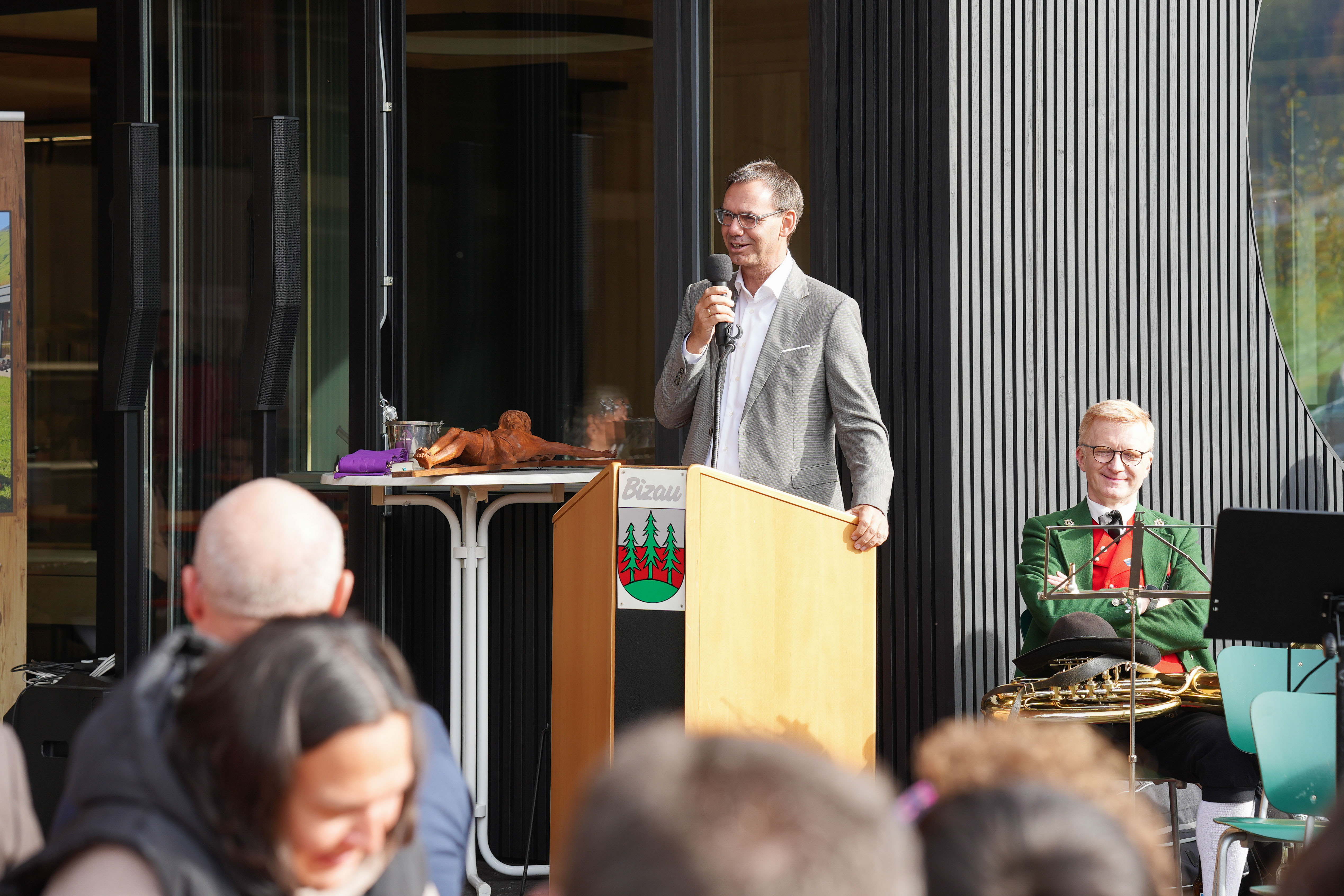 Bizau (VLK) – Mit einem großen Festakt wurde heute (Sonntag, 19. Oktober) das neue Sicherheitszentrum in Bizau feierlich eröffnet und gesegnet. Das neue Gebäude bietet Feuerwehr und Bergrettung unter einem Dach modernste Arbeitsbedingungen und steht zugleich beispielhaft für gelebte Zusammenarbeit und nachhaltige Bauweise. Landeshauptmann Markus Wallner gratulierte der Gemeinde Bizau zu diesem wichtigen Schritt: „Mit dem Neubau setzt die Gemeinde Bizau ein kräftiges Zeichen für die Sicherheit der Bevölkerung. Moderne Infrastruktur ist die Voraussetzung, damit unsere Einsatzorganisationen ihren unverzichtbaren Beitrag auch künftig auf hohem Niveau leisten können.“