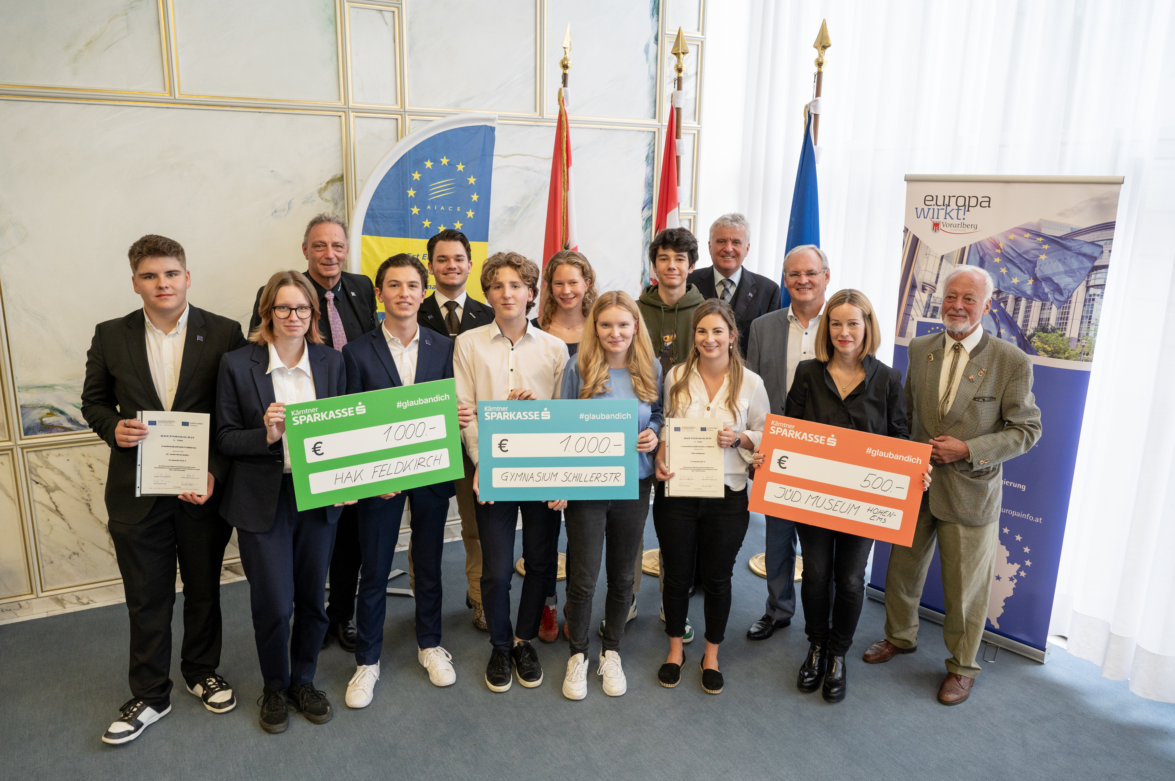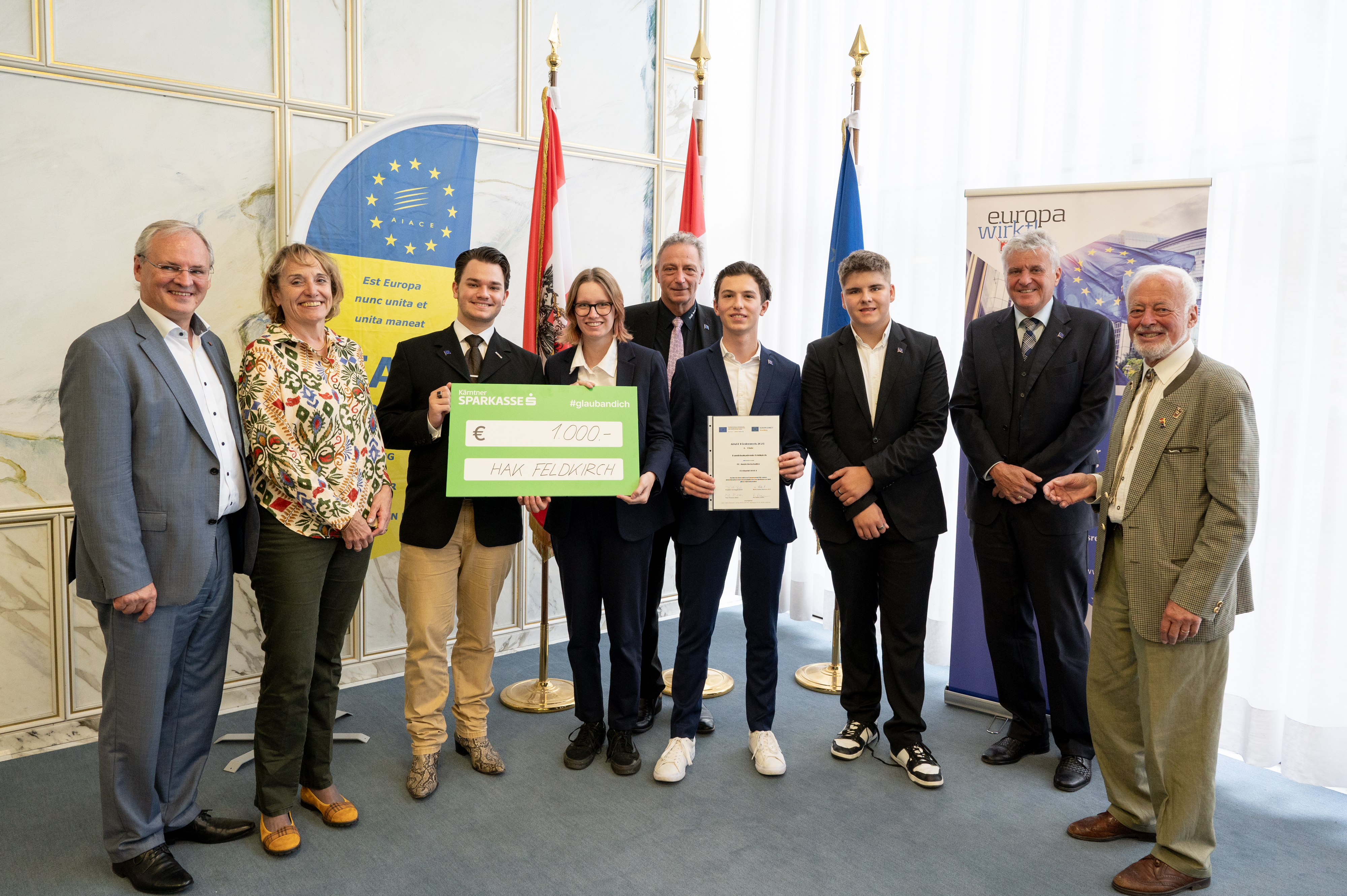 1. Preis ex aequo Europaklasse am Gymnasium Schillerstraße und EU-Juniorbotschafter an der HAK Feldkirch