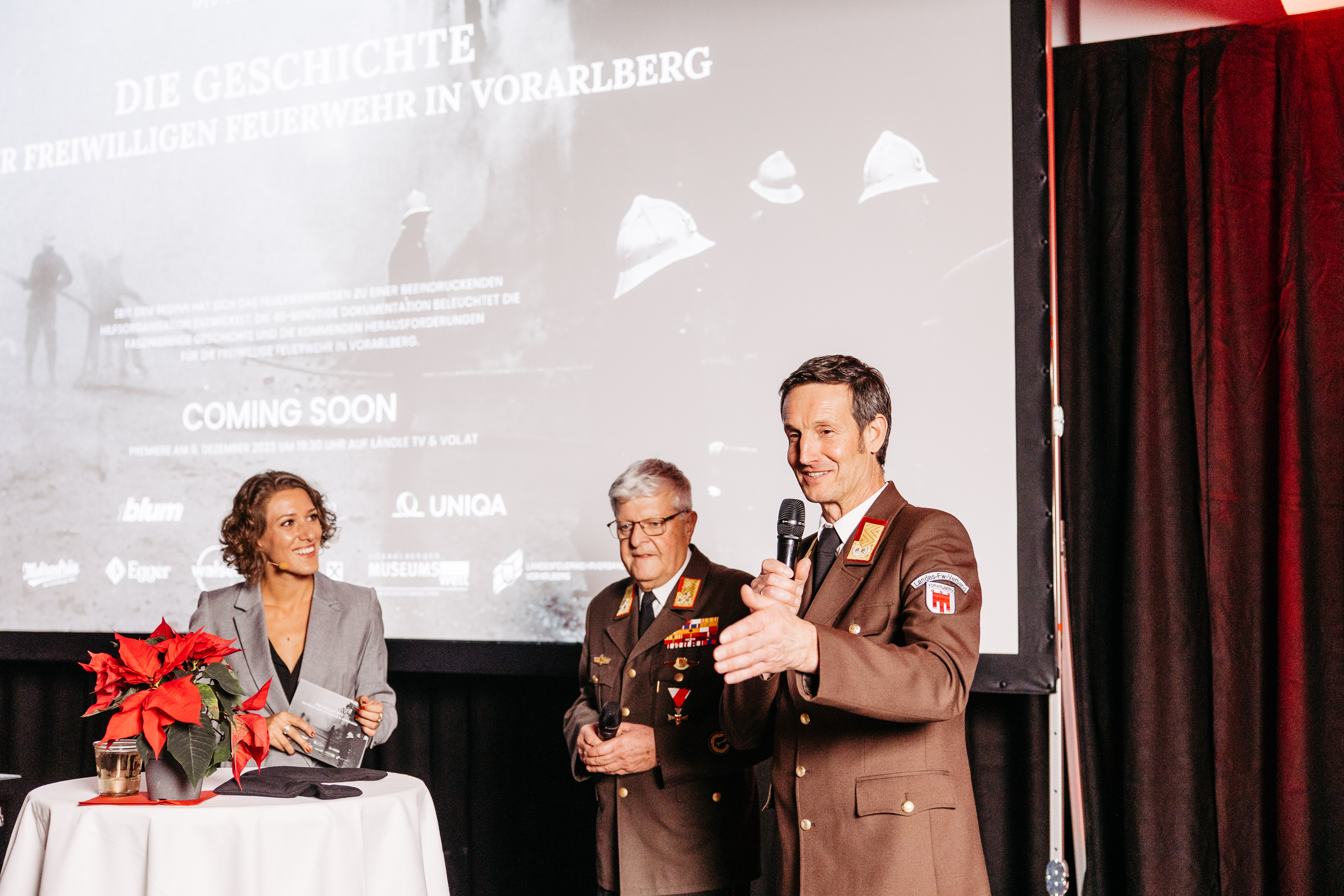 Die Filmpremiere fand am Donnerstagabend vor einem Publikum an interessierten ZuschauerInnen statt, darunter Landtagspräsident Harald Sonderegger und zahlreiche VertreterInnen der Feuerwehren. Veranstaltungsort war passenderweise die Vorarlberger Museumswelt in Frastanz, in der auch das Feuerwehrmuseum untergebracht ist. Das Museum war neben Archiven, dem Landesfeuerwehrverband und einzelnen Wehren zentraler Ausgangspunkt für die umfangreichen Recherchen im Rahmen der filmischen Dokumentation.