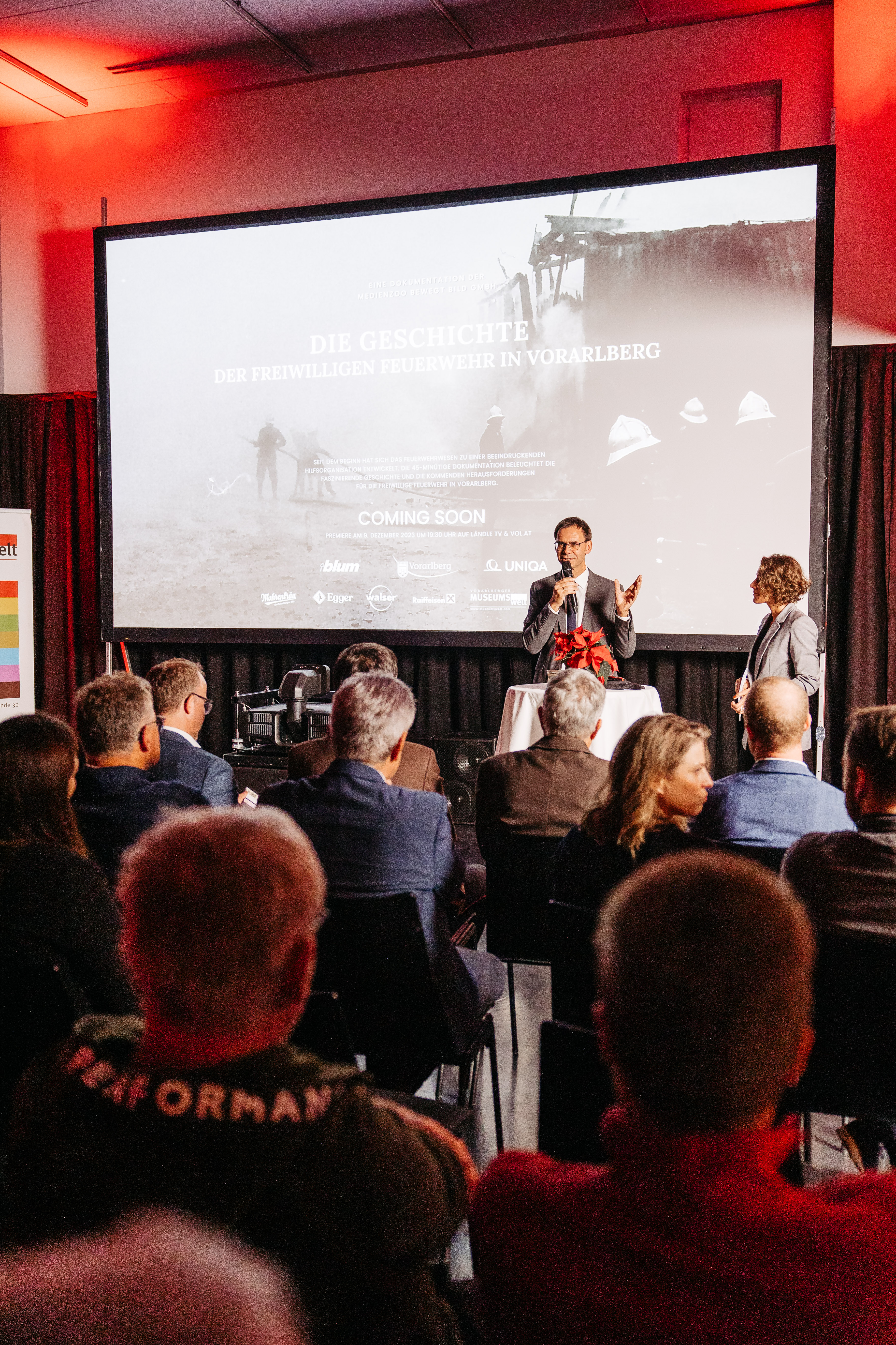 Frastanz (VLK) – Die Anfänge der Feuerwehr in Vorarlberg gehen auf das Jahr 1861 zurück, als in Bregenz die erste Wehr gegründet wurde. „Von Beginn an sind unsere Feuerwehren untrennbar mit dem Ehrenamt verbunden – einem Ehrenamt, das Leben rettet“, betonten Landeshauptmann Markus Wallner und Sicherheitslandesrat Christian Gantner heute, 23. November, bei der Premiere des Dokumentarfilms über die Feuerwehrgeschichte Vorarlbergs. Der Film unter der Regie von Mathias Kasseroler, Medienzoo GmbH, zeichnet die 160-jährige Erfolgsgeschichte der freiwilligen Feuerwehr in Vorarlberg nach und beleuchtet die Meilensteine und Herausforderungen dieser Entwicklung.