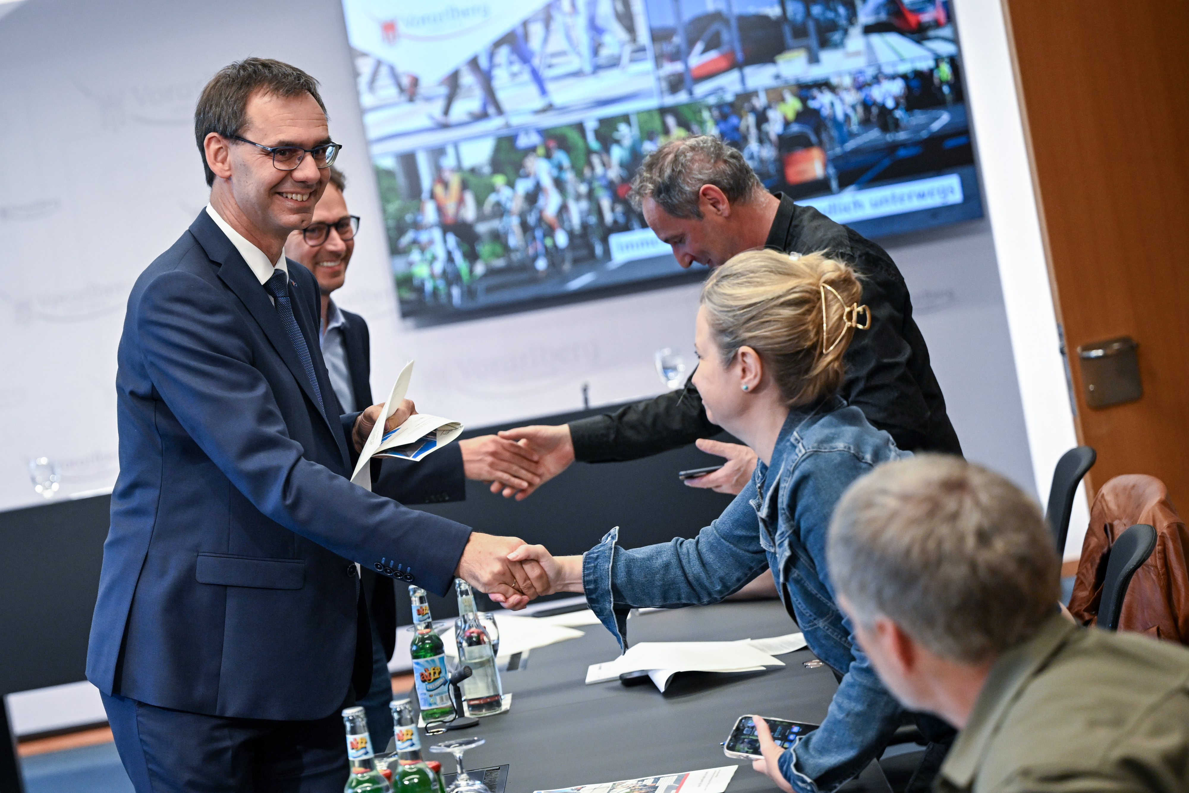 Landesrat Zadra sprach von einem „erfreulichen Zeugnistag für die Vorarlberger Mobilitätspolitik“ und von einem „großen Schritt in Richtung Mobilitätswende“. Auch er hob die beachtliche Steigerung beim Fahrrad – innerhalb von sechs Jahren um sechs Prozentpunkte auf 21,9 Prozent aller Wege – hervor: „Unser Ziel, den Radverkehrsanteil bis 2030 auf 21 Prozent zu bringen, haben einige als zu ehrgeizig gesehen. Nun haben wir es Jahre früher schon erreichen können.“ Es gebe mittlerweile eine regelrechte Radkultur im Land, die von vielen gelebt und praktiziert wird. „Vorarlberg ist vorradelnd“, so Zadra.
