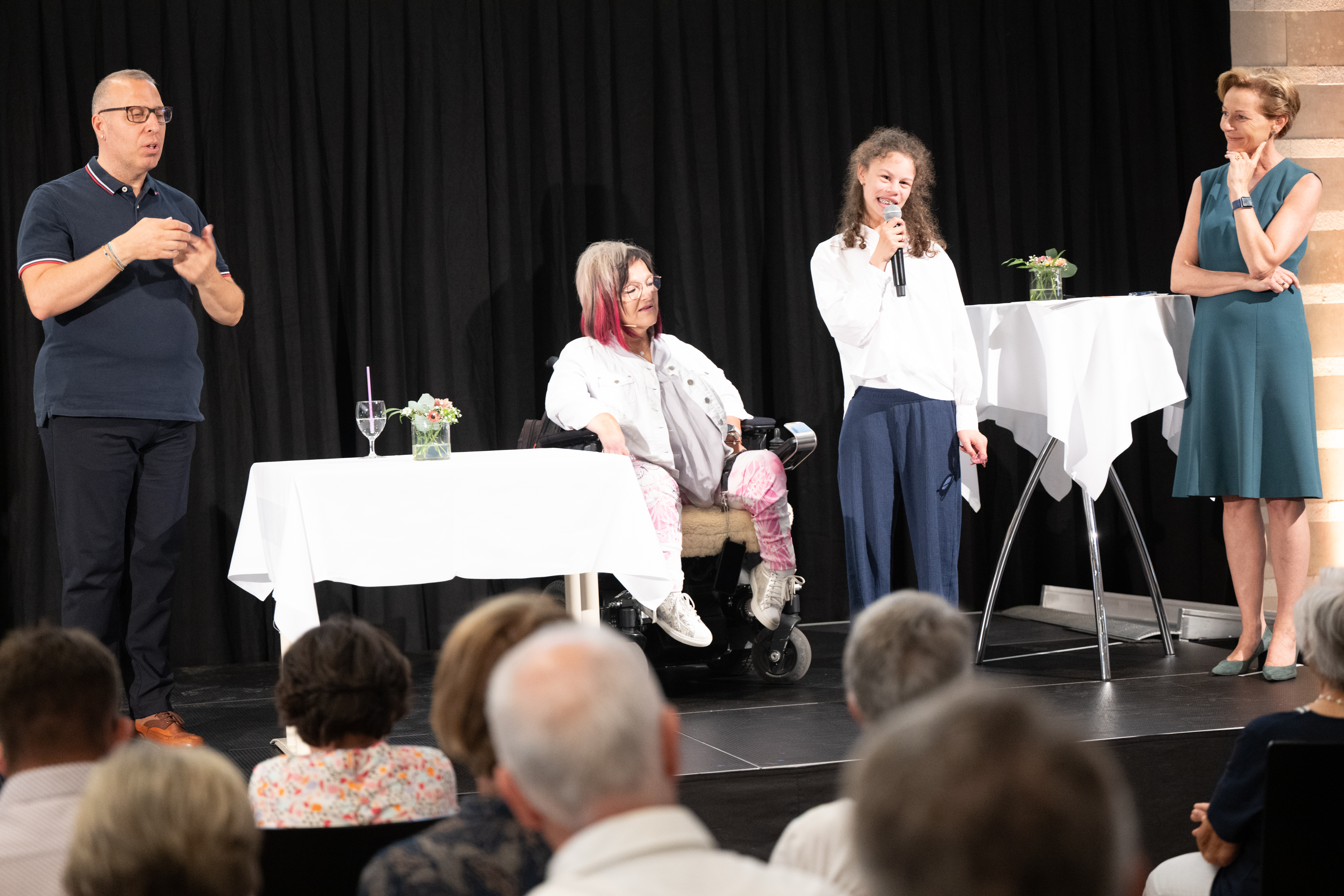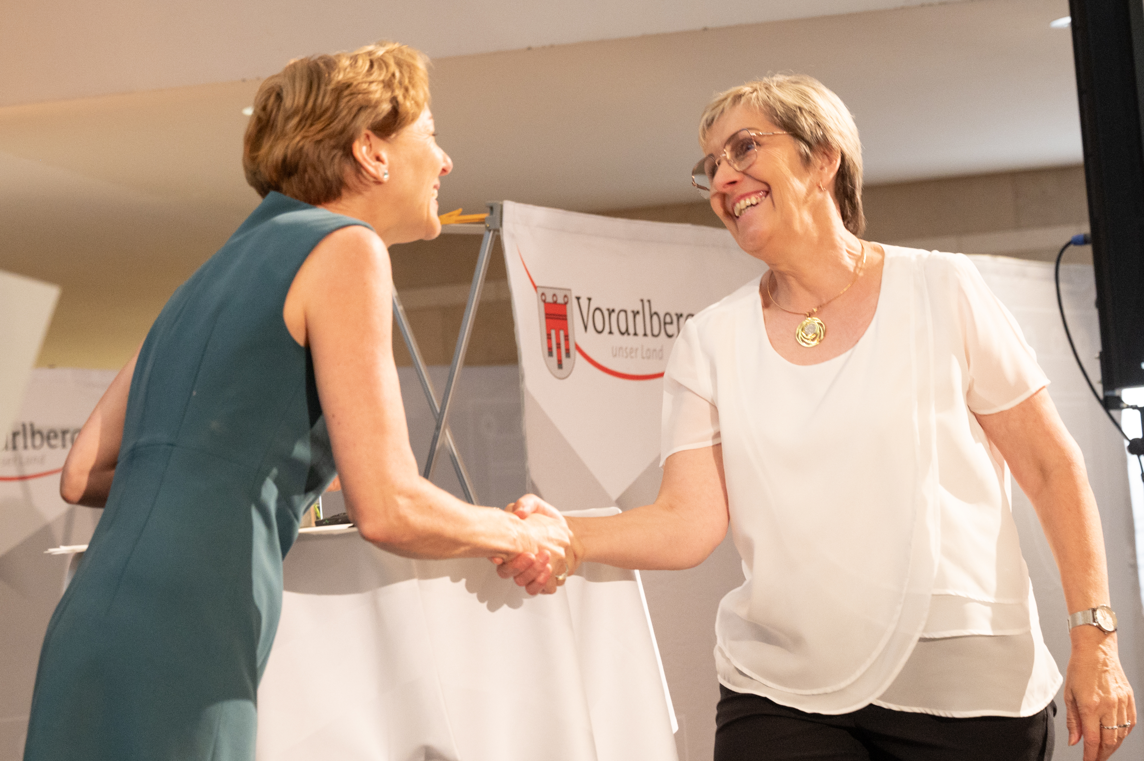 Bregenz (VLK) – Beim heutigen (Freitag, 12. Juli) Sommerfest der Inklusion im Landhaus wurde erstmals „AlltagsheldInnen“, die sich tagtäglich mit kleinen und großen Taten für Inklusion einsetzen, eine Bühne geboten. „Bei der Initiative ‚Mit uns, nicht für uns‘ geht es uns darum, Menschen, die im Alltag mehr tun als sie müssten, vor den Vorhang zu holen und ihnen ein gebührendes Dankeschön auszusprechen. Gleichzeitig stärken wir damit das selbstverständliche Netzwerk der Gleichgesinnten im Sinne der Inklusion. Denn Inklusion ist eine gemeinsame Haltung, die jeder von uns im Alltag leben kann“, sagte Landesrätin Martina Rüscher.