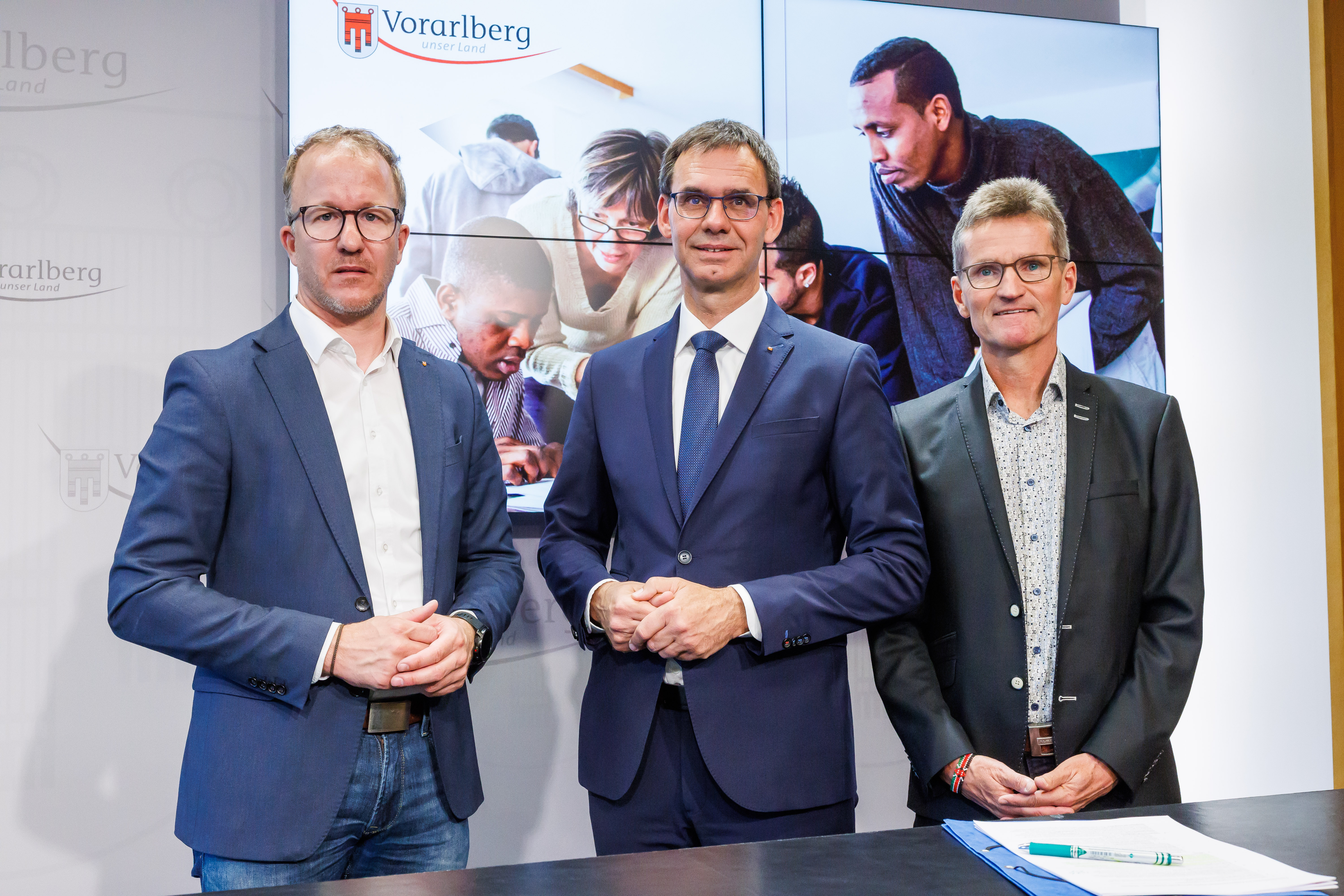 Bregenz (VLK) – Vorarlberg geht in Sachen Integration erneut einen Schritt voraus. In der Grundversorgung befindliche Asylwerbende im Lande sind ab 1. Juni aufgefordert, den „Vorarlberg Kodex“ zu unterzeichnen. Die Vereinbarung beruht auf drei Säulen: Spracherwerb, Werteakzeptanz und Bereitschaft zur gemeinnützigen Arbeit. „Wir fordern und fördern Integration von der ersten Minute an“, sagte Landeshauptmann Markus Wallner bei der Präsentation des „Vorarlberg Kodex“ gemeinsam mit Landesrat Christian Gantner und dem Flüchtlingswesen-Bereichsleiter der Caritas, Bernd Klisch heute, Freitag, im Landhaus.