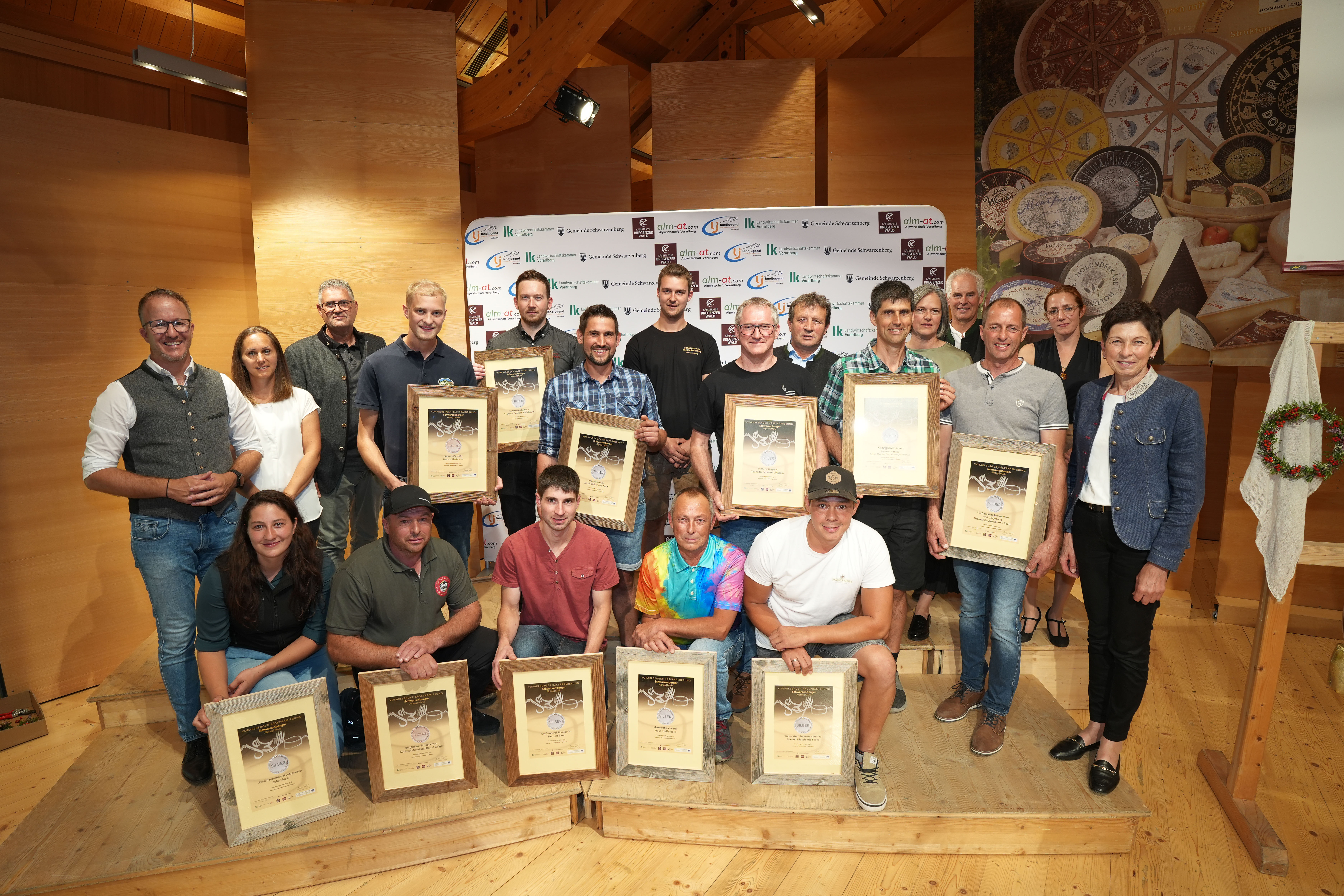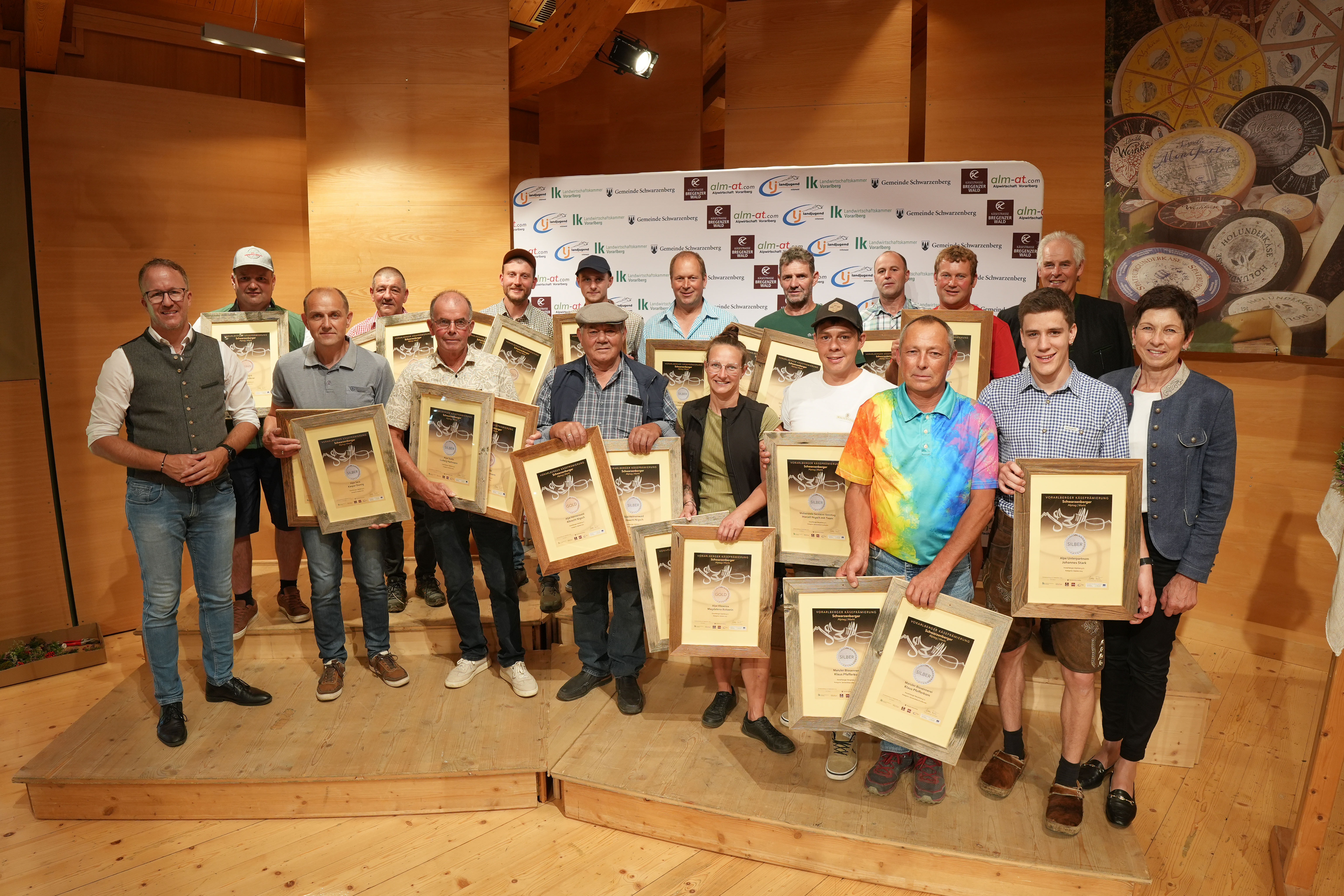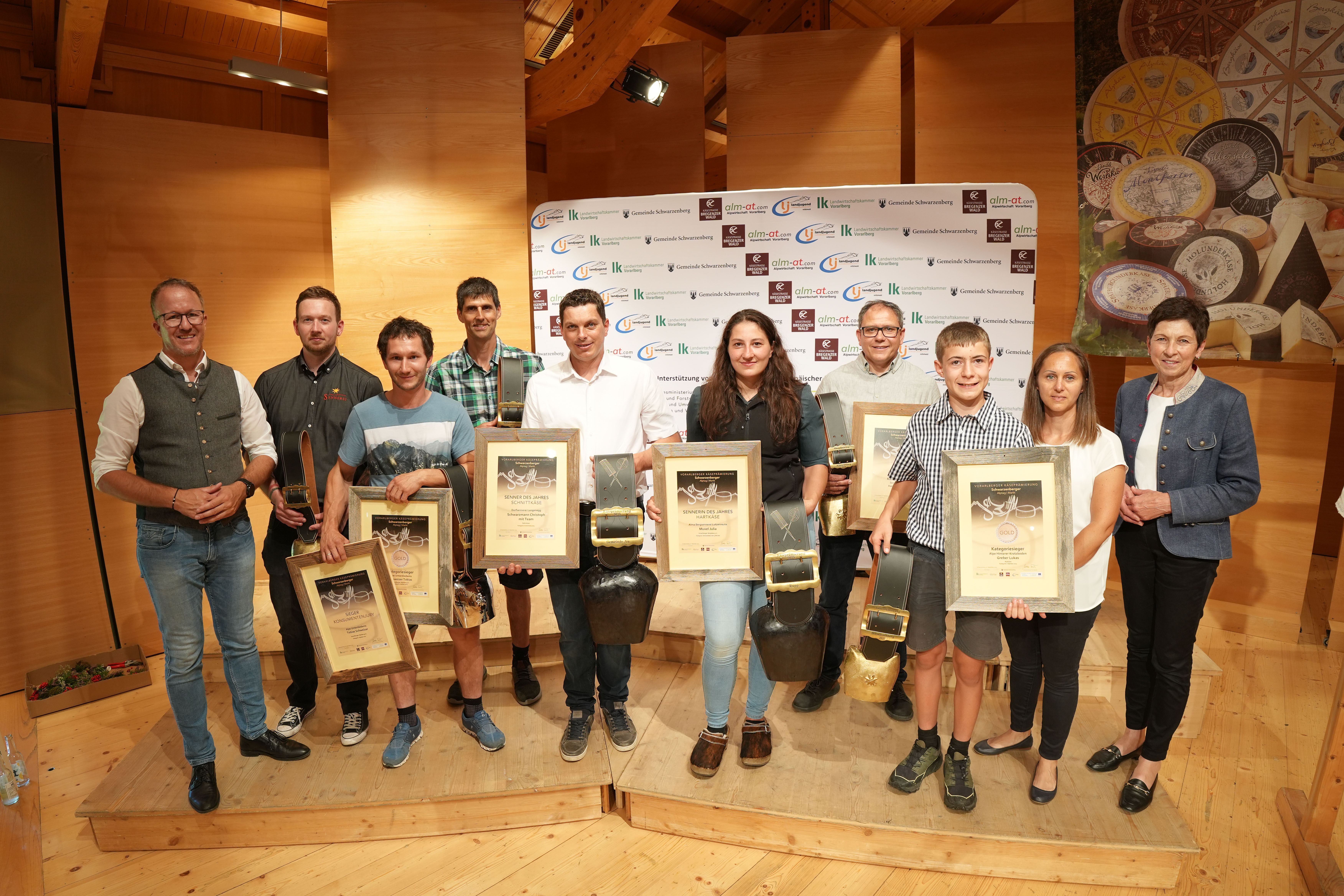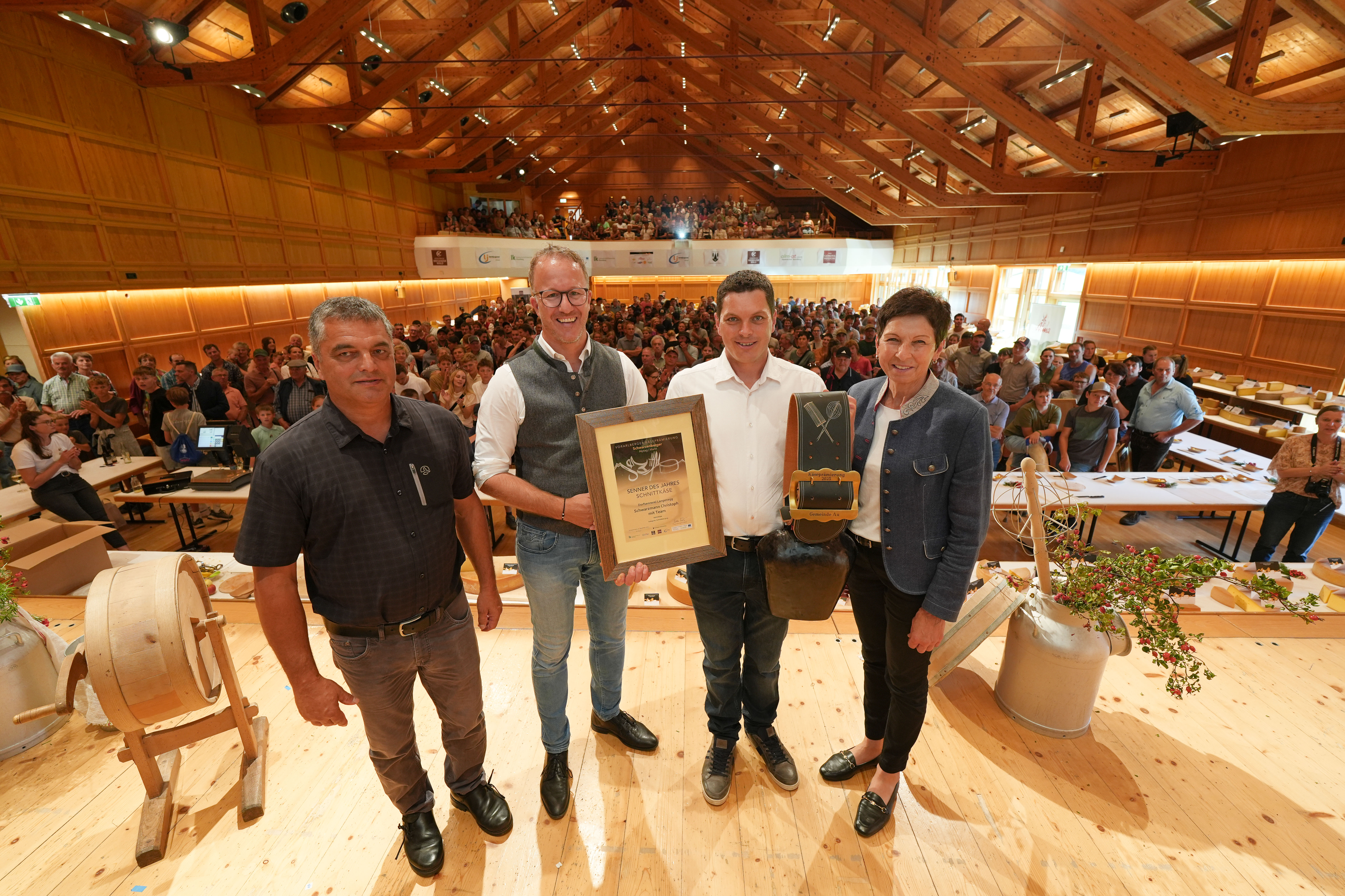 Schwarzenberg (VLK) – Bereits zum 32. Mal fand heute (Samstag, 20. September) beim Schwarzenberger Alp- und Markttag die Vorarlberger Käseprämierung statt. Rund 140 Produkte von Vorarlberger Alpen und Käsereien wurden von einer internationalen Fachjury bewertet. Landesrat Christian Gantner gratulierte den Preisträgern: „Vorarlberger Käsespezialitäten sind das Ergebnis einer langen bäuerlichen Tradition und des bäuerlichen Fleißes in unserem Land. Die Käseprämierung ist nicht nur das große Schaufenster für höchste Qualität aus Vorarlberg, sondern Jahr für Jahr auch ein besonderer Höhepunkt im bäuerlichen Kalender.“