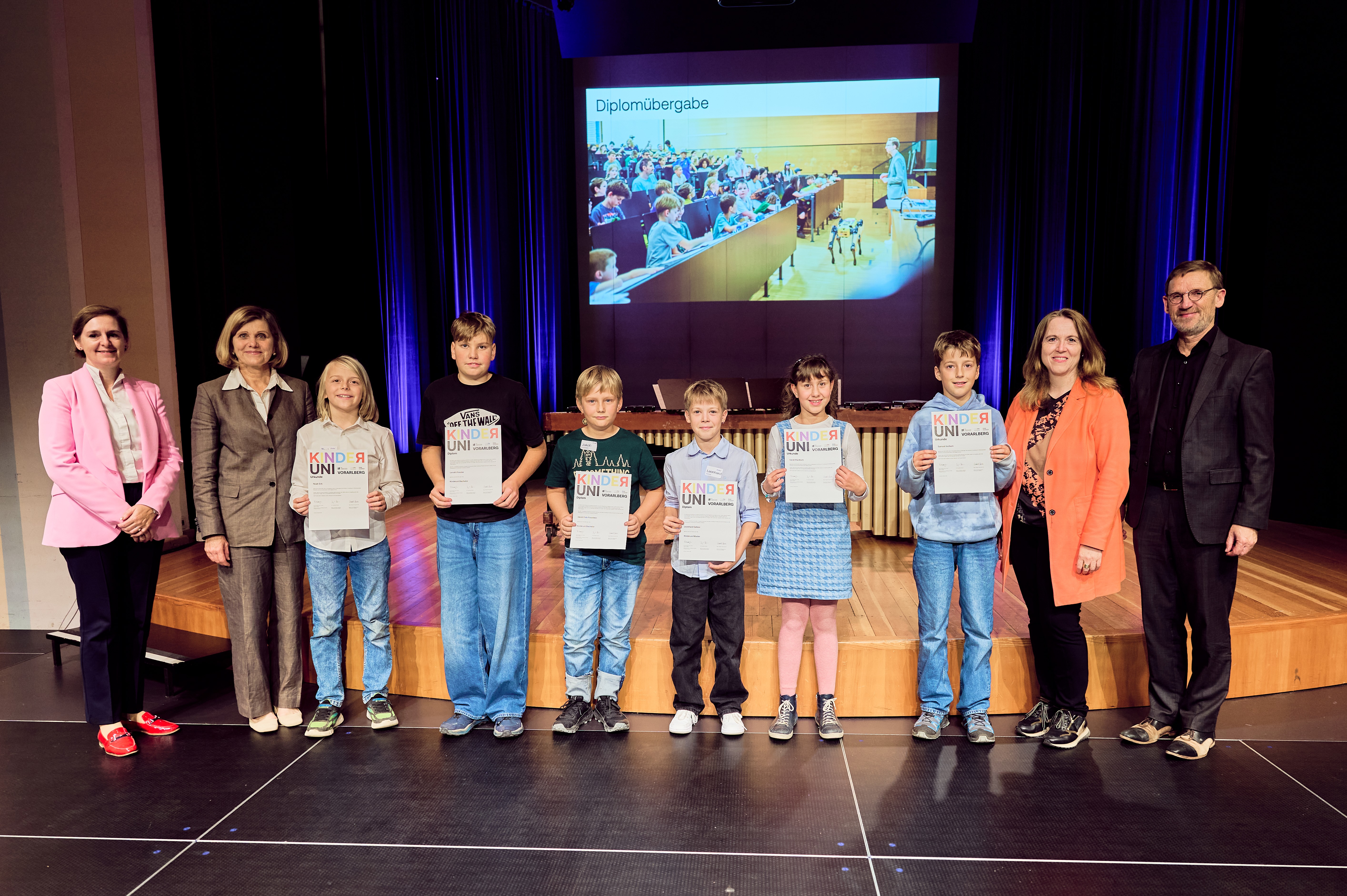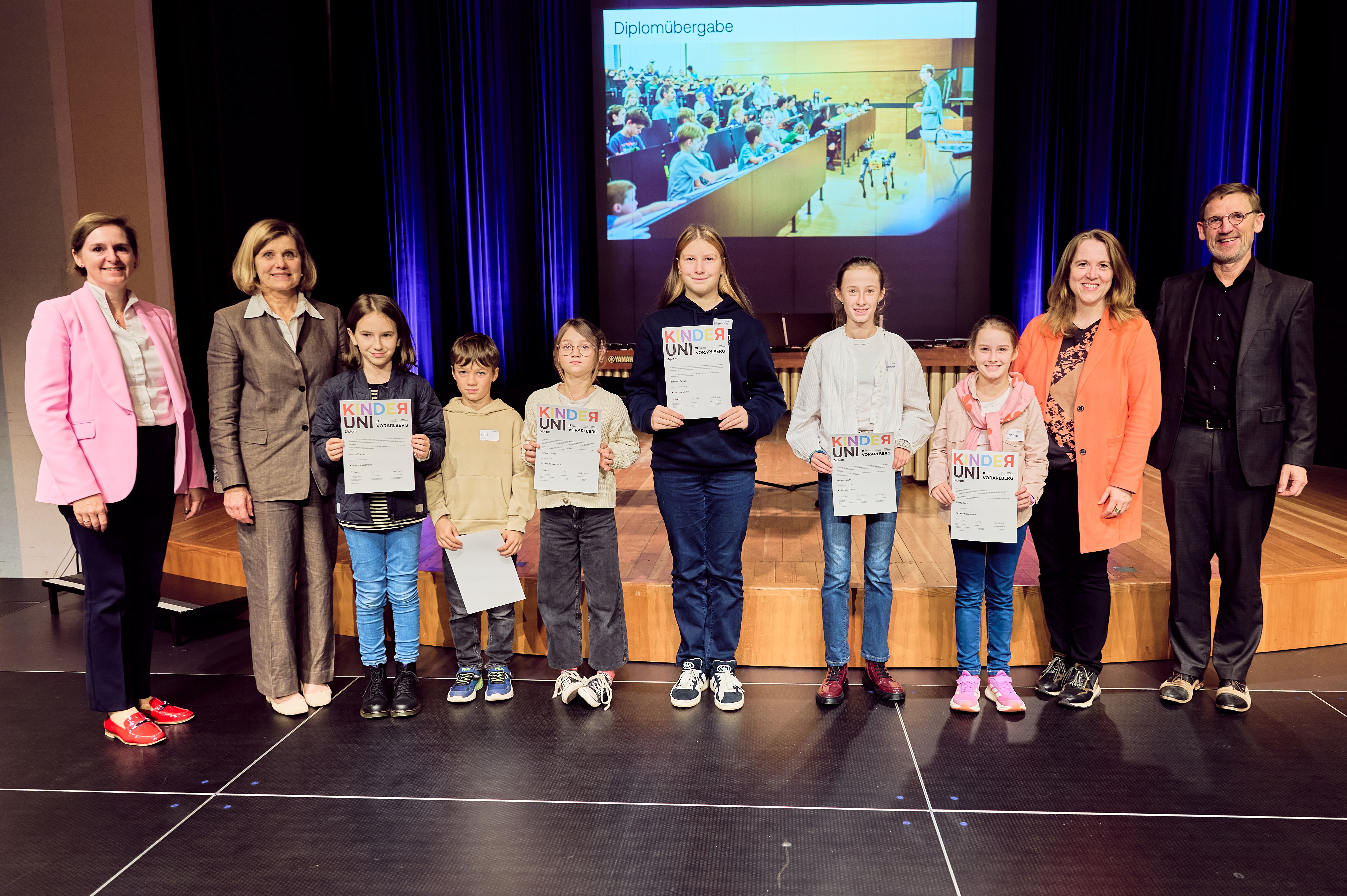 Im vergangenen Studienjahr 2024/25 gab es an der KINDERUNI Vorarlberg zwölf spannende Vorlesungen mit insgesamt 816 Anmeldungen von interessierten Kindern. In inspirierenden und vielfältigen Vorträgen ging es unter anderem darum, wie Maschinen in der digitalen Fabrik „sprechen“, Astronomie zum Anfassen zu erleben oder herauszufinden, wie Schnee klingen kann. Um sich für das Abschlussdiplom zu qualifizieren, musste man an mindestens drei Vorlesungen teilnehmen. „Der Forschergeist, die Wissbegier, die Begeisterungsfähigkeit und das Selbstbewusstsein in den Augen unserer jungen Talente geben uns Zuversicht in die Zukunftschancen dieser Region. Unser Auftrag ist es, die Lernfreude, den Forschergeist und die Faszination für die Kunst und Wissenschaft dauerhaft zu entfachen“, sagte Stella-Rektor Jörg Maria Ortwein anlässlich der Übergabe.