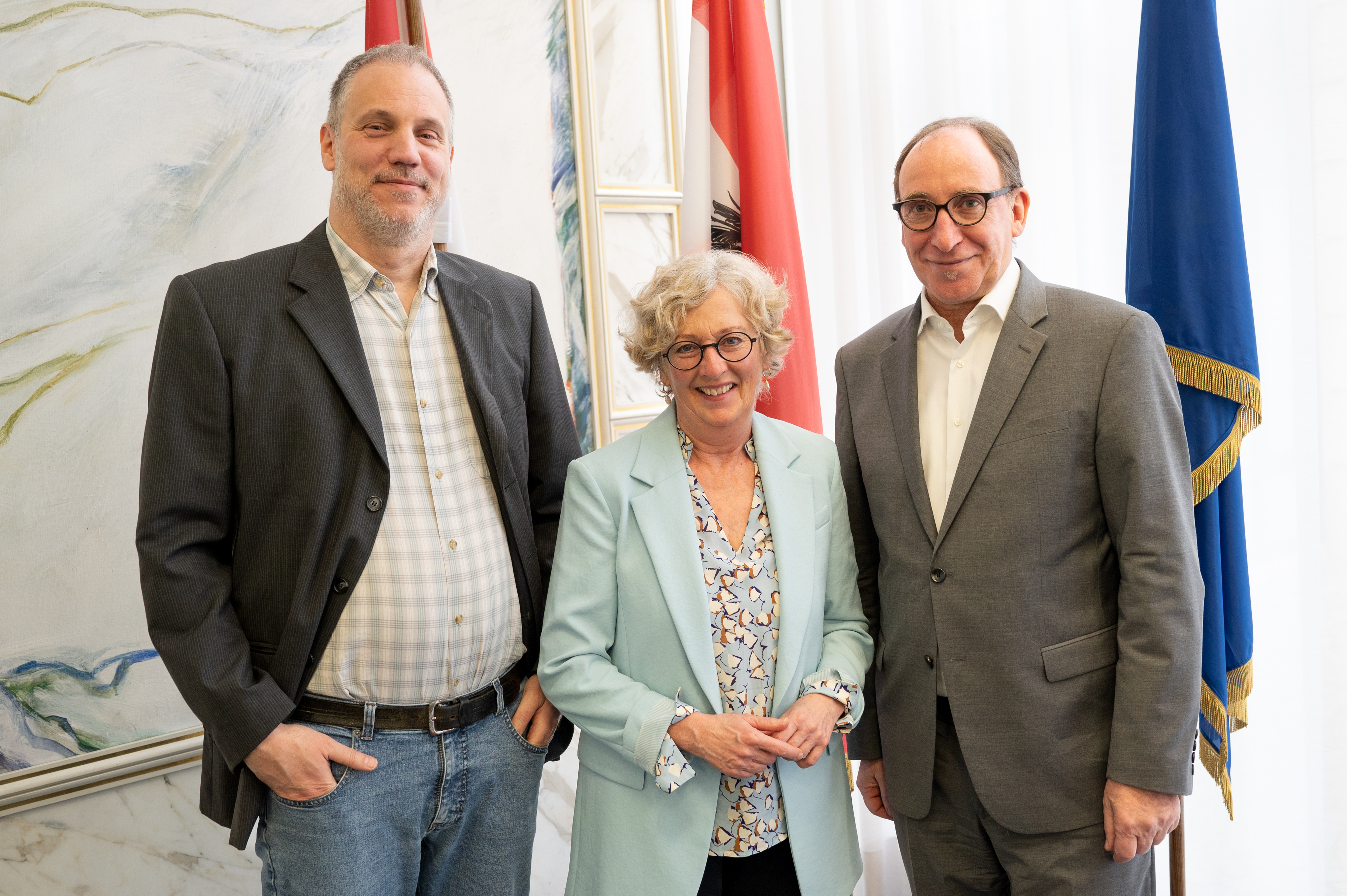 Michael Fuchs, wissenschaftlicher Mitarbeiter des European Centre, LR Wiesflecker und BM Rauch