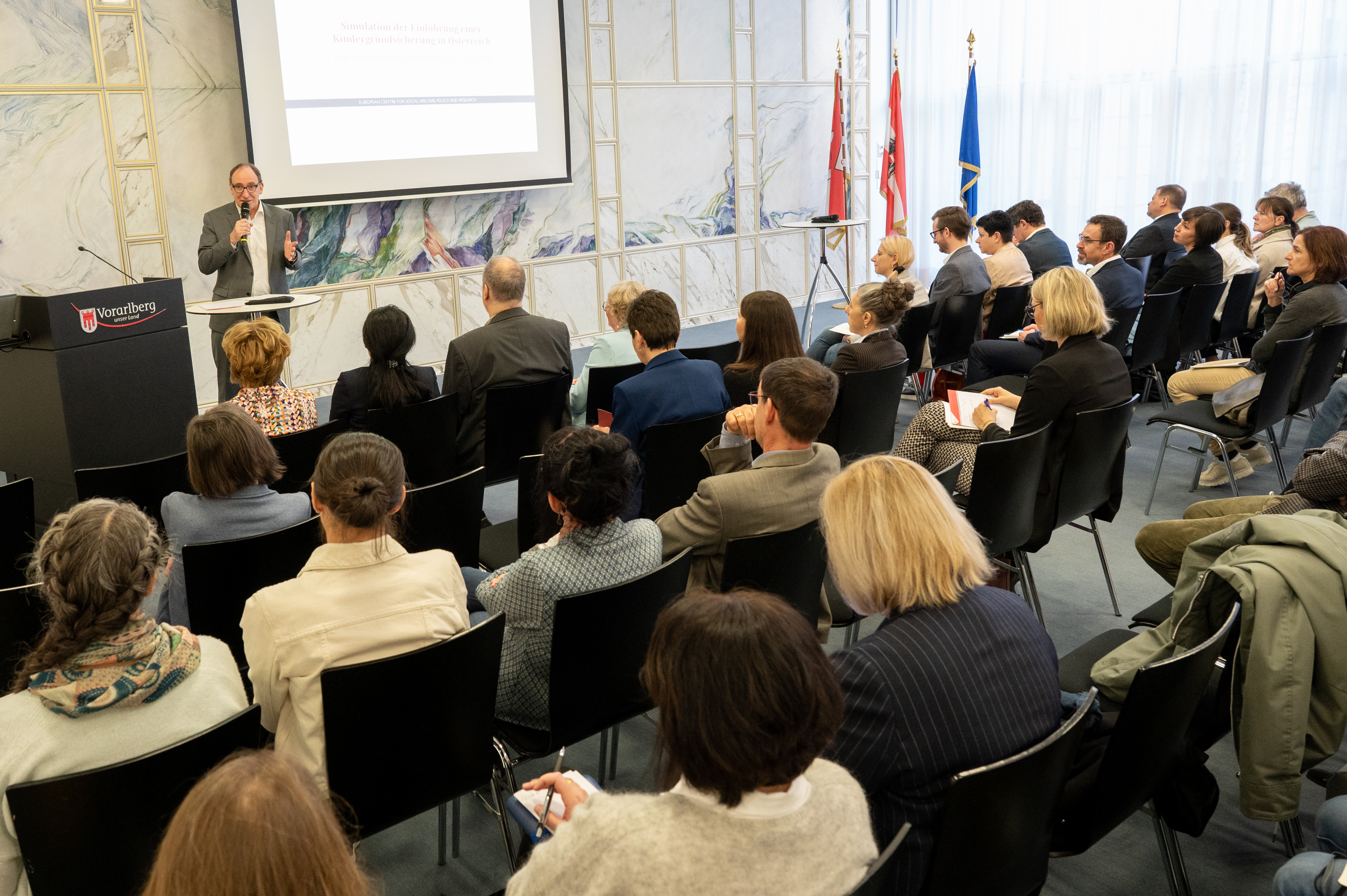 Bregenz (VLK) – Wie kann Kinderarmut gelindert und eine Kindergrundsicherung umgesetzt werden? Um dieses Thema zu diskutieren, trafen sich auf Einladung von Landesrätin Katharina Wiesflecker heute (Freitag, 16. Februar) im Montfortsaal des Landhauses politisch Zuständige und Fachleute, darunter Sozialminister Johannes Rauch und Landesrätin Martina Rüscher sowie Klubobleute und Abgeordnete des Vorarlberger Landtages, Mitarbeitende der Landesverwaltung und SystempartnerInnen. Michael Fuchs, wissenschaftlicher Mitarbeiter des European Centre of welfare policy and research, stellte eine Simulationsstudie zum Thema vor. Vertiefende Arbeitsgruppen sollen bis zum Frühsommer konkrete Lösungsvorschläge und Ergebnisse vorlegen. „Kinderarmut darf es in Österreich und in Vorarlberg nicht geben. In den kommenden Monaten sollen alle Angebote und Maßnahmen, die es schon gibt, zusammengetragen und dahingehend analysiert werden, wo Maßnahmen geschärft werden müssen“, sagte Landesrätin Wiesflecker.