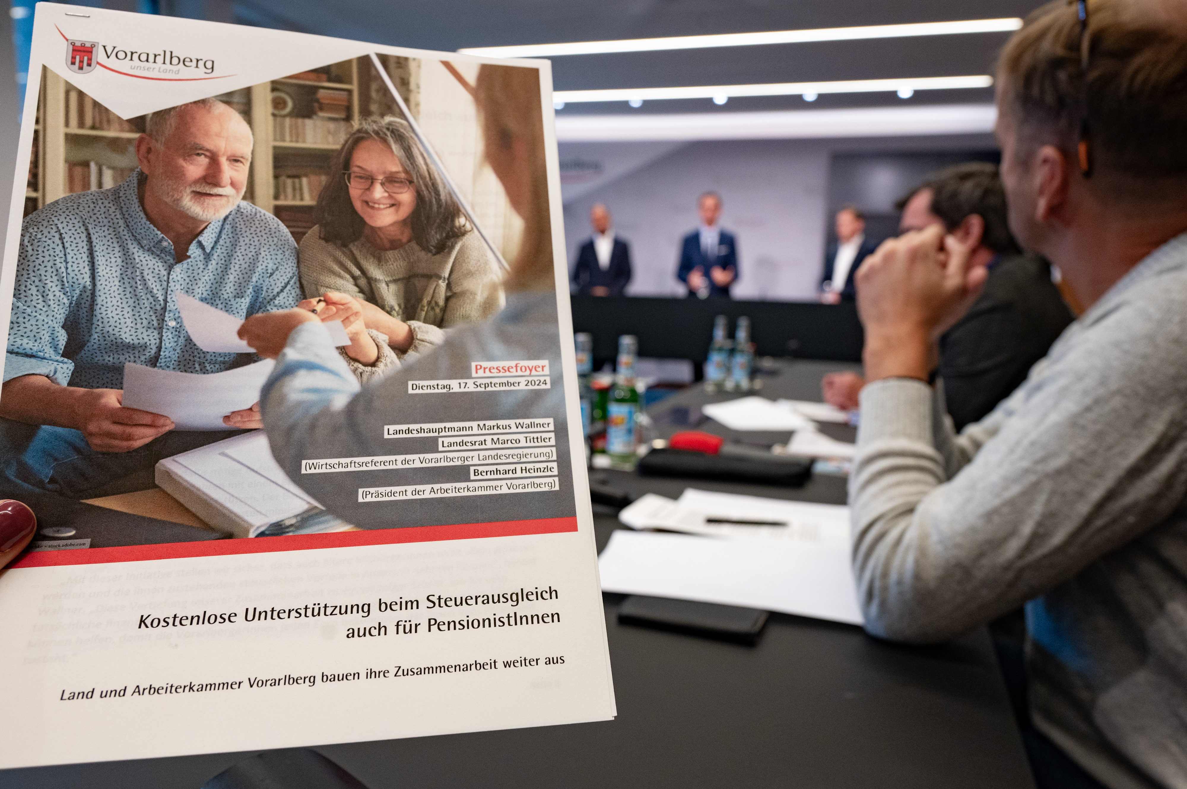 Bregenz (VLK) – Künftig können auch PensionistInnen, die während ihres aktiven Berufslebens Mitglied der AK-Vorarlberg waren, deren kostenlosen Steuerservice in Anspruch nehmen, um vom Finanzamt Geld zurückzuholen. Landeshauptmann Markus Wallner, Wirtschaftslandesrat Marco Tittler und AK-Präsident Bernhard Heinzle waren sich im heutigen (Dienstag) Pressefoyer einig: Gerade in Zeiten stark steigender Lebenshaltungskosten ist es wichtig, möglichst allen jenen Menschen, die die Teuerung besonders spüren, dabei zu unterstützen, ihre Möglichkeiten einer finanziellen Entlastung zu erkennen und tatsächlich zu nützen.