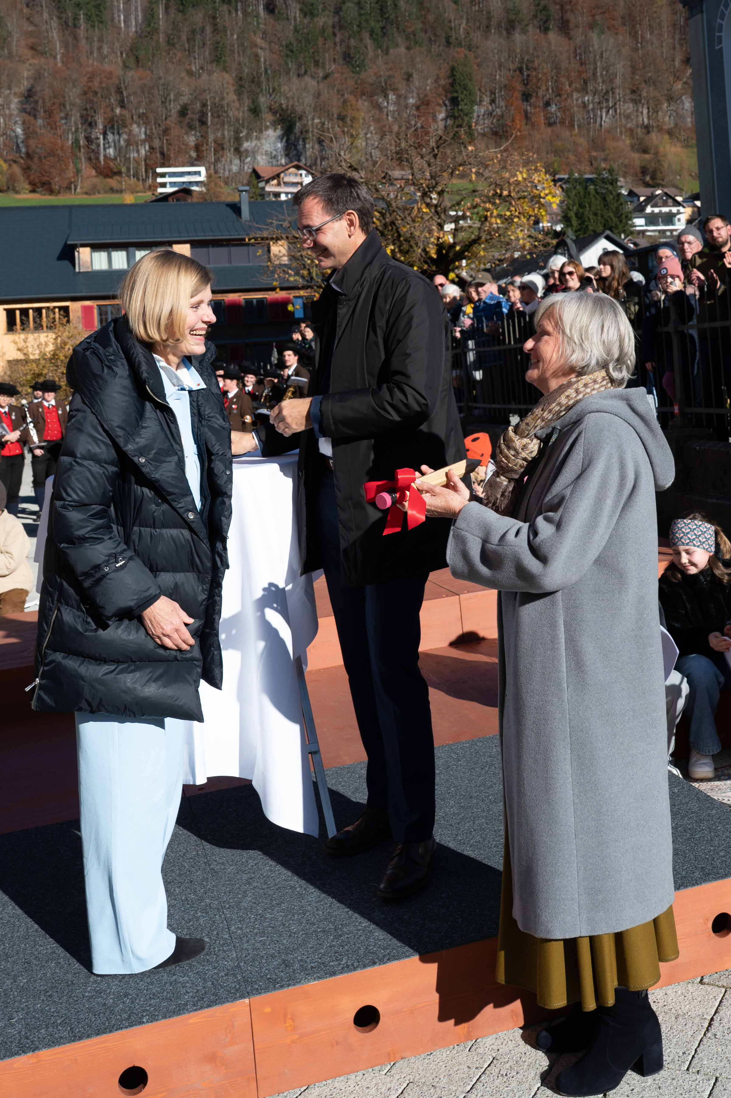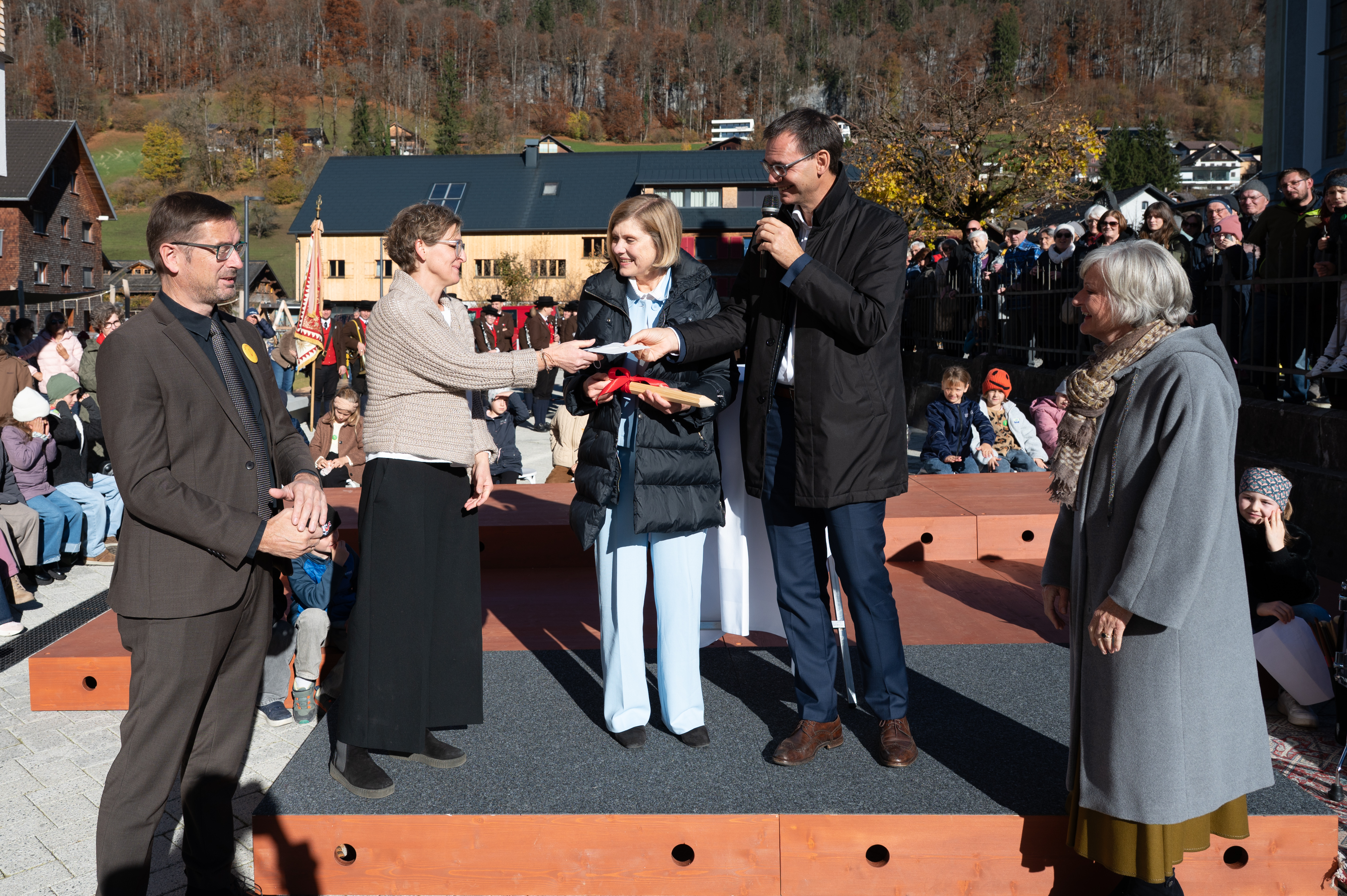 Bezau (VLK) – Mit einem Festakt und zahlreichen Gästen wurde heute (8. November) das neue Lernhaus Bezau offiziell eröffnet. Landeshauptmann Markus Wallner und Bildungslandesrätin Barbara Schöbi-Fink gratulierten der Marktgemeinde Bezau zu diesem zukunftsweisenden Projekt, das Kindergarten und Volksschule unter einem Dach vereint. „Mit dem Lernhaus hat Bezau ein neues Herzstück erhalten – einen Ort, an dem Kinder aufwachsen, lernen und sich entfalten dürfen“, freute sich Wallner bei der Eröffnung.