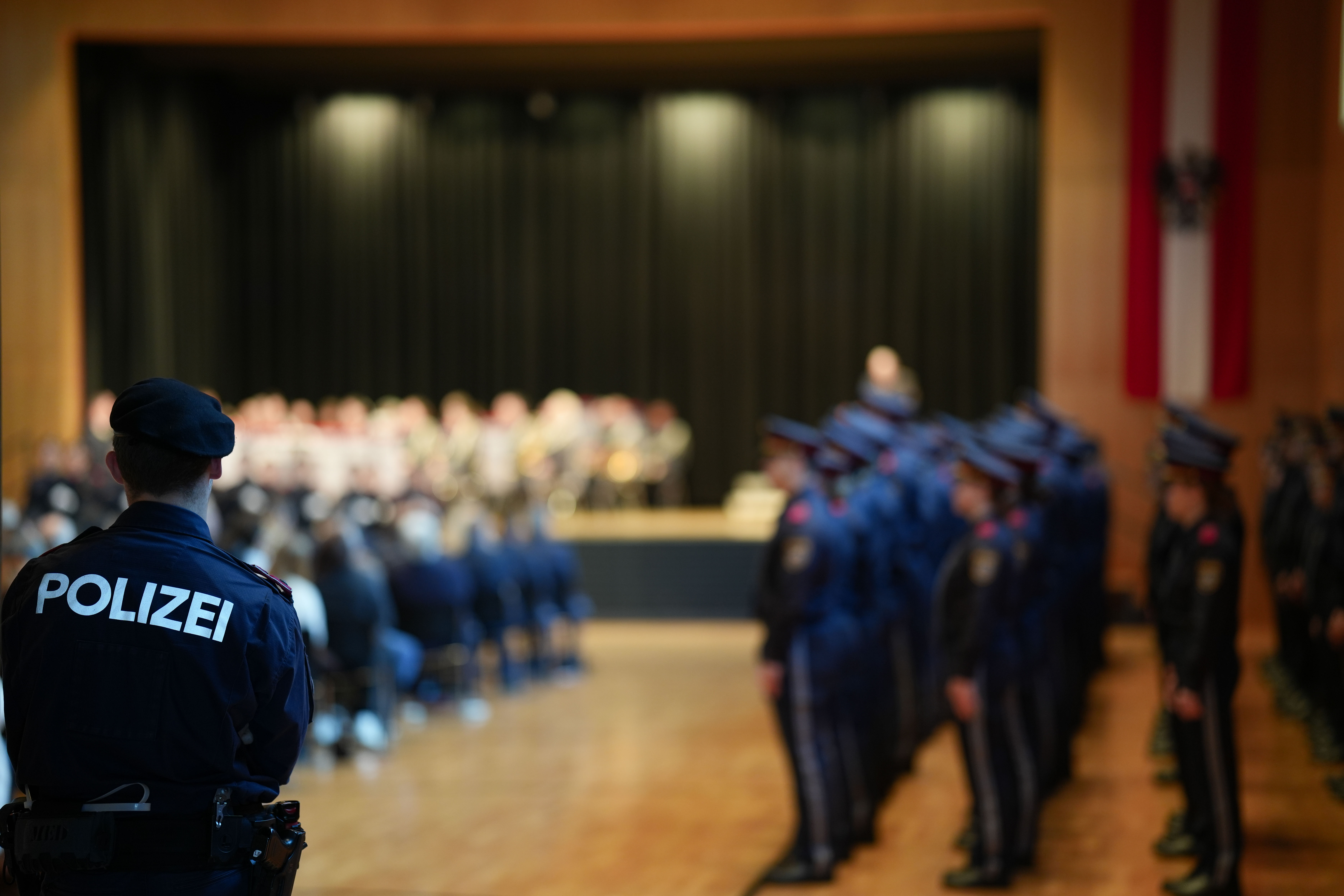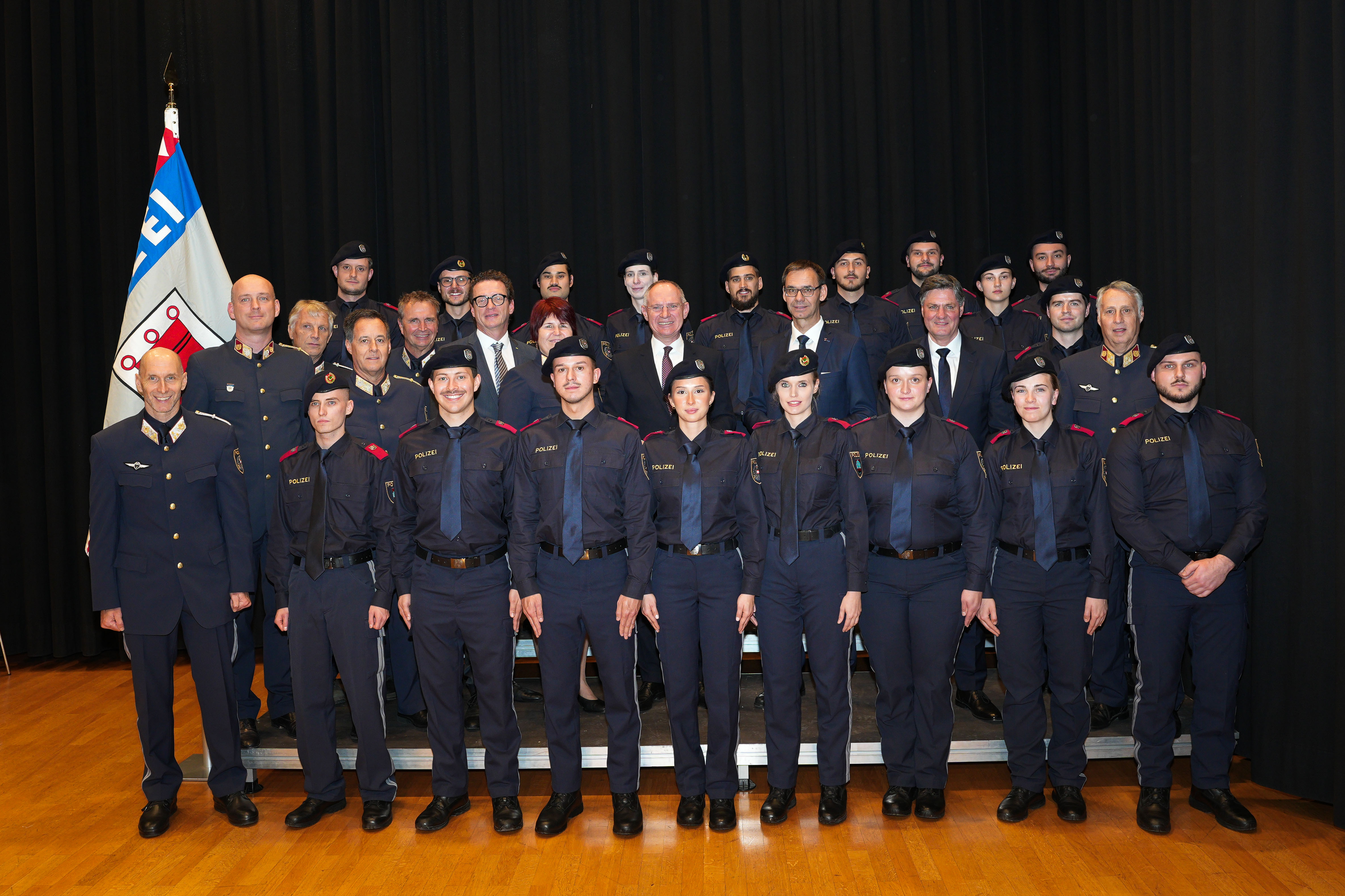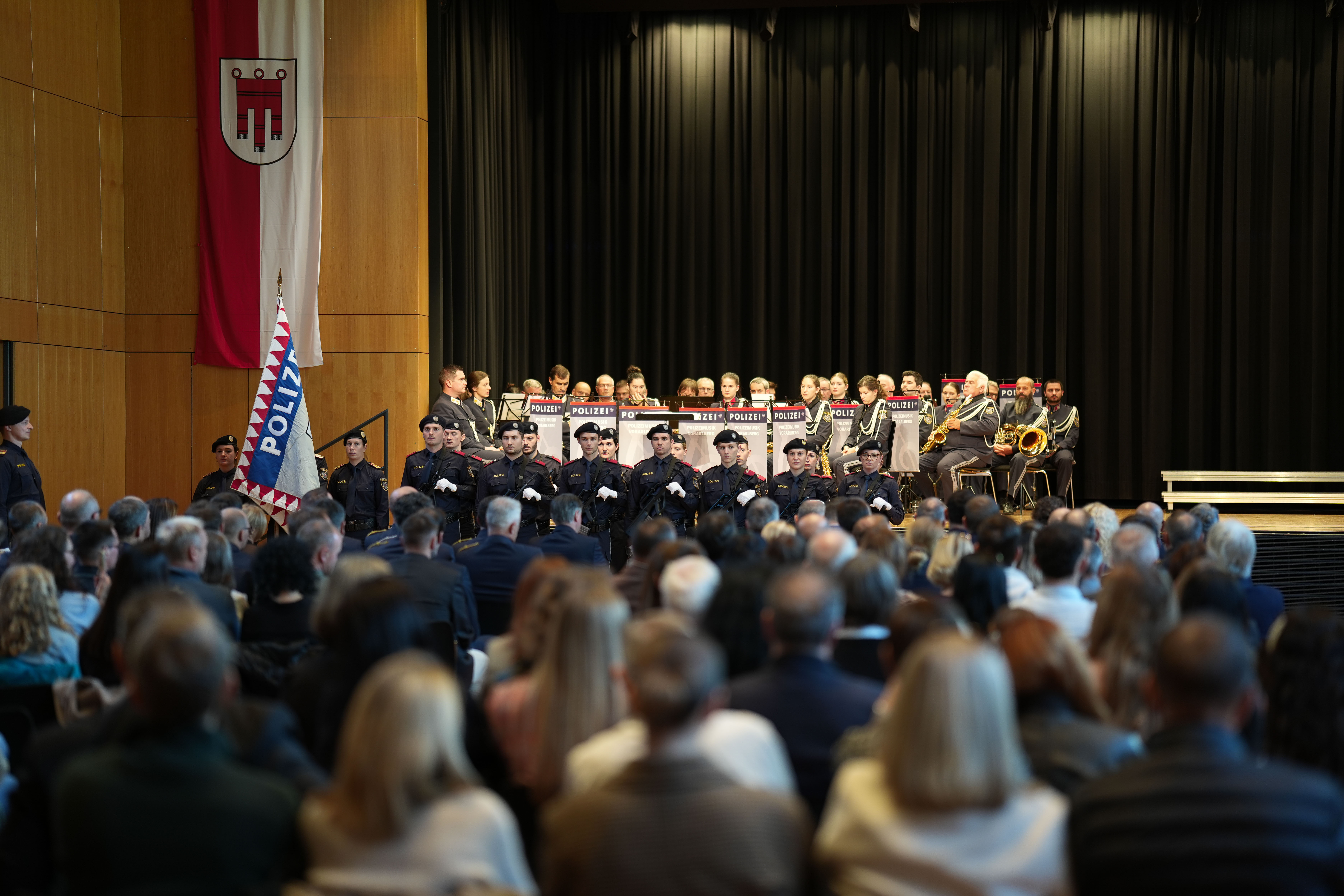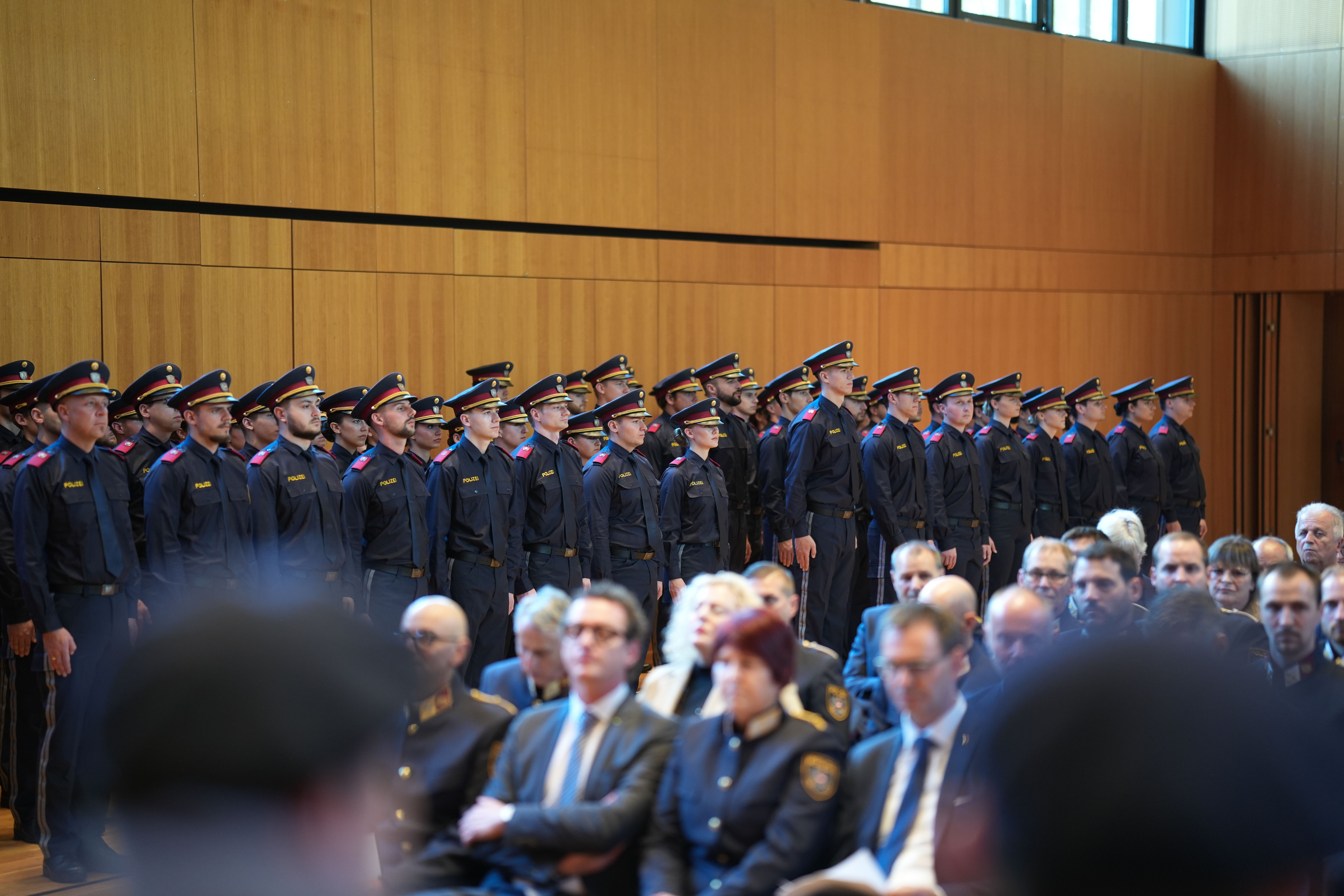 26 Absolventinnen und Absolventen der Polizeigrundausbildung sowie vier Bedienstete der Stadtpolizei Dornbirn und ein Bediensteter der Stadtpolizei Feldkirch erhielten im feierlichen Rahmen ihre Dekrete. Im Rahmen der Feierlichkeiten legten außerdem jene rund 60 Bediensteten, die ihre Grundausbildung im September dieses Jahres begonnen haben, ihr Gelöbnis ab. Für die musikalische Umrahmung des Festakts sorgte die Polizeimusik Vorarlberg.